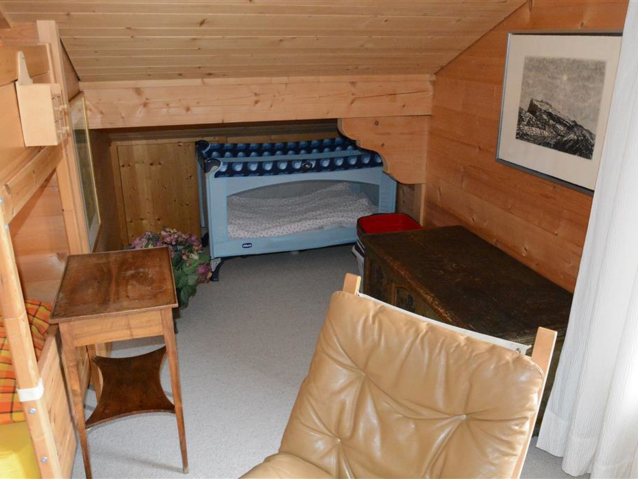3-Zimmerwohnung auf 2 Stockwerken, Südwestlage, komfortabel eingerichtet, 2 Balkone mit Balkonmöbeln, schöne Sicht auf die Berge und die Ortschaft. 2. Stock: grosses Wohn-/Esszimmer mit Schwedenofen und Sat-TV (Flachbildschirm), Video, Radio, CD und DVD. Ausgang zum Balkon. Küche mit Esstisch (u.a. ausgestattet mit Kapsel-Kaffeemaschine (Delizio) sowie Fondue- und Raclette-Set). Dusche/WC. Obergeschoss (3. Stock): 1 Zimmer mit 2 Betten (2x90x200cm). 1 Zimmer mit 2 Etagenbetten (je 90x200cm). Ausgang zum Balkon. Bad/WC. WiFi. Kinderbett (60x120cm) inkl. Bettwäsche vorhanden.