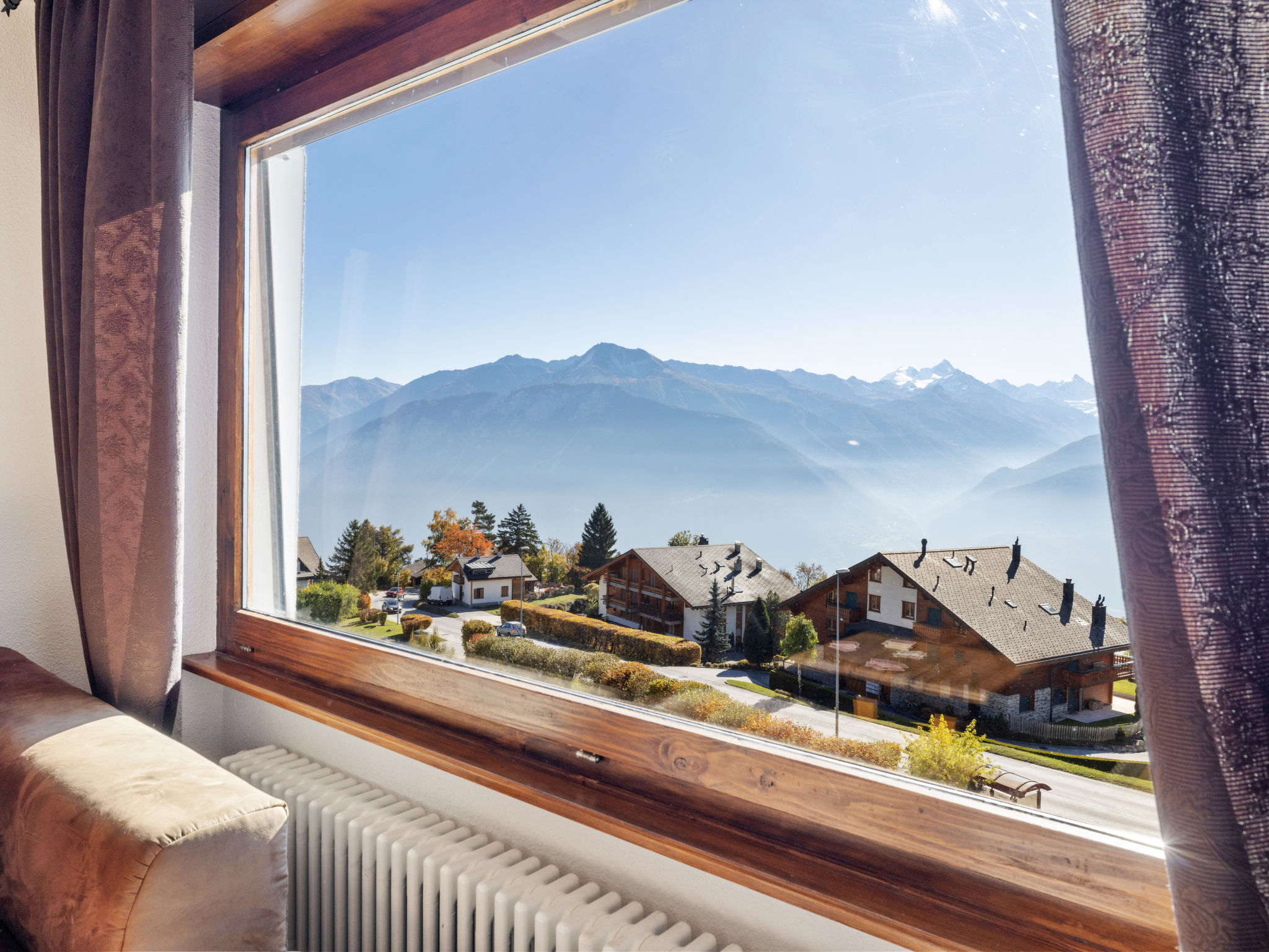 3-Zimmer-Wohnung 95 m2 im 5. Stock. Teilweise renoviert im Jahre 2020, schön eingerichtet: Wohn-/Esszimmer mit offenem Kamin und Kabel-TV. Ausgang zum Balkon, Richtung Süden. 1 Zimmer mit 1 franz. Bett (180 cm, Länge 200 cm), Bad/WC. Ausgang zum Balkon, Richtung Südwesten. 1 Zimmer mit 1 franz. Bett (140 cm, Länge 200 cm). Offene Küche (3 Kochplatten, Backofen, Geschirrspüler, Toaster, Wasserkocher, Mikrowelle, elektrische Kaffeemaschine, Kapseln für die Kaffeemaschine (Nespresso) extra, Racletteofen, Fondue Set (Käse)). Dusche/WC. Balkonmöbel. Sehr schöne Sicht auf die Berge. Zur Verfügung: Bügeleisen, Haartrockner. Internet (Wireless LAN, gratis). Garage Nr. 10/box, Höhe 190 cm, Breite 235 cm. Maximal 1 kleines Haustier/Hund erlaubt.