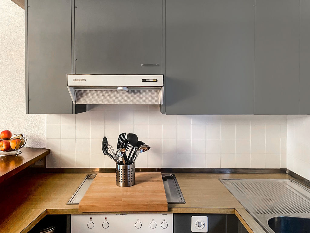 3-Zimmer-Wohnung 95 m2 im 5. Stock. Teilweise renoviert im Jahre 2020, schön eingerichtet: Wohn-/Esszimmer mit offenem Kamin und Kabel-TV. Ausgang zum Balkon, Richtung Süden. 1 Zimmer mit 1 franz. Bett (180 cm, Länge 200 cm), Bad/WC. Ausgang zum Balkon, Richtung Südwesten. 1 Zimmer mit 1 franz. Bett (140 cm, Länge 200 cm). Offene Küche (3 Kochplatten, Backofen, Geschirrspüler, Toaster, Wasserkocher, Mikrowelle, elektrische Kaffeemaschine, Kapseln für die Kaffeemaschine (Nespresso) extra, Racletteofen, Fondue Set (Käse)). Dusche/WC. Balkonmöbel. Sehr schöne Sicht auf die Berge. Zur Verfügung: Bügeleisen, Haartrockner. Internet (Wireless LAN, gratis). Garage Nr. 10/box, Höhe 190 cm, Breite 235 cm. Maximal 1 kleines Haustier/Hund erlaubt.