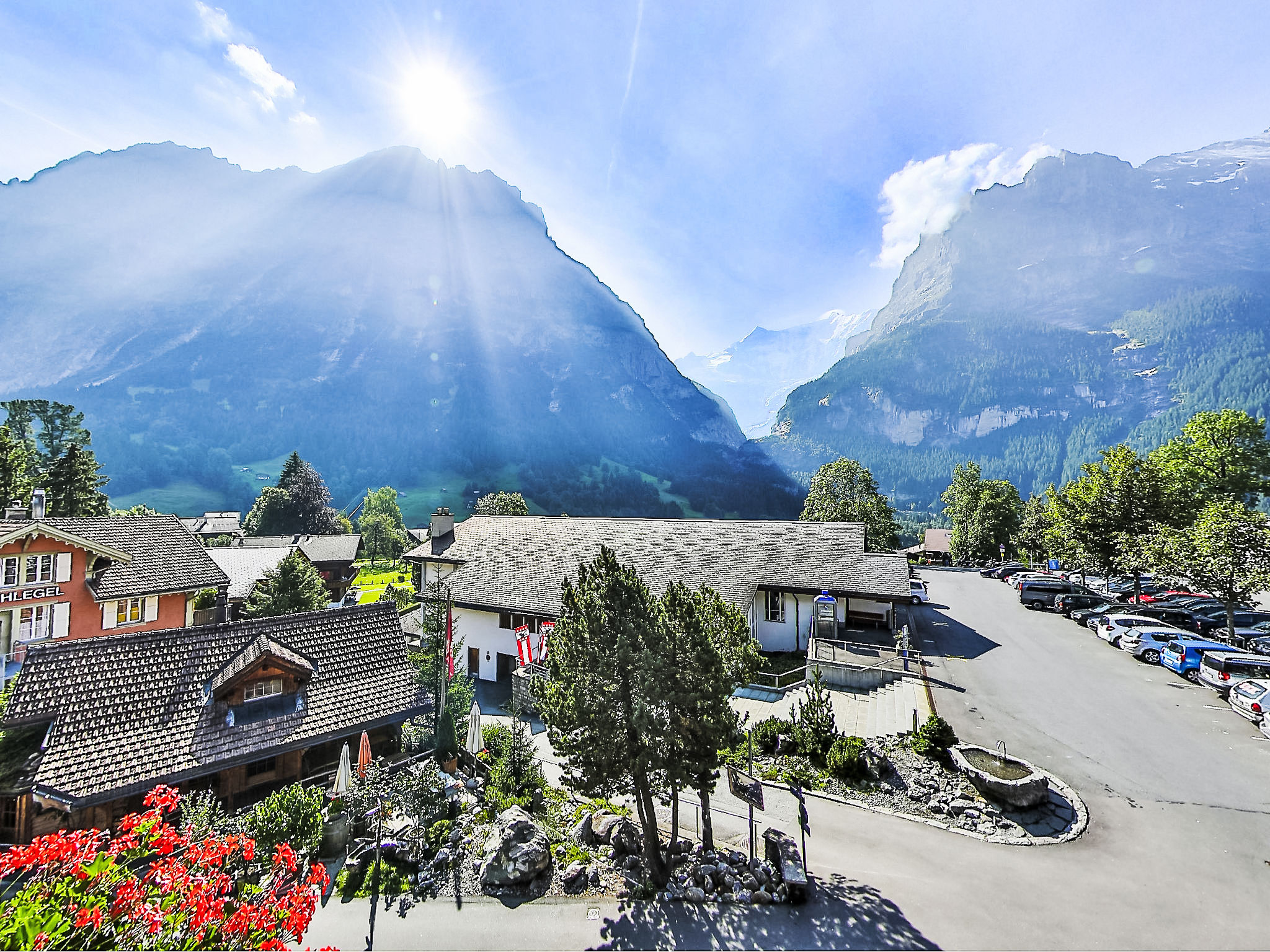 Residenz "Chalet Abendrot". Im Ortszentrum. Im Hause: Empfang, Aufenthaltsraum, Wireless LAN, Tischtennis, Billard, Fahrstuhl, Skiraum, Zentralheizung, Waschmaschine (extra), Wäschetrockner (extra). Wäschewechsel täglich (zusätzlich extra). Wohnungsreinigung (extra). Im Winter bitte Schneeketten mitbringen. Gemeinschaftsgarage (extra). Einkaufsgeschäft 400 m, Restaurant 10 m, Bushaltestelle "Firstbahn" 20 m, Bahnstation "Grindelwald Dorf" 800 m, Freibad 2.5 km, Hallenbad 600 m. Golfplatz (9 Loch) 2 km, Tennis 1 km, Minigolf 400 m, Sportzentrum 600 m, Bergbahn 800 m, Gondelbahn 180 m, Skibushaltestelle 20 m, Langlaufloipe 1 km, Kinderspielplatz 600 m. Bekannte Seen in der Umgebung sind gut erreichbar: Thuner-/Brienzersee 18 km. Bitte beachten: Gratis Skibus. Indisches Restaurant "Golden India" im Hause. Das im Chaletstil erbaute Appartementhaus bietet einen Jugendraum, ein Kinderspielzimmer, eine grosse Autoeinstellhalle (Parkplatz CHF 98.00/Woche, Reservierung bei Ankunft). Modern-rustikale, luxuriöse und gemütliche Wohnungen, die meisten mit grosszügigem Balkon oder Terrasse und wunderbarem Blick auf die Bergwelt. Bitte beachten: Beschränkte Anzahl Garagenplätze. Garagenhöhe und -breite: 12 Parklpätze 2.09x2.06 m, 15 Parkplätze 1.65x2.06 m. Max. Gewicht: 2000 kg/Auto.