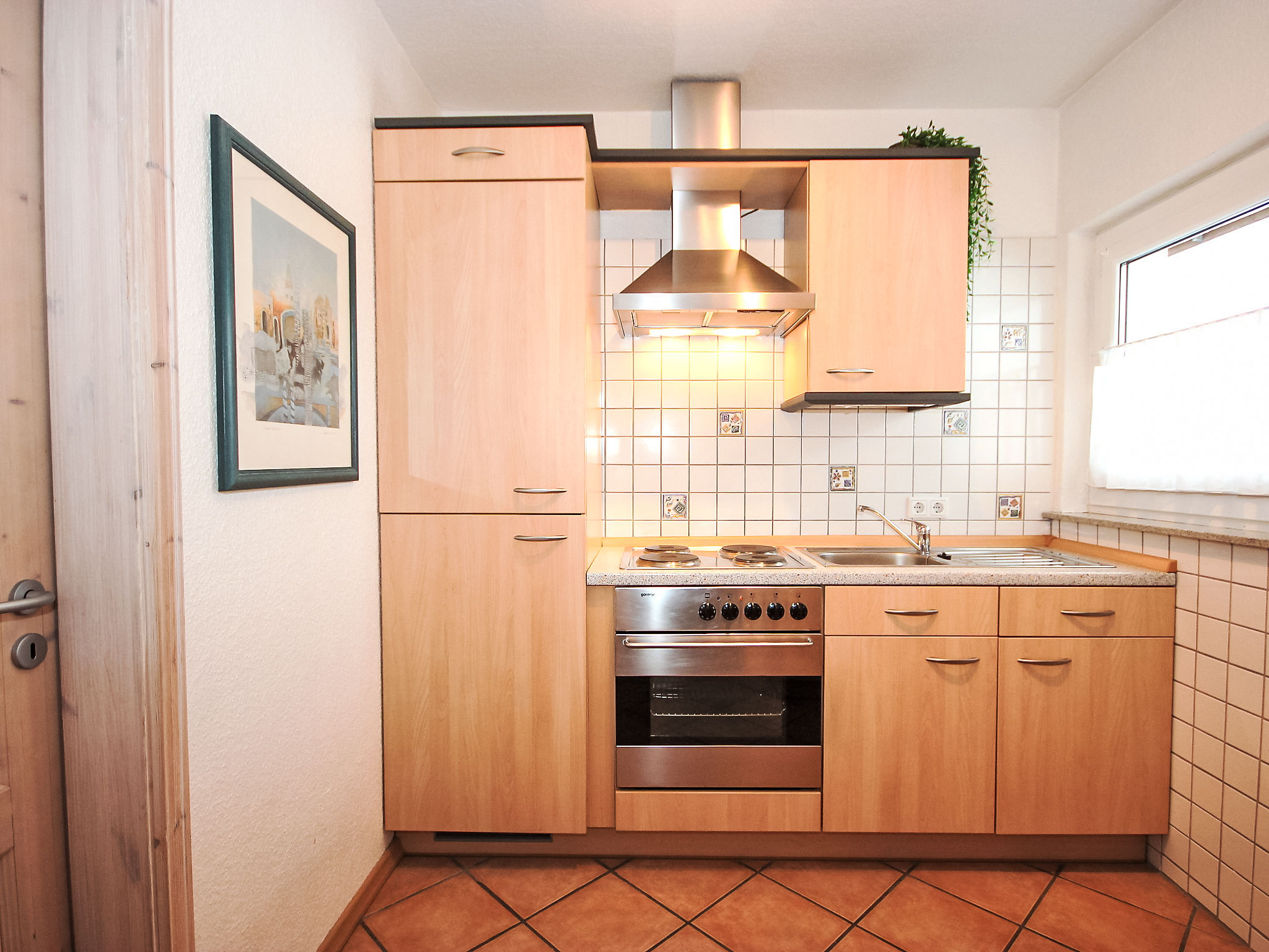 1-Zimmer-Wohnung 33 m2 im 1. Stock. Hell, renoviert, schön und geschmackvoll eingerichtet: Wohn-/Esszimmer mit 1 Diwanbett, 1 Doppelwandschrankbett und Kabel-TV (Flachbildschirm), Radio. Küche (4 Kochplatten, Backofen). Dusche/WC. Balkon. Zur Verfügung: Telefon. Bitte beachten: Nichtraucher-Unterkunft. Rauchmelder.
