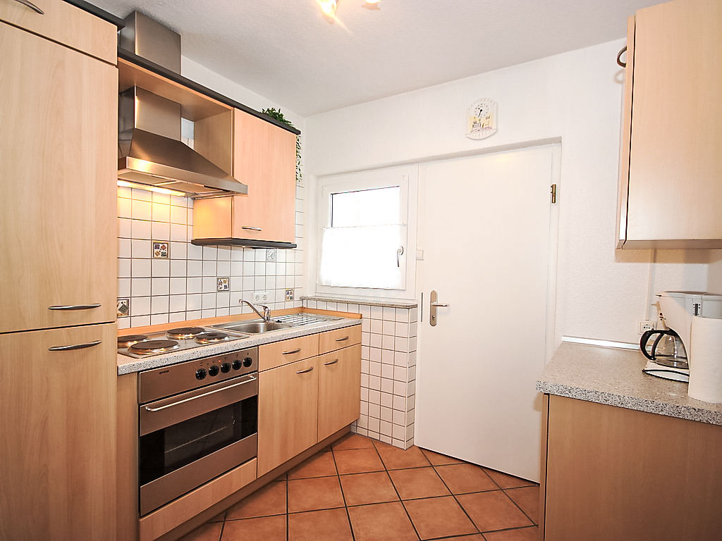 1-Zimmer-Wohnung 33 m2 im 1. Stock. Hell, renoviert, schön und geschmackvoll eingerichtet: Wohn-/Esszimmer mit 1 Diwanbett, 1 Doppelwandschrankbett und Kabel-TV (Flachbildschirm), Radio. Küche (4 Kochplatten, Backofen). Dusche/WC. Balkon. Zur Verfügung: Telefon. Bitte beachten: Nichtraucher-Unterkunft. Rauchmelder.