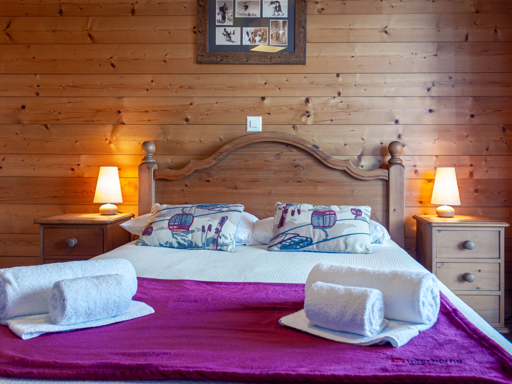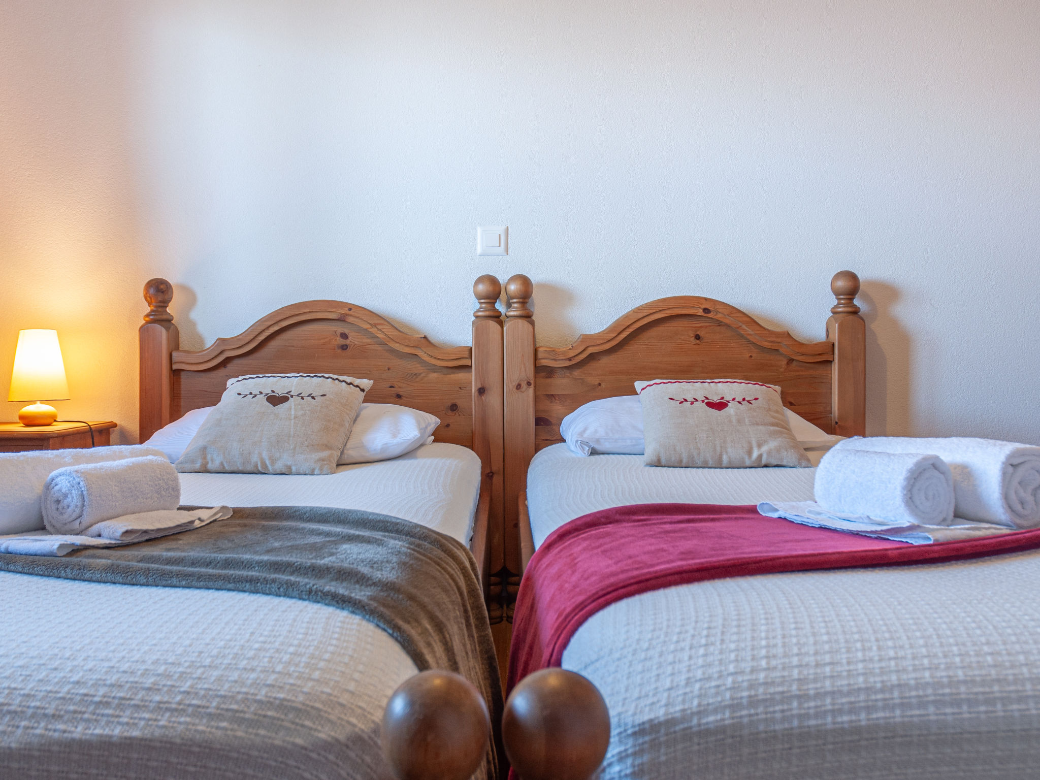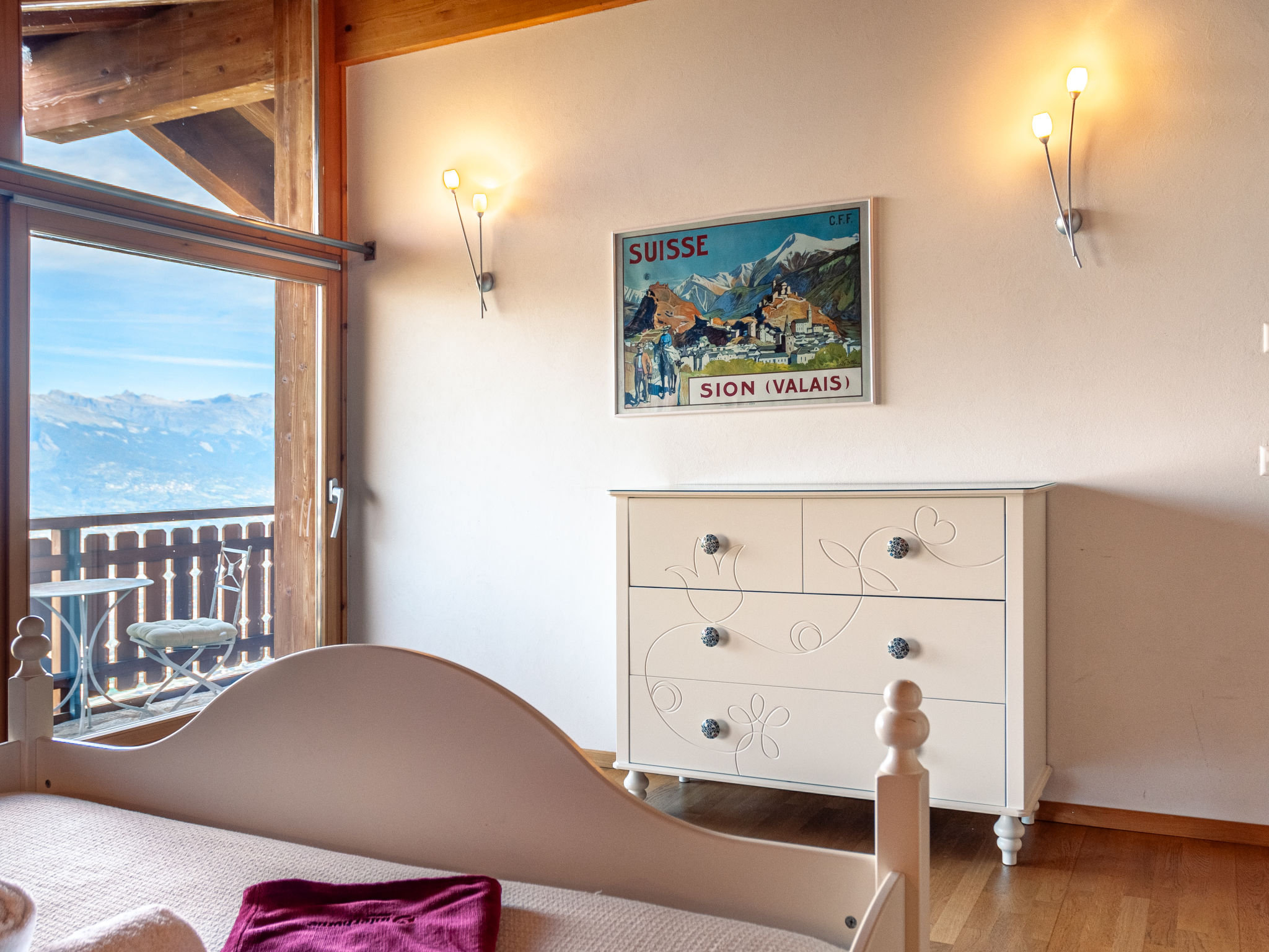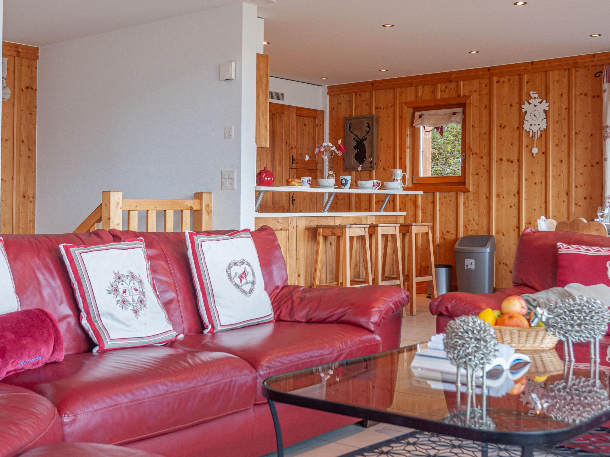 "Agneau", 5-Zimmer-Chalet 200 m2 auf 3 Stockwerken. Wohn-/Esszimmer mit Schwedenofen. Ausgang zur Terrasse. Offene Küche (Backofen, Geschirrspüler, Mikrowelle, Tiefkühler, elektrische Kaffeemaschine, Kapseln für die Kaffeemaschine (nespresso) extra, Racletteofen, Fondue Set (Käse)) mit Bar. Dusche/WC. Unteres Geschoss: 1 Zimmer mit 1 franz. Bett (140 cm, Länge 190 cm). 1 Zimmer mit 2 Betten (90 cm, Länge 200 cm). 1 Zimmer mit 3 Betten (90 cm, Länge 200 cm), Dusche/WC und TV. Bad/Dusche/WC. Obergeschoss: Galerie mit Kabel-TV und DVD. 1 grosses Zimmer mit 1 franz. Bett (160 cm, Länge 190 cm), Bad/WC. 2 Balkone, Nordlage Terrasse 50 m2, Westlage. Terrassenmöbel, Gartengrill (mobil). Panoramasicht auf die Berge. Zur Verfügung: Waschmaschine, Wäschetrockner, Kinderhochstuhl, Babybett, Haartrockner. Internet (Wireless LAN, gratis). Garage (2 Autos) in 50 m, Höhe 230 cm, Breite 240 cm. Bitte beachten: Nichtraucher-Unterkunft. 1 Haustier/Hund erlaubt.