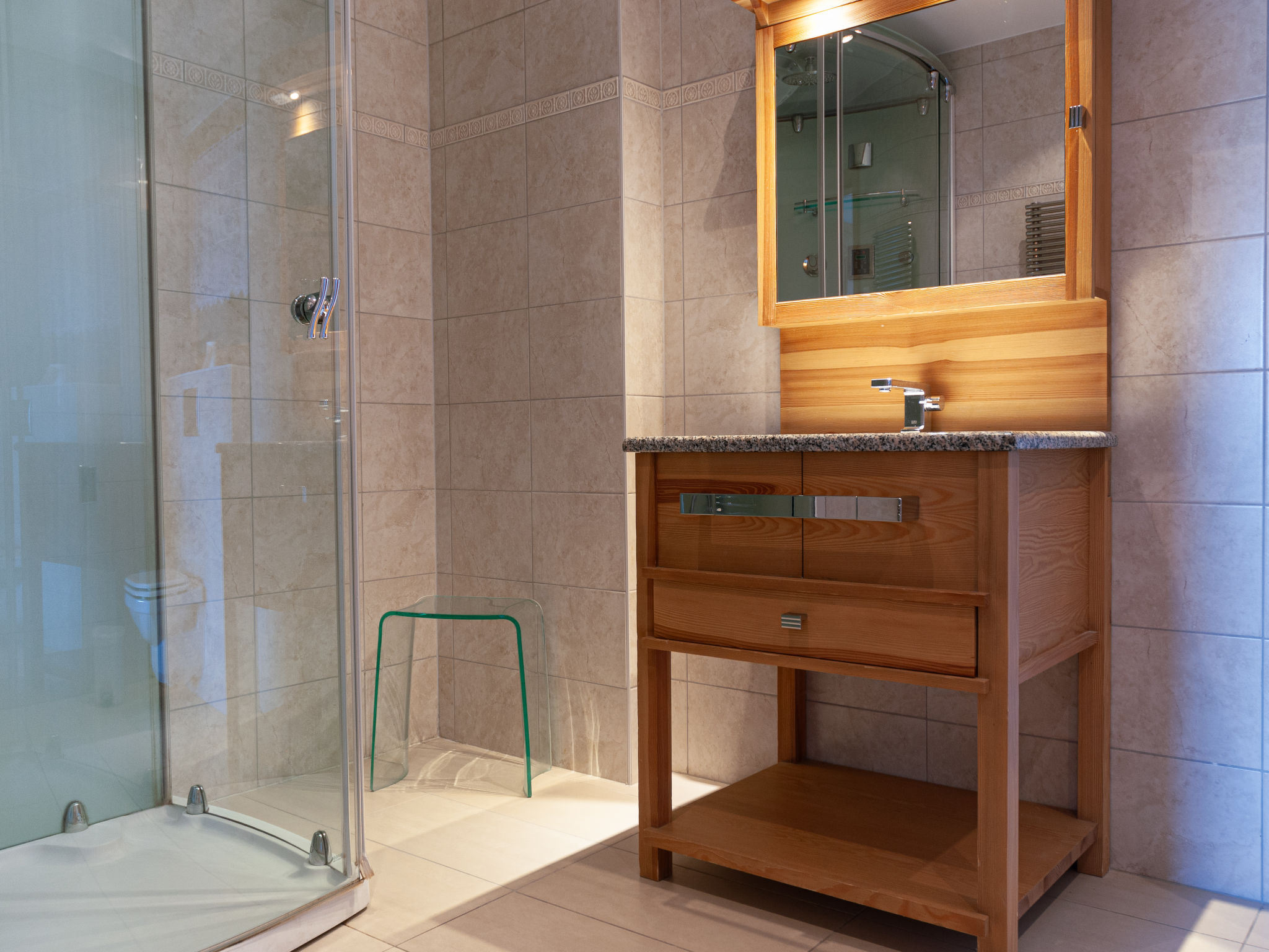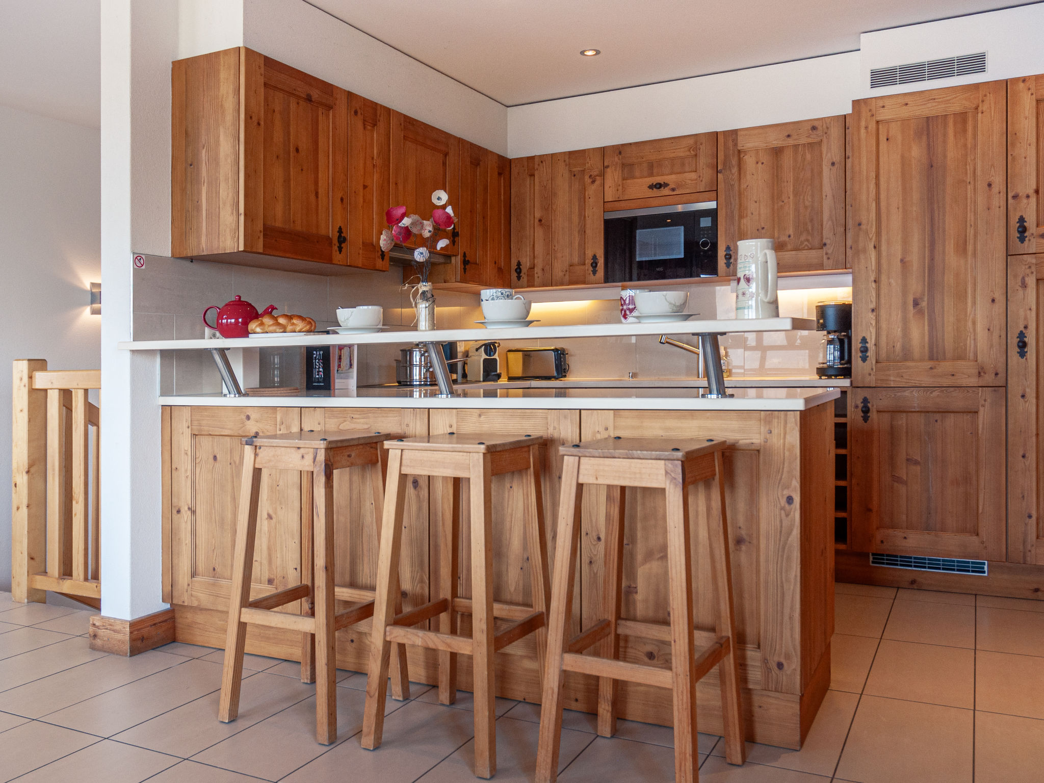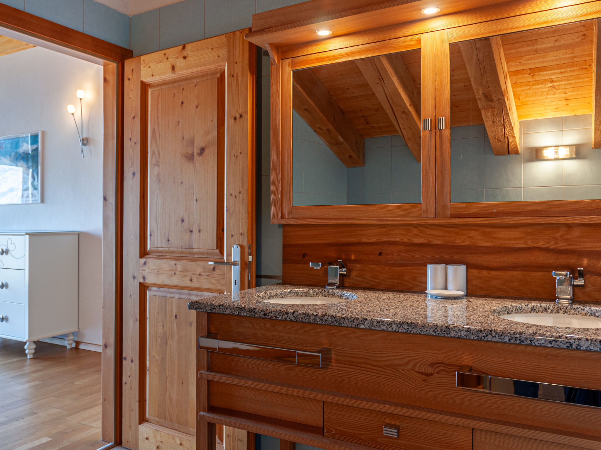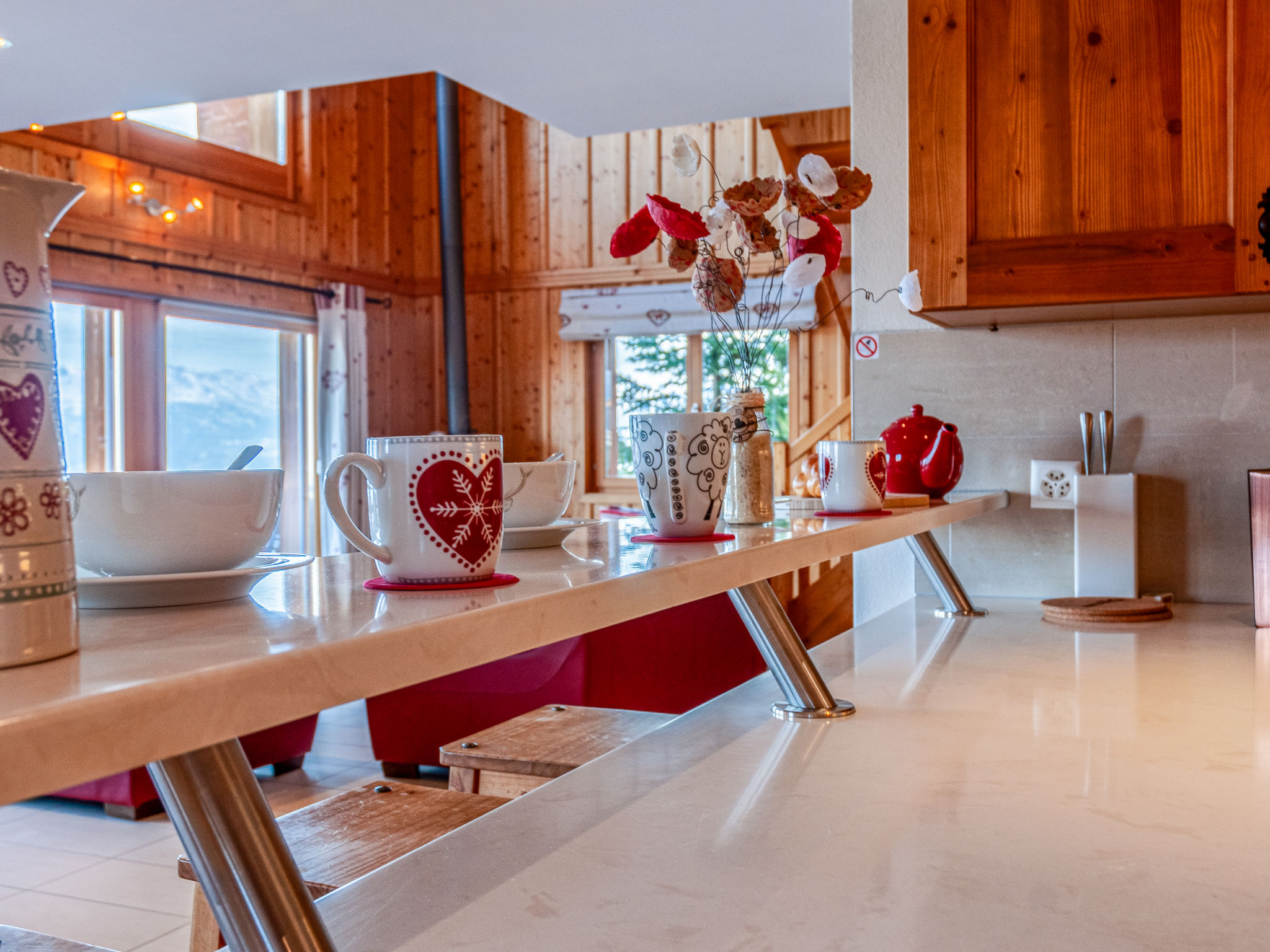 "Agneau", 5-Zimmer-Chalet 200 m2 auf 3 Stockwerken. Wohn-/Esszimmer mit Schwedenofen. Ausgang zur Terrasse. Offene Küche (Backofen, Geschirrspüler, Mikrowelle, Tiefkühler, elektrische Kaffeemaschine, Kapseln für die Kaffeemaschine (nespresso) extra, Racletteofen, Fondue Set (Käse)) mit Bar. Dusche/WC. Unteres Geschoss: 1 Zimmer mit 1 franz. Bett (140 cm, Länge 190 cm). 1 Zimmer mit 2 Betten (90 cm, Länge 200 cm). 1 Zimmer mit 3 Betten (90 cm, Länge 200 cm), Dusche/WC und TV. Bad/Dusche/WC. Obergeschoss: Galerie mit Kabel-TV und DVD. 1 grosses Zimmer mit 1 franz. Bett (160 cm, Länge 190 cm), Bad/WC. 2 Balkone, Nordlage Terrasse 50 m2, Westlage. Terrassenmöbel, Gartengrill (mobil). Panoramasicht auf die Berge. Zur Verfügung: Waschmaschine, Wäschetrockner, Kinderhochstuhl, Babybett, Haartrockner. Internet (Wireless LAN, gratis). Garage (2 Autos) in 50 m, Höhe 230 cm, Breite 240 cm. Bitte beachten: Nichtraucher-Unterkunft. 1 Haustier/Hund erlaubt.
