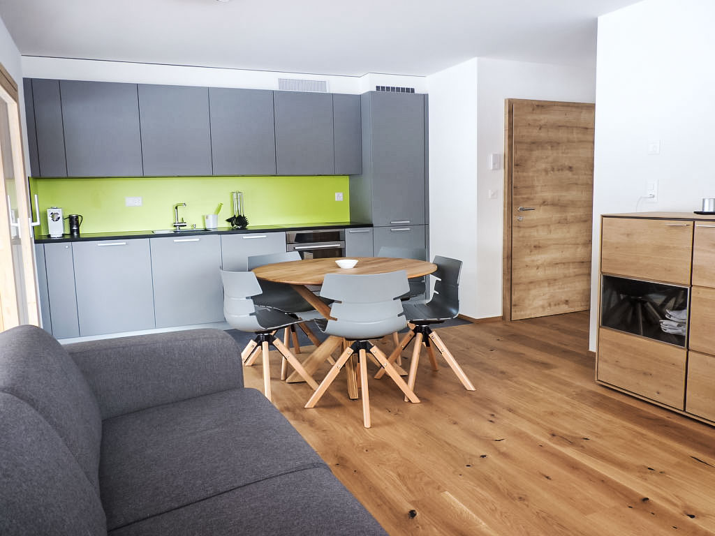 "Les Jardins d'Helene", 3-Zimmer-Wohnung 74 m2 im 1. Stock, Südlage. Objekt geeignet für 2 Erwachsene + 2 Kinder. Zweckmässig und modern eingerichtet: Wohn-/Esszimmer mit TV und Flachbildschirm. Ausgang zum Balkon. 1 Zimmer mit 1 franz. Bett (1 x 160 cm, Länge 200 cm). 1 Kinderzimmer mit 1 x 2 Etagenbetten (90 cm, Länge 190 cm). Offene Küche (4 Glaskeramikherd Platten, elektrische Kaffeemaschine, Racletteofen, Fondue Set (Käse)). Ausgang zum Balkon. Dusche/WC. Grosser Balkon 27 m2. Balkonmöbel. Schöne Sicht auf die Berge. Zur Verfügung: Haartrockner. Internet (Wireless LAN, gratis). Parkplatz Nr. 4, Garage Nr. 4. Bitte beachten: geeignet für Familien. Nichtraucher-Unterkunft. Delizio Kaffeemaschine. TV-Empfang nur über Netflix möglich.
