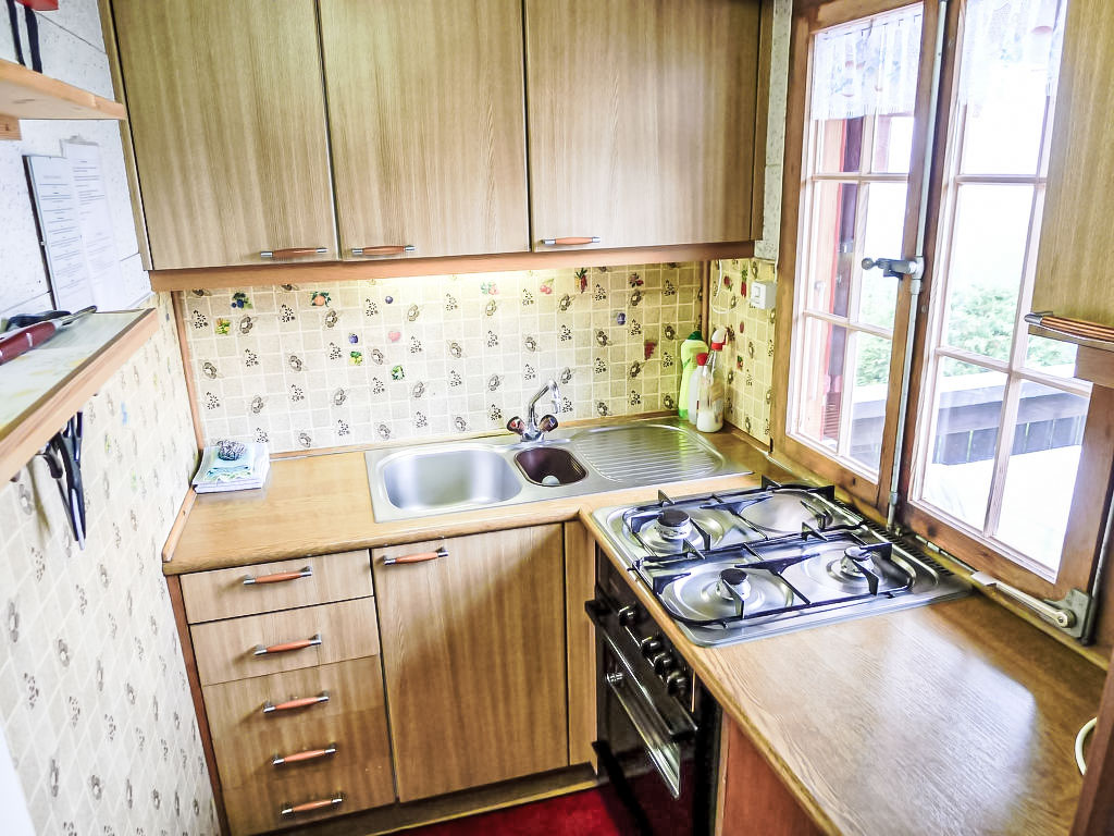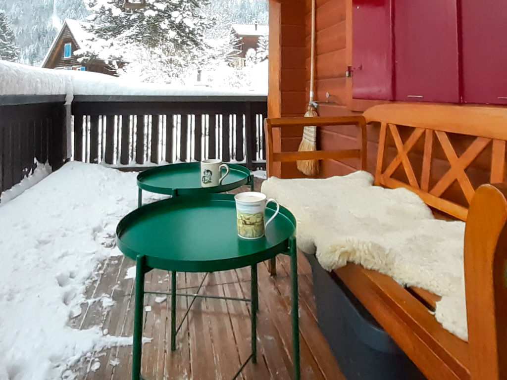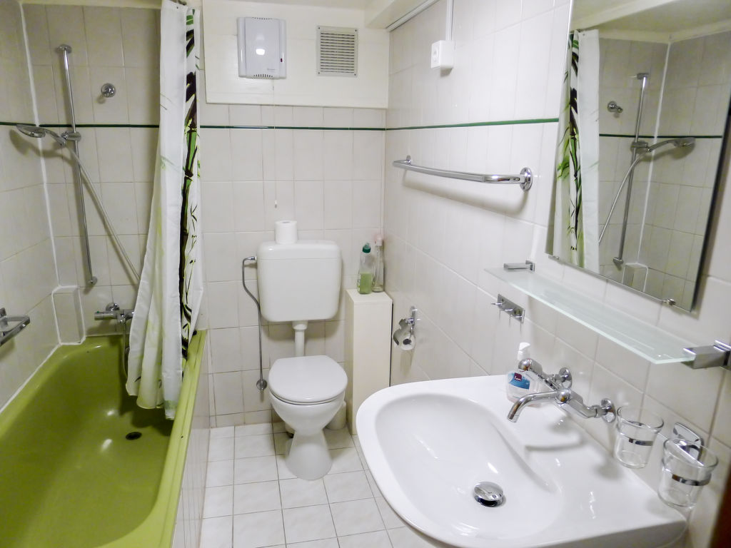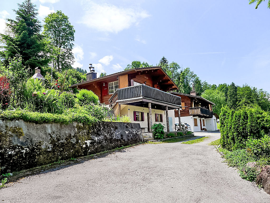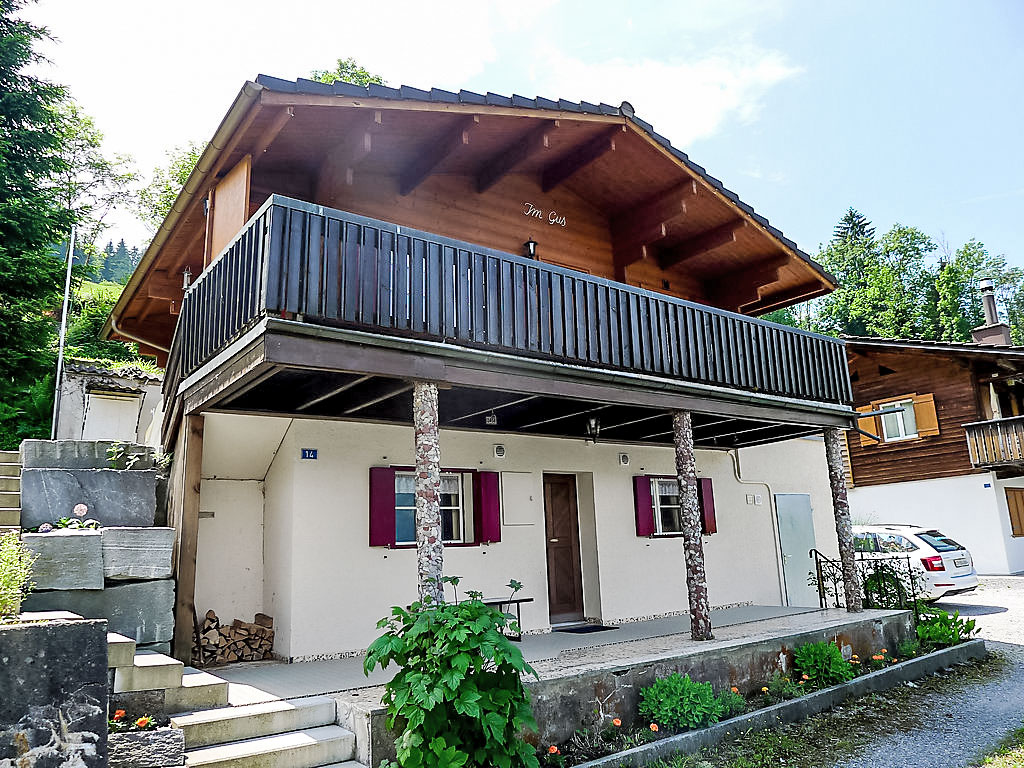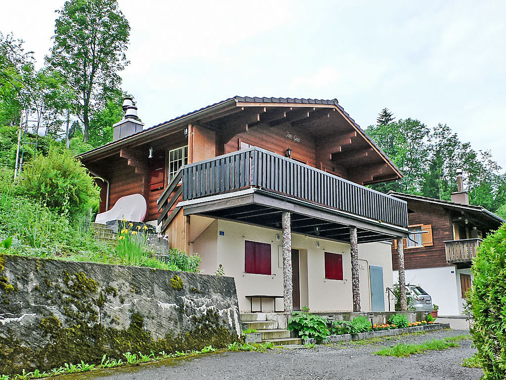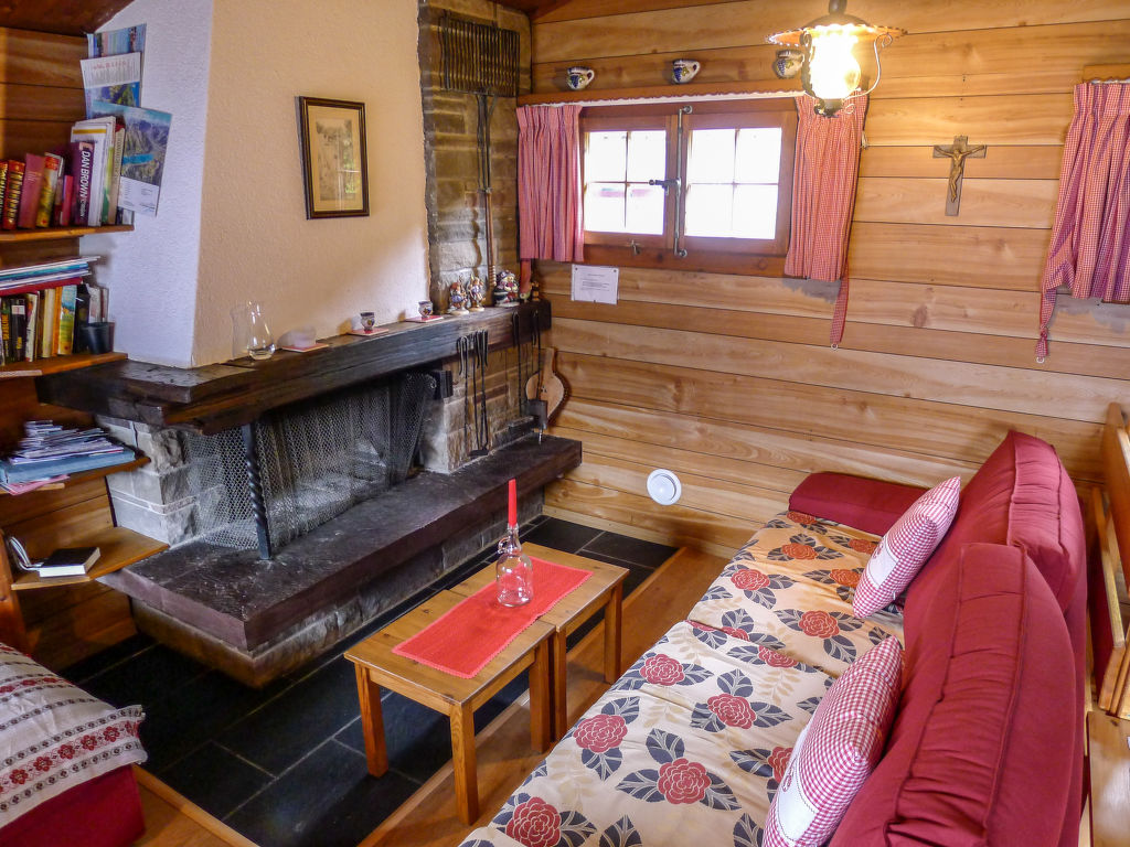 3-Zimmer-Chalet 65 m2 auf 2 Stockwerken. Zweckmässig und gemütlich eingerichtet: Wohn-/Esszimmer mit offenem Kamin und Sat-TV (Flachbildschirm), Radio. Ausgang zum Balkon. 1 kleines Zimmer mit 1 franz. Bett (140 cm). Kleine Küche (3 Kochplatten, Backofen). Sep. WC. Unteres Geschoss: (Leiter) 1 kleines Zimmer mit 1 x 2 Etagenbetten. Bad/WC. Balkon, Terrasse, Gartensitzplatz. Terrassenmöbel, Gartengrill, Abstellkammer. Sehr schöne Sicht auf den See und die Berge. Zur Verfügung: Waschmaschine, Holz (gratis). Internet (Wireless LAN, gratis). Parkplatz (2 Autos), Garage Nr. 6. Bitte beachten: Nichtraucher-Unterkunft. Zugang zum Obergeschoss über steile Leiter oder über die Aussentreppe.