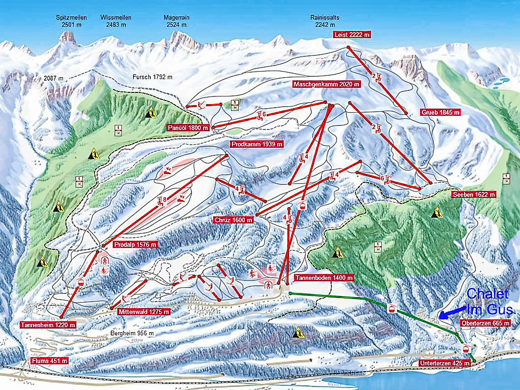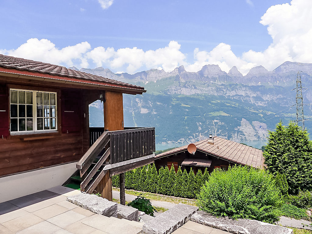 Oberterzen: Gemütliches Chalet "Im Gus", 850 m.ü.M.. Am Ortsrand Oberterzen, ruhige, sonnige Lage am Hang, 4 km vom See, 1 km vom Skigebiet, im Grünen. Zur Alleinbenutzung: Garten. Sitzplatz, Grill. Im Hause: Wireless LAN, Skiraum, Zentralheizung. Steile, schmale Zufahrt bis zum Haus (Bergstrasse). Im Winter bitte Schneeketten mitbringen, im Winter 4x4 empfohlen. Parkplatz beim Haus, Einzelgarage in 55 m. Lebensmittelgeschäft 1 km, Restaurant 1 km, Bushaltestelle 1 km, Bahnstation "Unterterzen" 4 km, See Walensee 4 km. Gondelbahn 1 km, Skisportanlagen 1 km, Skipisten 100 m. Bekannte Skigebiete sind gut erreichbar: Flumserberg 1 km. Bekannte Seen in der Umgebung sind gut erreichbar: Walensee 4 km. Wandergebiete: Flumserberg. Bitte beachten: Bei guter Schneelage Zufahrt mit den Skiern bis zum Haus. Das Ferienhaus steht direkt neben der schwarzen Skipiste "Terza" (Flumserberg - Oberterzen, nur für gute Skifahrer). Achtung: keine Gruppen, nur Familien. ab 01.06.2022 total 4 Zimmer, 3 Schlafzimmer verfügbar.