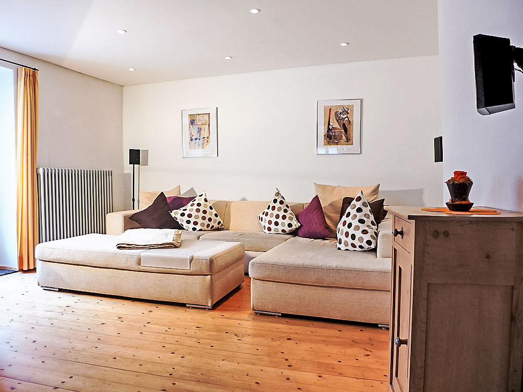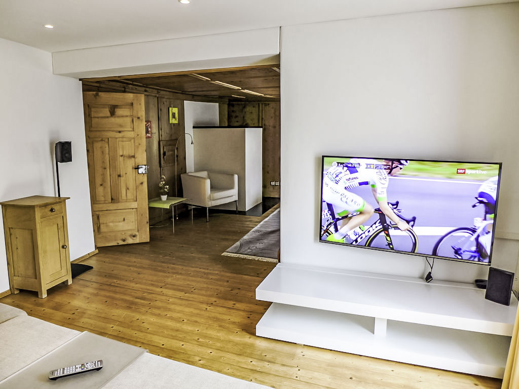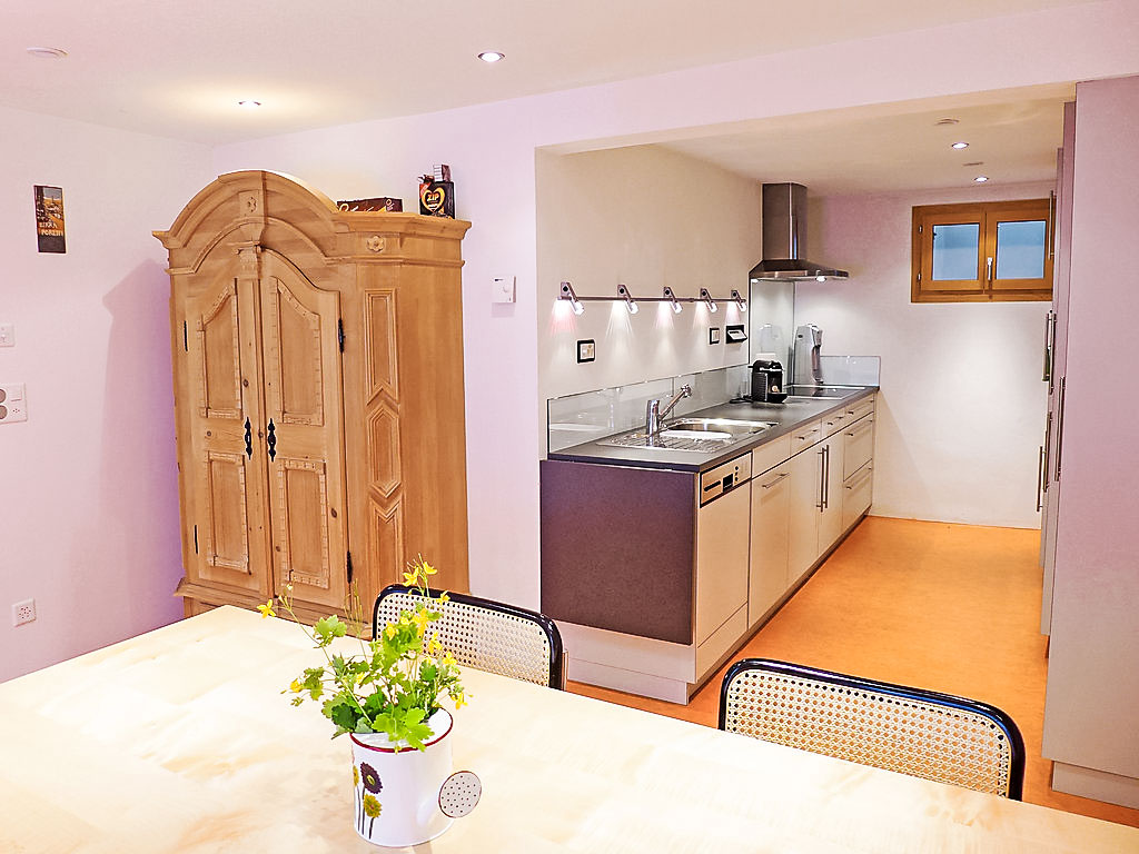 "Ferienhaus Döss", 6-Zimmer-Haus 160 m2. Komfortabel und gemütlich eingerichtet: Wohnzimmer mit Sat-TV, Radio, DVD und Kachelofen. Ausgang zur Terrasse. Esszimmer mit offenem Kamin und Esstisch. Offene Küche (4 Kochplatten, Backofen, Geschirrspüler, Toaster, Wasserkocher, elektrische Kaffeemaschine, Kapseln für die Kaffeemaschine (Nespresso) extra). Obergeschoss: 2 Doppelzimmer. 2 Zimmer, jedes Zimmer mit 1 Bett. Sep. WC, Bad/Dusche/WC. Heizung. Terrasse. Terrassenmöbel, Liegestühle (2). Schöne Sicht auf die Berge, die Landschaft und die Ortschaft. Zur Verfügung: Internet (Wireless LAN, gratis). Parkplatz beim Haus.