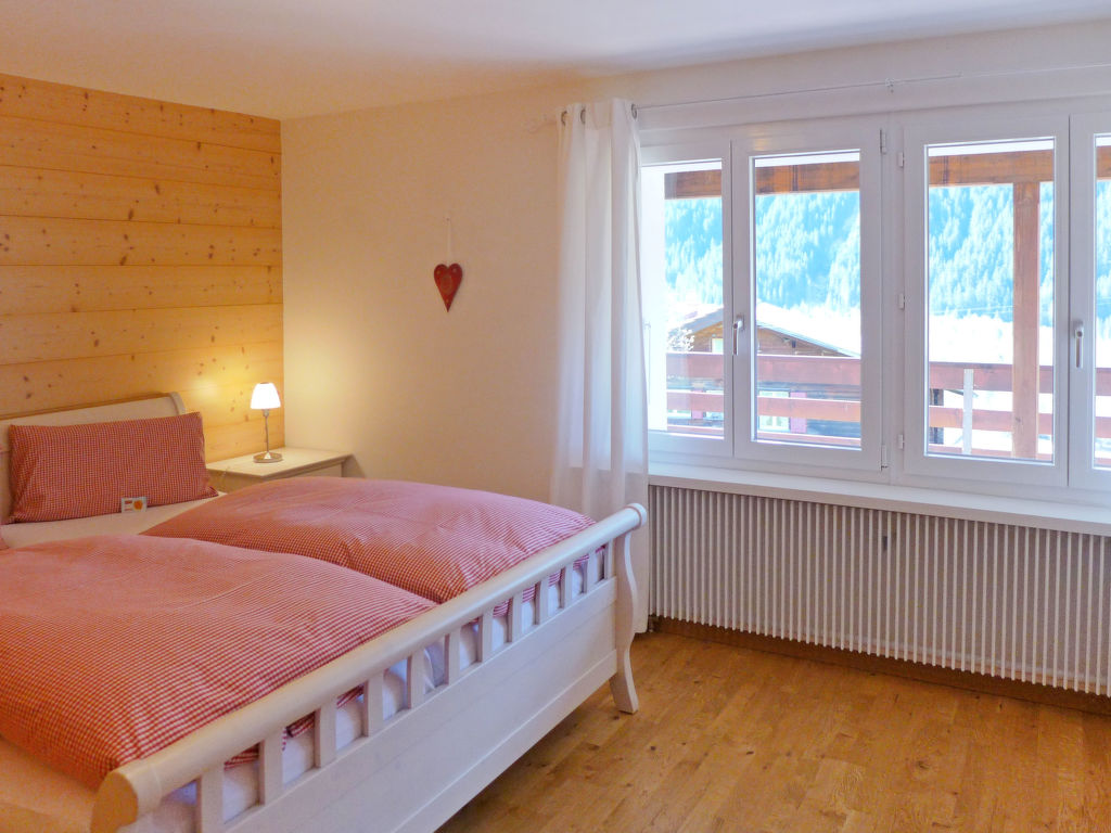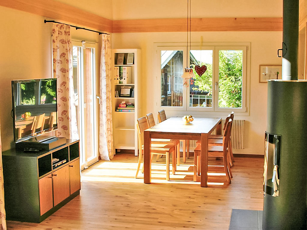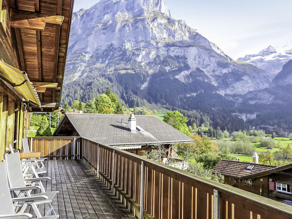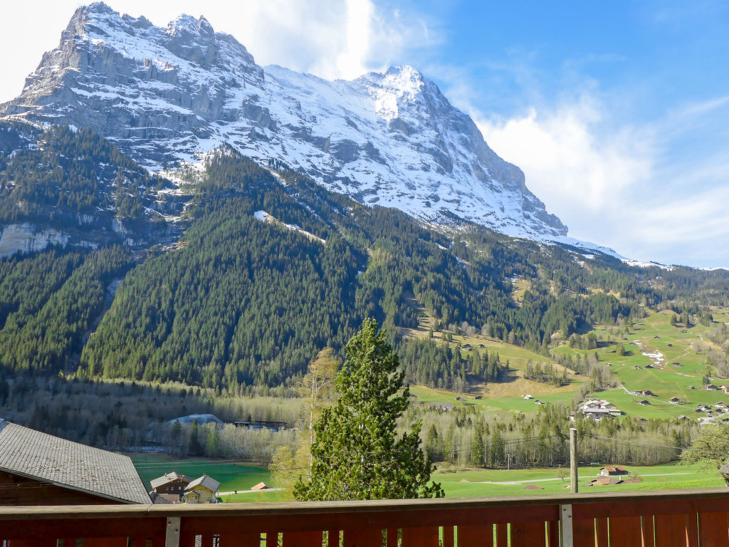 "Chalet Ahornen", 4-Zimmer-Chalet 125 m2 auf 2 Stockwerken, Südlage. Schön und gemütlich eingerichtet: Wohn-/Esszimmer mit Schwedenofen und Sat-TV. Ausgang zum Balkon, Richtung Süden und Richtung Westen. 1 Zimmer mit 2 Betten (90 cm, Länge 200 cm). Offene Küche (Backofen, Geschirrspüler, 4 Glaskeramikherd Platten, Toaster, Wasserkocher, elektrische Kaffeemaschine, Kapseln für die Kaffeemaschine (Nespresso) extra, Racletteofen, Fondue Set (Käse)). Dusche/WC. Unteres Geschoss: 2 Doppelzimmer (2 x 90 cm, Länge 200 cm). Bad/WC. Holzböden. Grosser Balkon 30 m2, Südlage und Westlage. Herrliche Sicht auf die Berge und Eigernordwand. Zur Verfügung: Waschmaschine, Kinderhochstuhl, Haartrockner, Holz (extra). Internet (Wireless LAN, gratis). IPod docking station. Bitte beachten: Nichtraucher-Haus. Feuerlöscher. Achtung: Keine CH-TV-Sender.