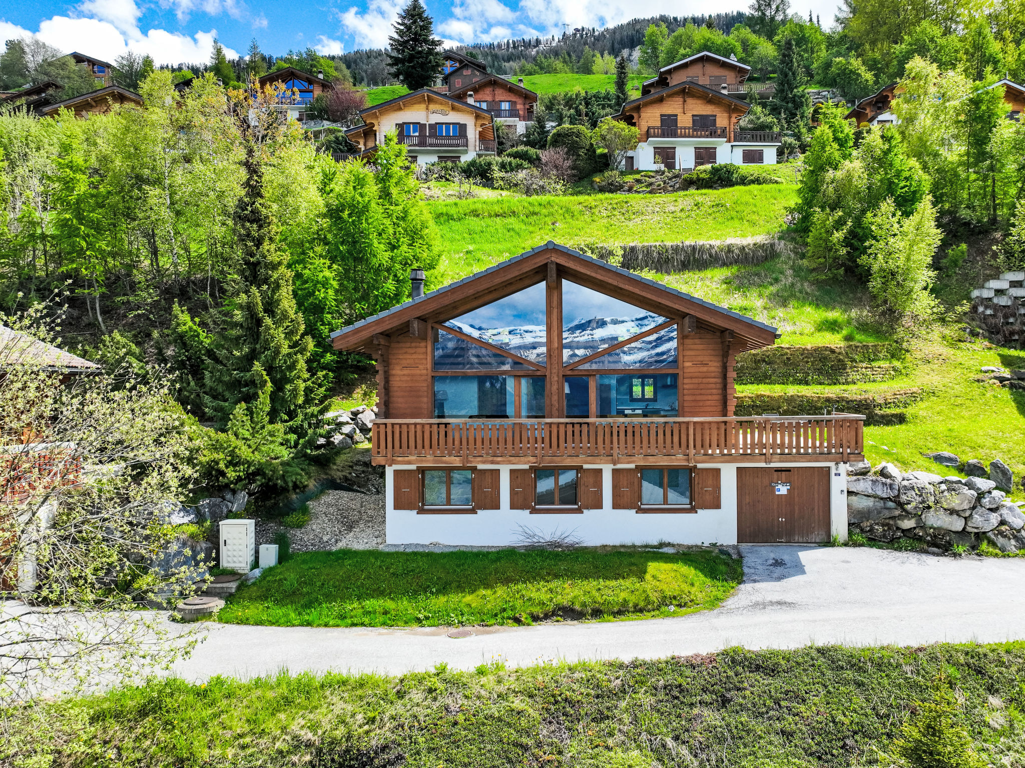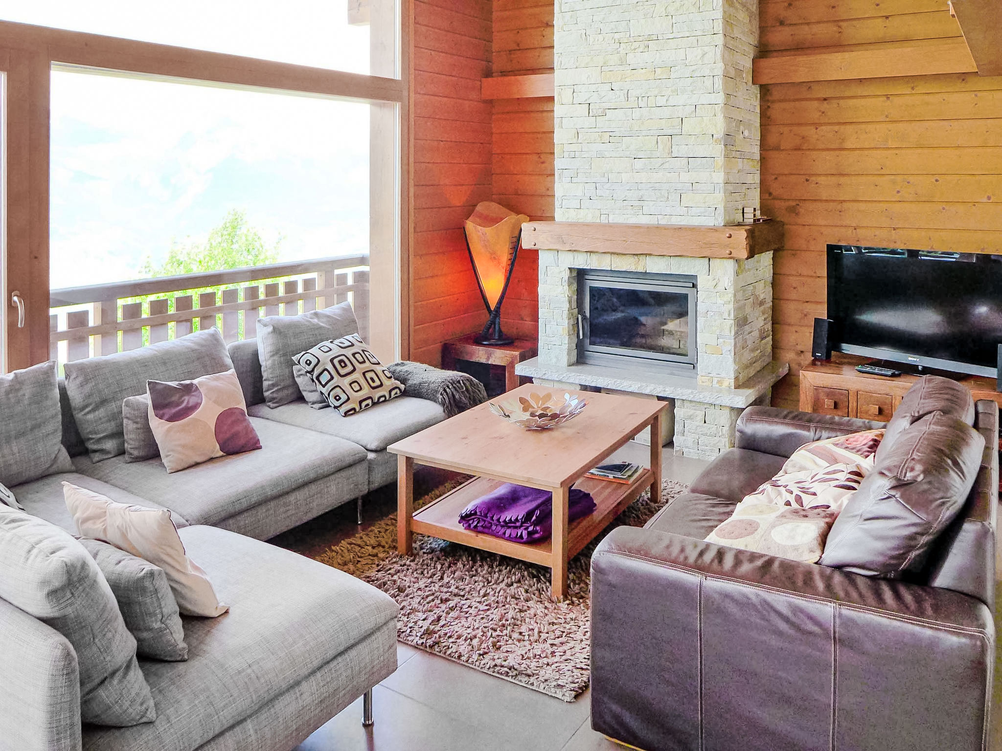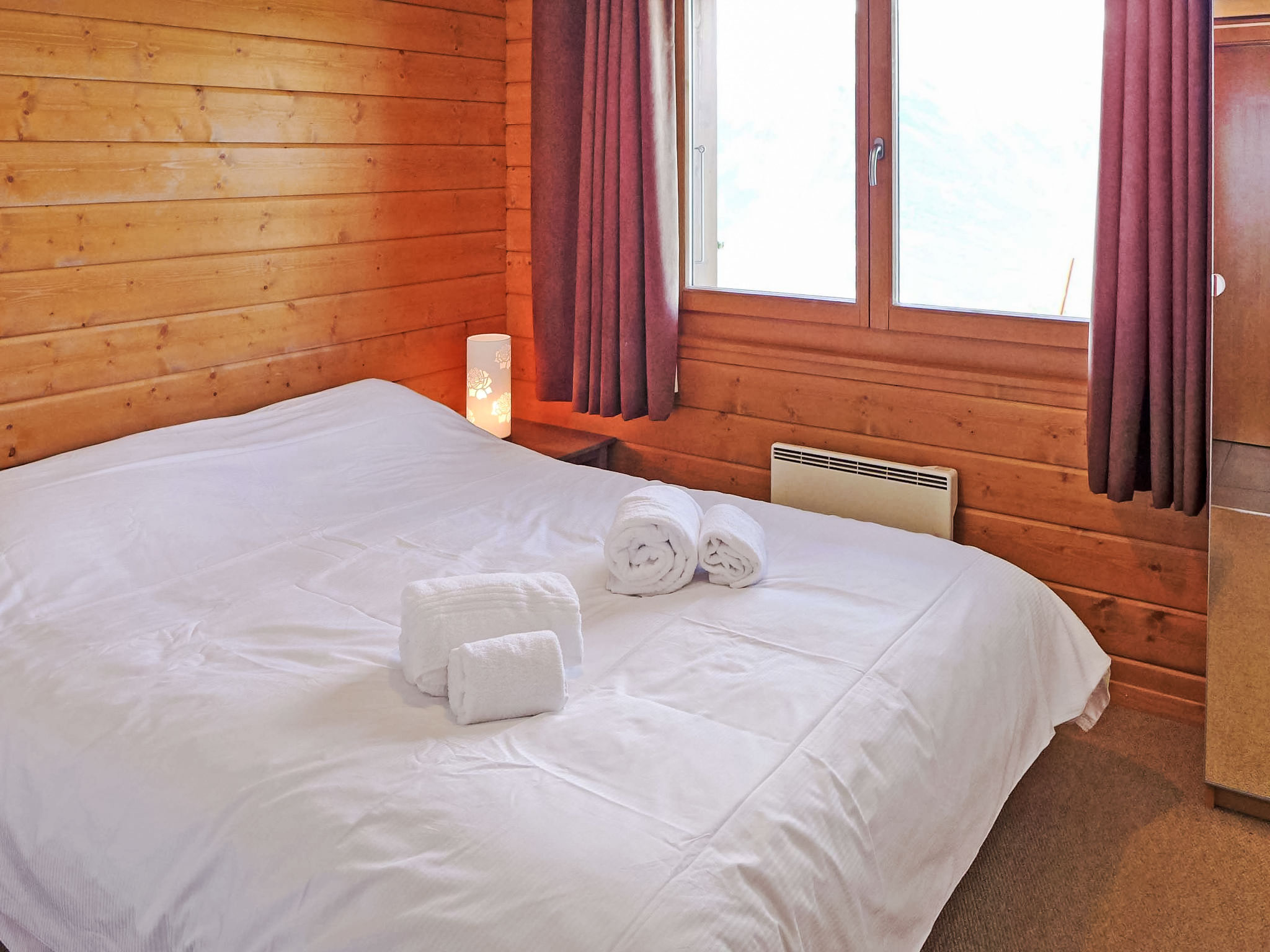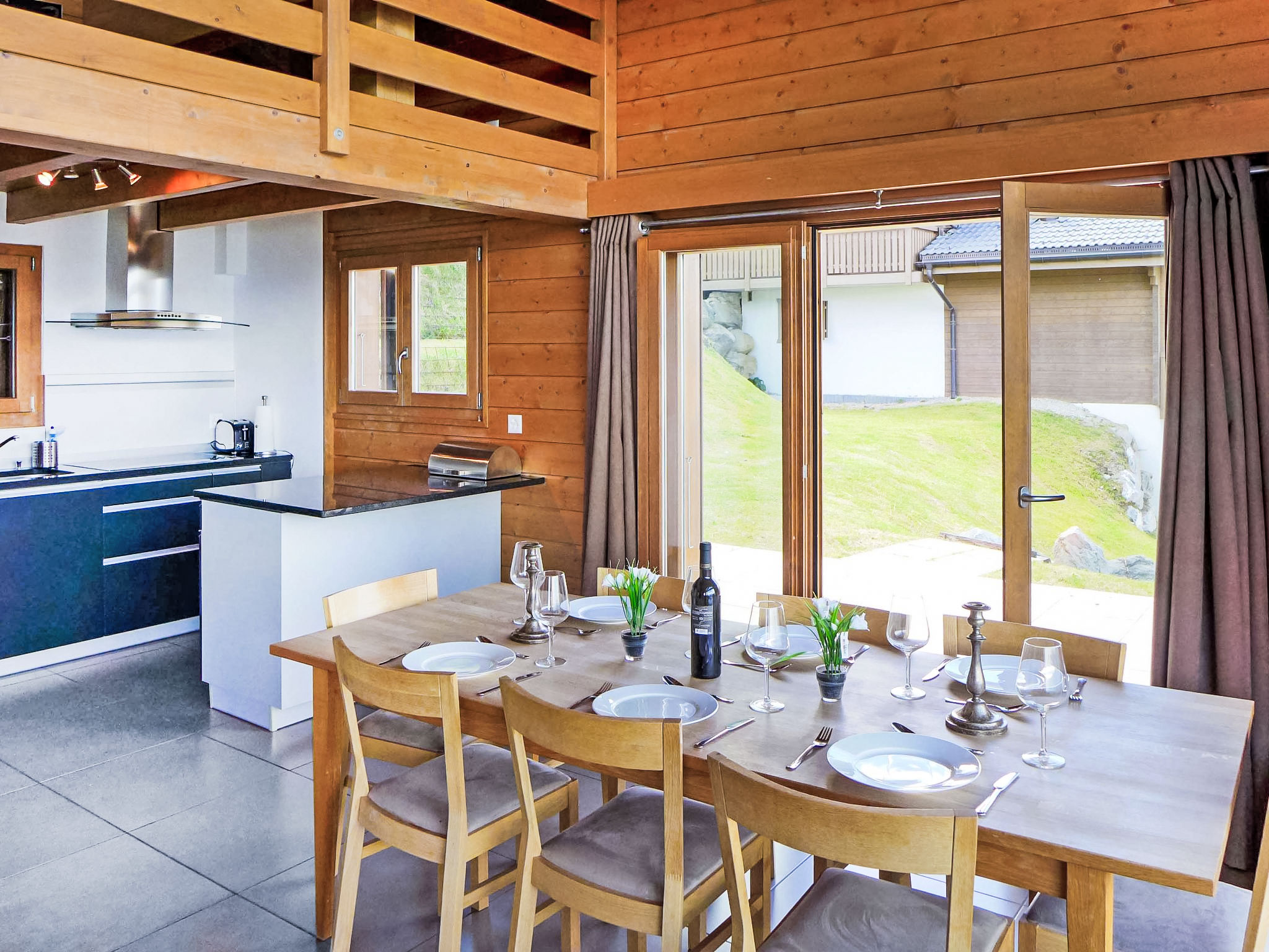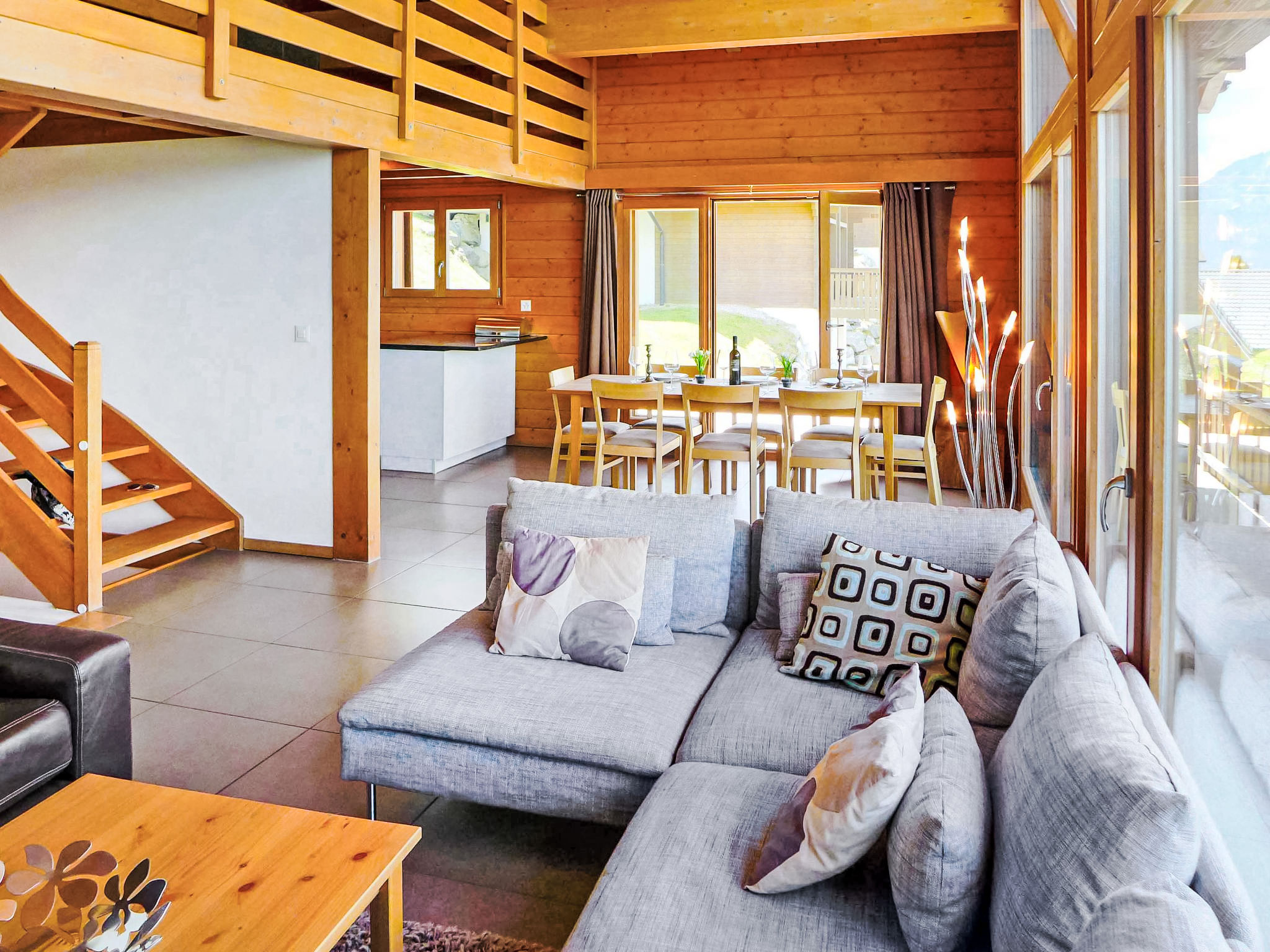 "La Truffe", 5-Zimmer-Chalet 120 m2 auf 2 Stockwerken. Komfortabel und modern eingerichtet: grosses Wohn-/Esszimmer mit Panoramafenster mit offenem Kamin, Kabel-TV und DVD. Ausgang zur Terrasse. Galerie. Offene Küche (Backofen, Geschirrspüler, 4 Glaskeramikherd Platten, Mikrowelle, elektrische Kaffeemaschine, Kapseln für die Kaffeemaschine (Nespresso) extra, Racletteofen, Fondue Set (Käse)). Dusche/WC. Unteres Geschoss: 2 Zimmer, jedes Zimmer mit 1 franz. Bett (160 cm, Länge 200 cm). 2 Zimmer, jedes Zimmer mit 2 Betten (190 cm, Länge 190 cm). Bad/WC. Balkon, Nordlage, grosse Terrasse, Südwestlage. Gartengrill (mobil). Sehr schöne Panoramasicht auf die Berge und das Tal. Zur Verfügung: Waschmaschine, Wäschetrockner, Kinderhochstuhl, Babybett, Haartrockner. Internet (Wireless LAN, gratis). Parkplatz (1 Auto), Garage, Höhe 195 cm, Breite 250 cm. Bitte beachten: Nichtraucher-Unterkunft.