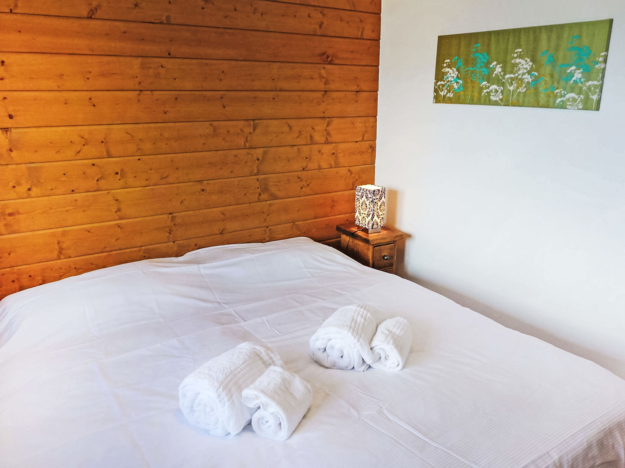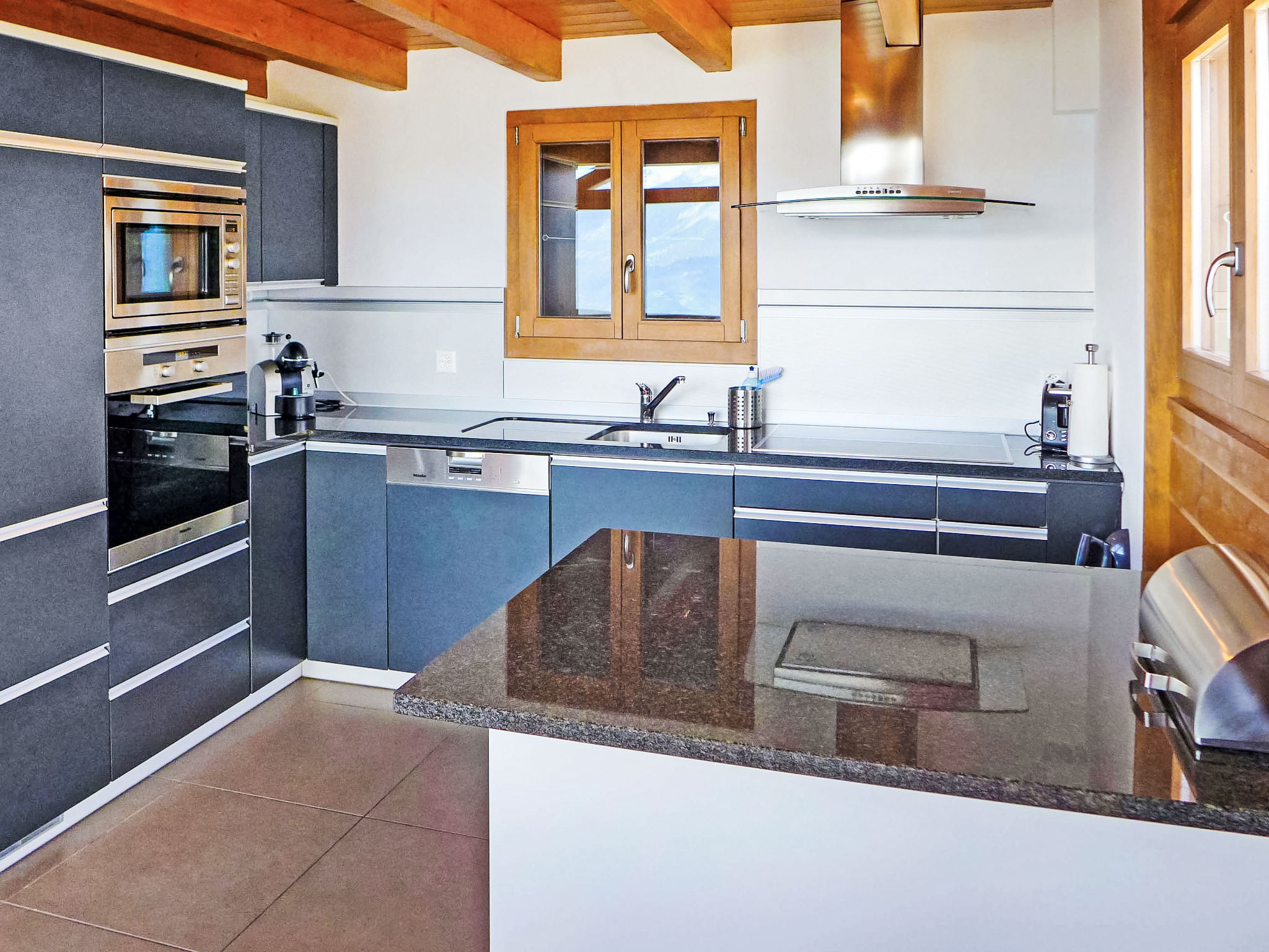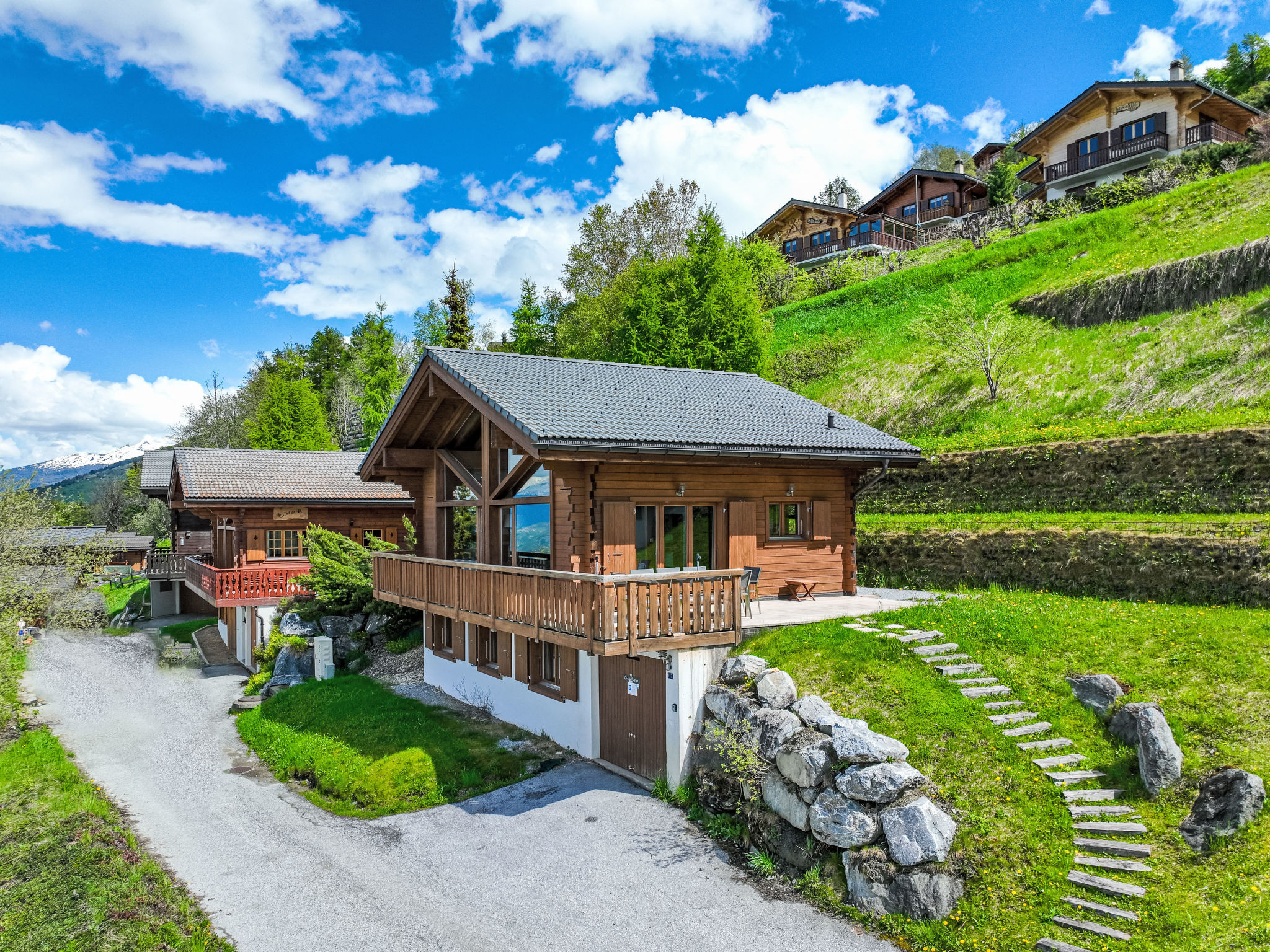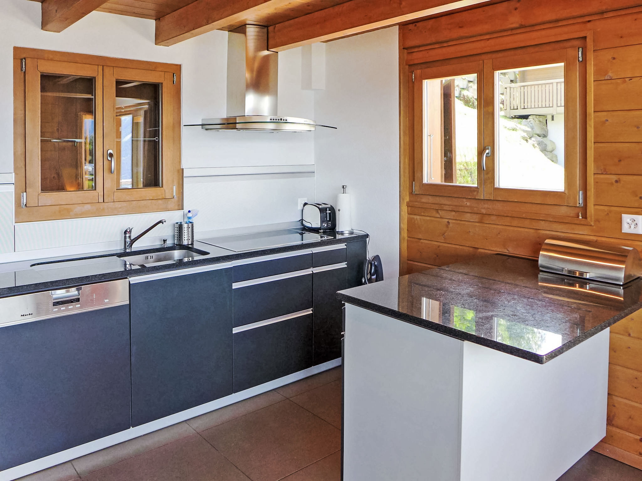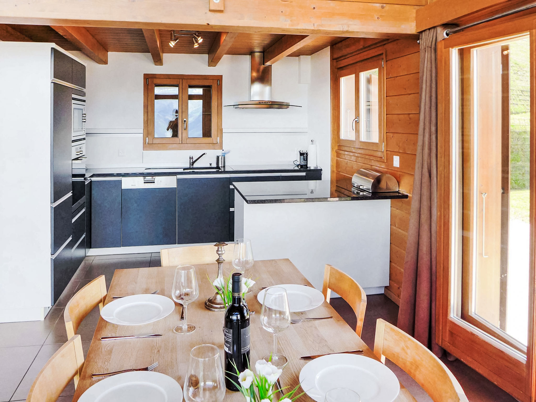 "La Truffe", 5-Zimmer-Chalet 120 m2 auf 2 Stockwerken. Komfortabel und modern eingerichtet: grosses Wohn-/Esszimmer mit Panoramafenster mit offenem Kamin, Kabel-TV und DVD. Ausgang zur Terrasse. Galerie. Offene Küche (Backofen, Geschirrspüler, 4 Glaskeramikherd Platten, Mikrowelle, elektrische Kaffeemaschine, Kapseln für die Kaffeemaschine (Nespresso) extra, Racletteofen, Fondue Set (Käse)). Dusche/WC. Unteres Geschoss: 2 Zimmer, jedes Zimmer mit 1 franz. Bett (160 cm, Länge 200 cm). 2 Zimmer, jedes Zimmer mit 2 Betten (190 cm, Länge 190 cm). Bad/WC. Balkon, Nordlage, grosse Terrasse, Südwestlage. Gartengrill (mobil). Sehr schöne Panoramasicht auf die Berge und das Tal. Zur Verfügung: Waschmaschine, Wäschetrockner, Kinderhochstuhl, Babybett, Haartrockner. Internet (Wireless LAN, gratis). Parkplatz (1 Auto), Garage, Höhe 195 cm, Breite 250 cm. Bitte beachten: Nichtraucher-Unterkunft.