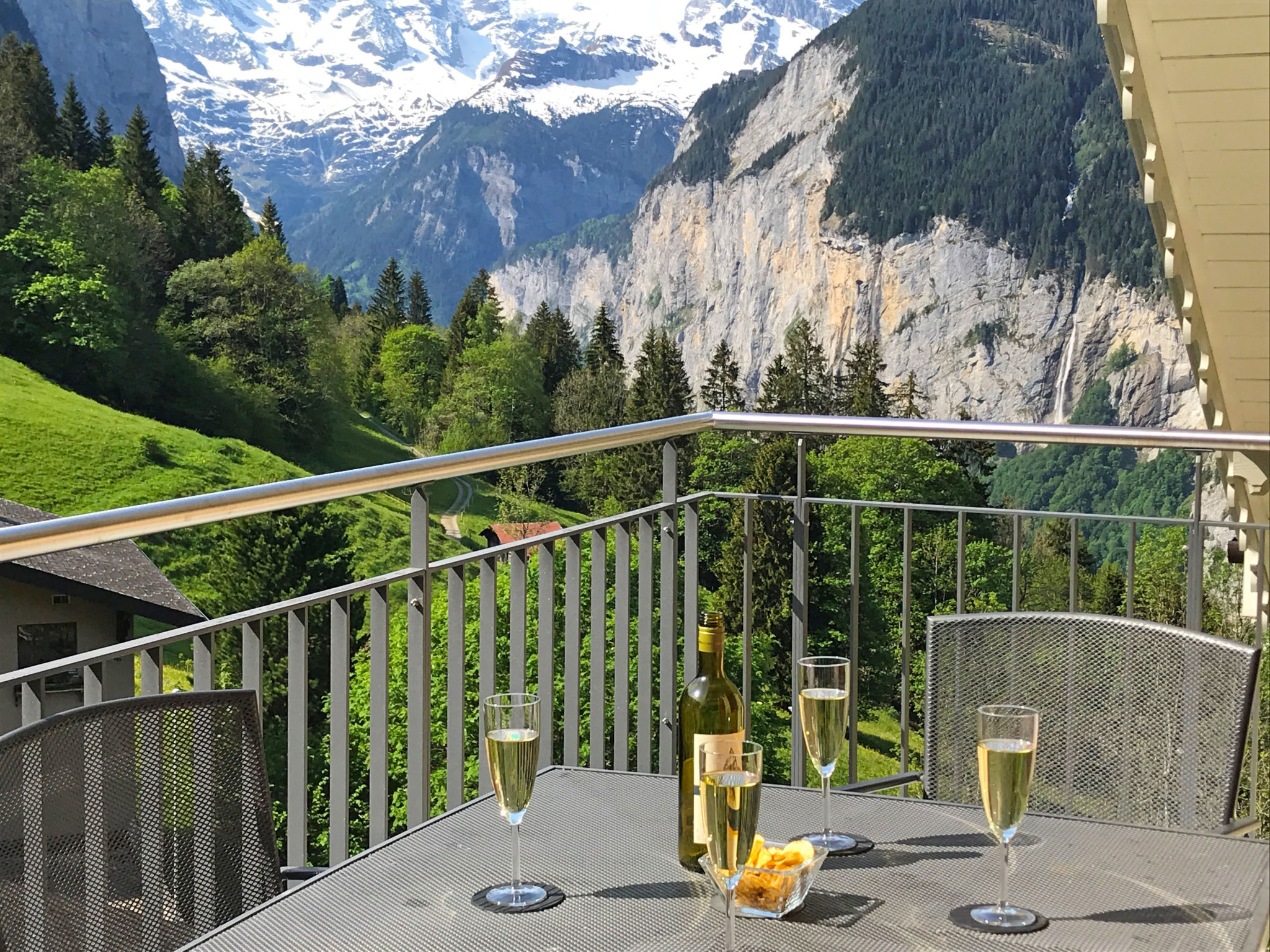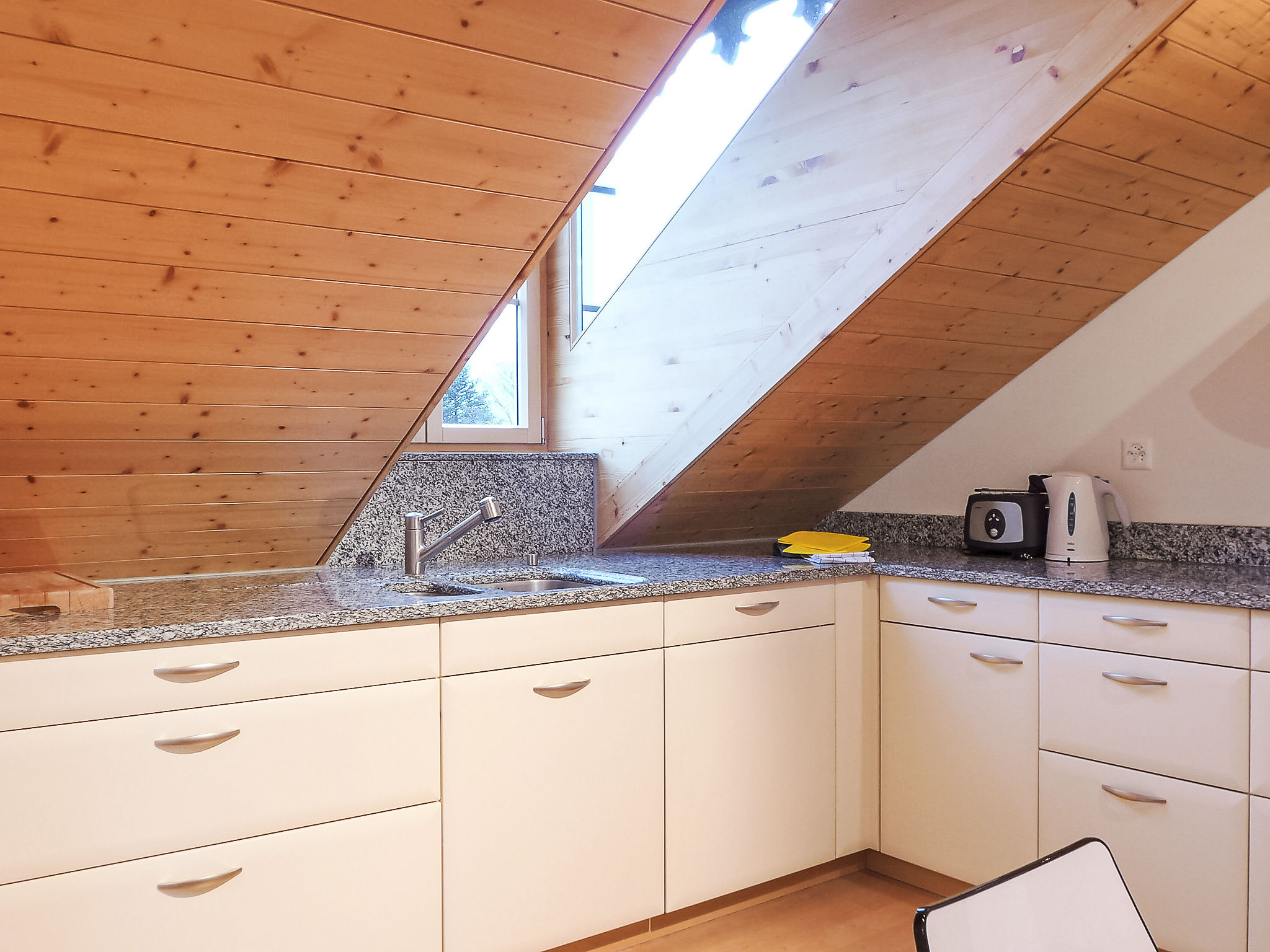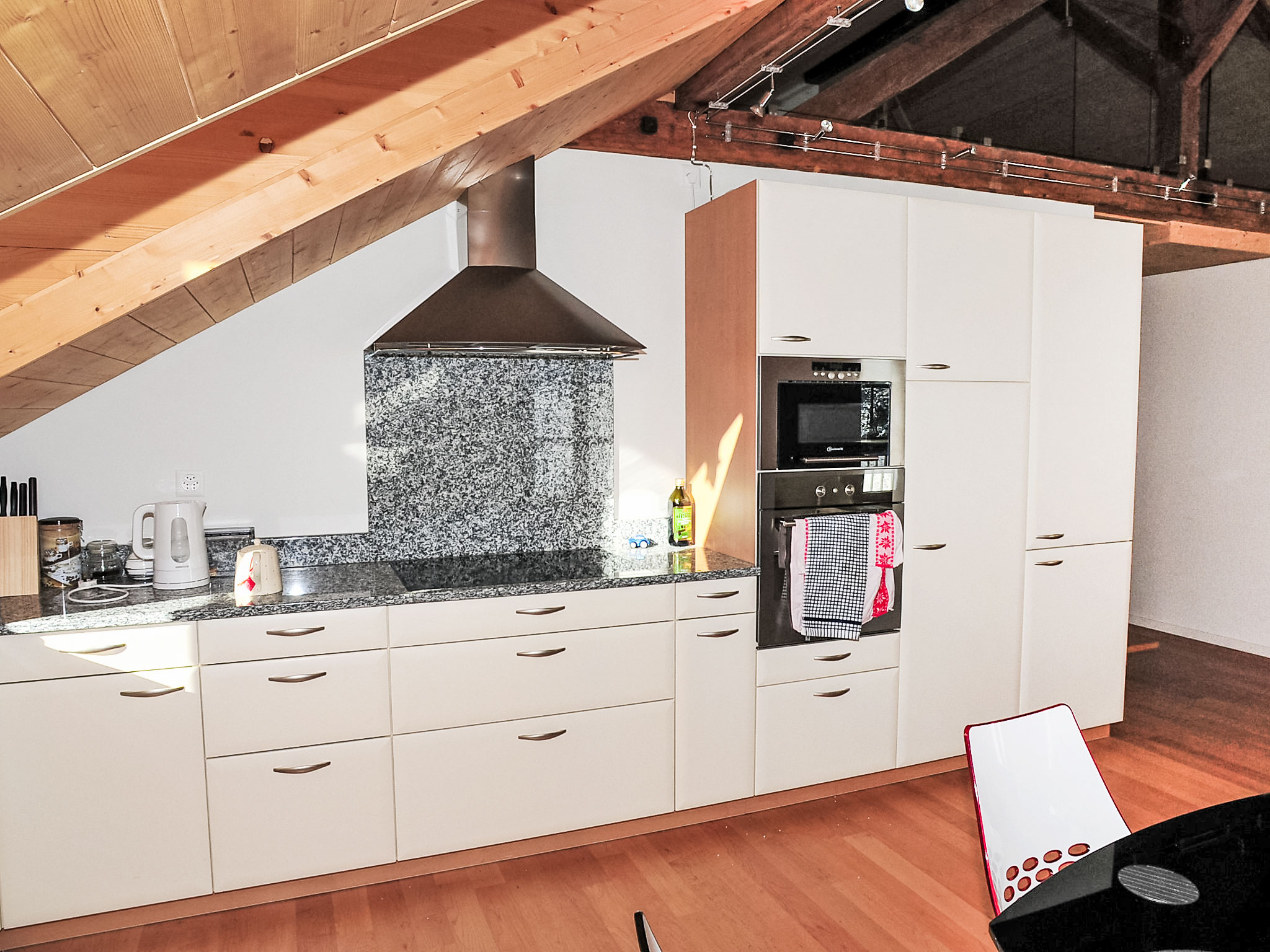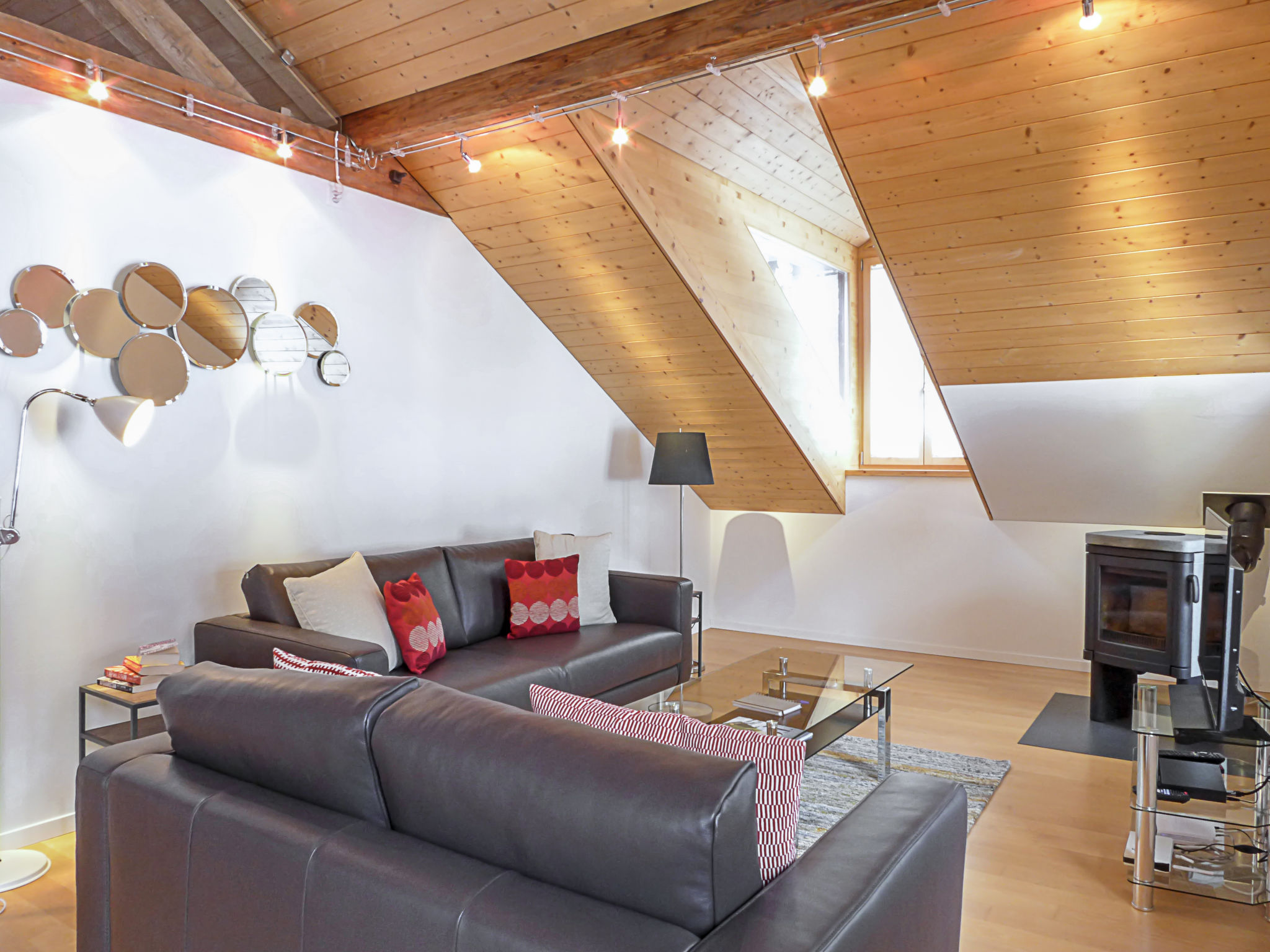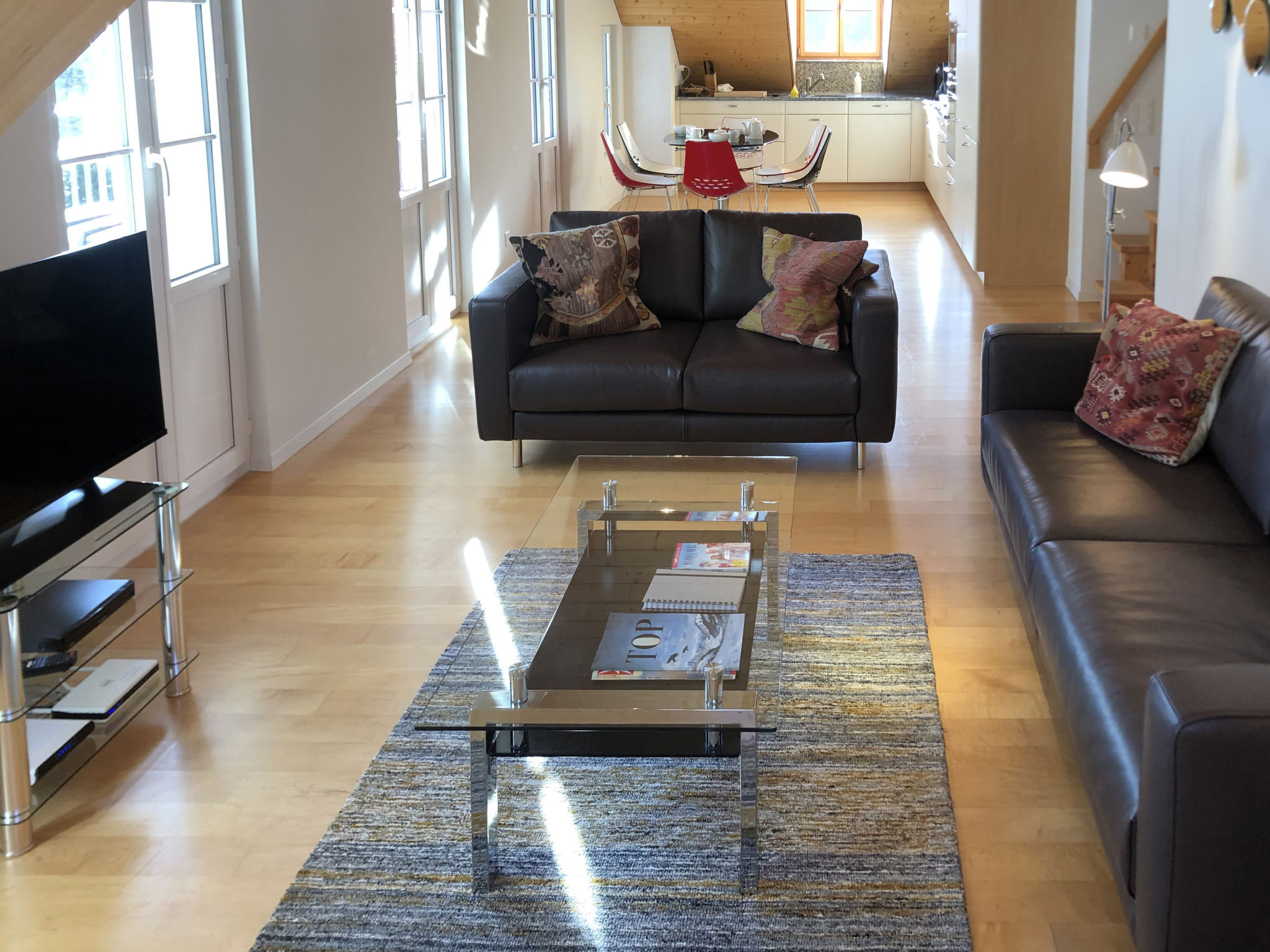 "Apt.No. 8", 3-Zimmer-Wohnung 117 m2, im Dachgeschoss. Geräumig und hell, abgeschrägt, modern und stilvoll eingerichtet: Wohn-/Esszimmer mit Schwedenofen, Esstisch, Kabel-TV, Radio und DVD. 1 Zimmer mit 1 franz. Bett (1 x 160 cm, Länge 200 cm), Bad/WC. 1 Zimmer mit 2 Betten (90 cm, Länge 200 cm). Grosse, offene Küche (Backofen, Geschirrspüler, 4 Induktionskochplatten, Toaster, Wasserkocher, Mikrowelle, elektrische Kaffeemaschine, Kapseln für die Kaffeemaschine (Nespresso) extra, Fondue Set (Chinoise, Käse)). Dusche/WC. Balkon, Südostlage. Balkonmöbel. Herrliche Panoramasicht auf die Berge. Zur Verfügung: Waschmaschine, Wäschetrockner, Holz (extra). Internet (Wireless LAN, gratis). Bitte beachten: Nichtraucher-Unterkunft.