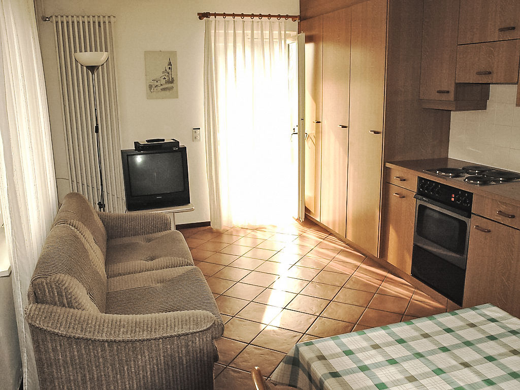 2-Zimmer-Wohnung 56 m2, im Erdgeschoss. Objekt geeignet für 2 Erwachsene + 1 Kind. Einfach und komfortabel eingerichtet: 1 Doppelzimmer mit 1 Doppelbett (2 x 90 cm, Länge 200 cm). Wohnküche (4 Kochplatten, Backofen) mit Esstisch, 1 Doppeldiwanbett (160 cm, Länge 200 cm), TV (Flachbildschirm). Ausgang zum Gartensitzplatz. Dusche/WC. Heizung. Terrassenmöbel, Sitzplatz. Sehr schöne Sicht auf den See, die Berge, die Landschaft und die Ortschaft. Zur Verfügung: Babybett (extra). Internet (Wireless LAN, gratis). Bitte beachten: Nichtraucher-Unterkunft. 1 Haustier/Hund erlaubt.
