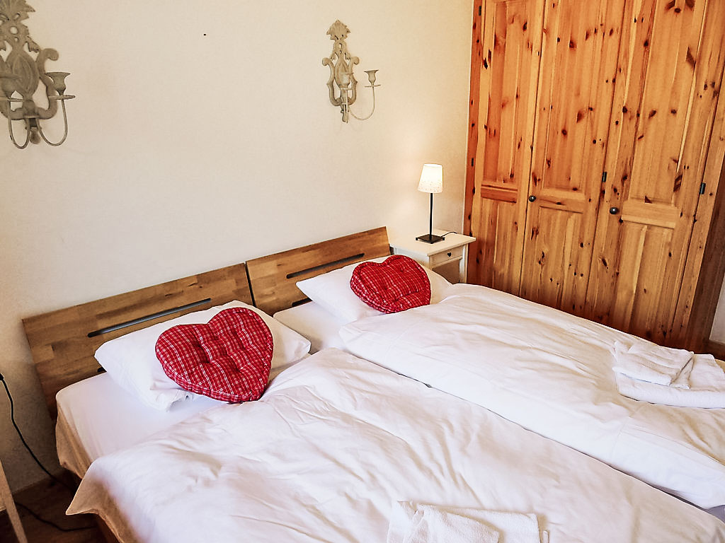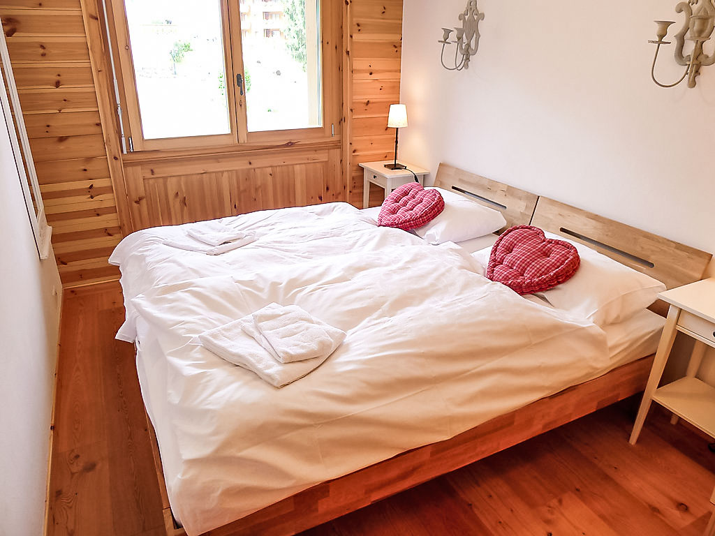 "Rhodonite 24", 4-Zimmer-Wohnung 98 m2 im 2. Stock, Südwestlage. Sehr komfortabel und geschmackvoll eingerichtet: grosses Wohn-/Esszimmer mit offenem Kamin und TV (Flachbildschirm), DVD. Ausgang zum Balkon, Richtung Süden und Richtung Westen. 1 Zimmer mit 2 Betten. 1 Zimmer mit 2 Betten. Ausgang zum Balkon, Richtung Osten. 1 Doppelzimmer mit 1 Doppelbett (160 cm), Bad/Dusche/WC und Doppelwaschbecken. Offene Küche (4 Kochplatten, Backofen, Geschirrspüler, Mikrowelle, Grill, elektrische Kaffeemaschine, Kapseln für die Kaffeemaschine (Nespresso) extra, Racletteofen, Fondue Set (Käse)). Ausgang zum Balkon. Dusche/WC. Balkon 5 m2, Ostlage, Balkon 20 m2, Südlage und Westlage. Balkonmöbel. Sehr schöne Sicht auf die Berge. Zur Verfügung: Waschmaschine, Wäschetrockner. Internet (Wireless LAN, gratis). IPod docking station. Garage.