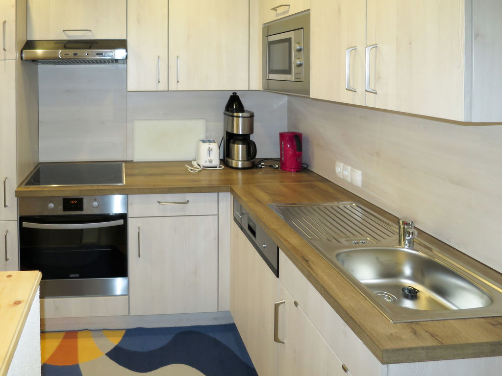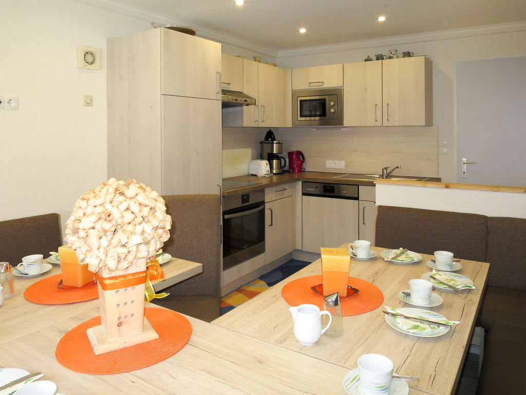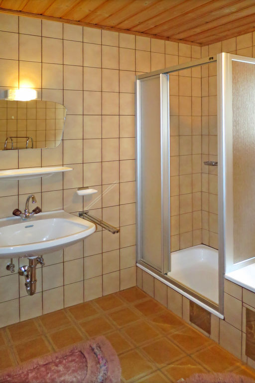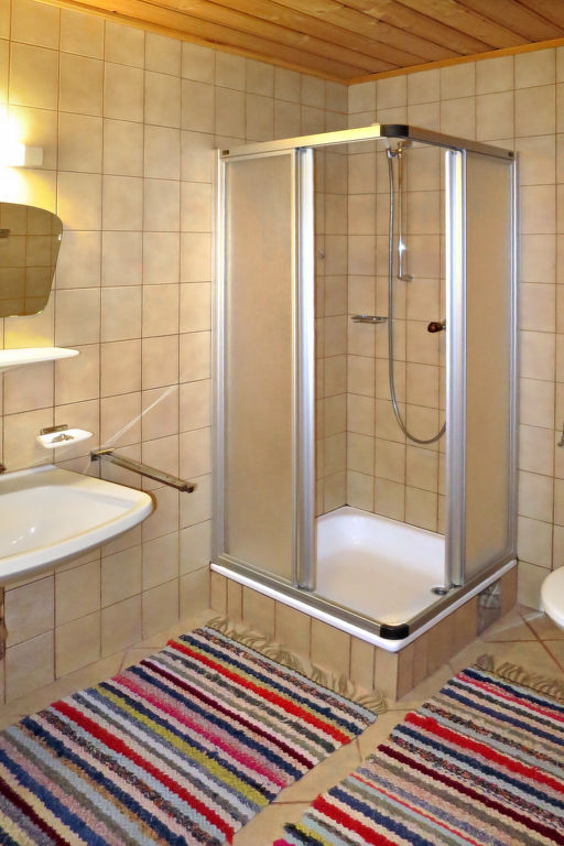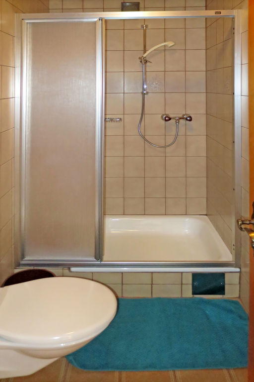 5-Zimmer-Wohnung, 2 Etagen (Verbindung über das Treppenhaus), ca. 85 m². Separater Zugang ins Erdgeschoss: Wohnküche (4 Ceranfelder, Backofen, Mikrowelle, Geschirrspüler, Kühl-/Gefrierkombination, Kaffeemaschine, Wasserkocher, Toaster) mit Essplatz (Eckbank). Einzelzimmer. Dusche/WC. 1. Etage: Schlafzimmer mit Doppelbett, Einzelbett, Duschkabine, Waschbecken, Balkonausgang und Zugang zu Sep.WC. Schlafzimmer mit Doppelbett, Einzelbett, Waschbecken, Balkonausgang und Zugang zu Dusche/WC. Schlafzimmer mit Doppelbett, Einzelbett und Waschbecken. Dusche/WC. Bei Belegung mit weniger Personen als der maximalen Personenzahl stehen nicht alle Wohneinheiten zur Verfügung.