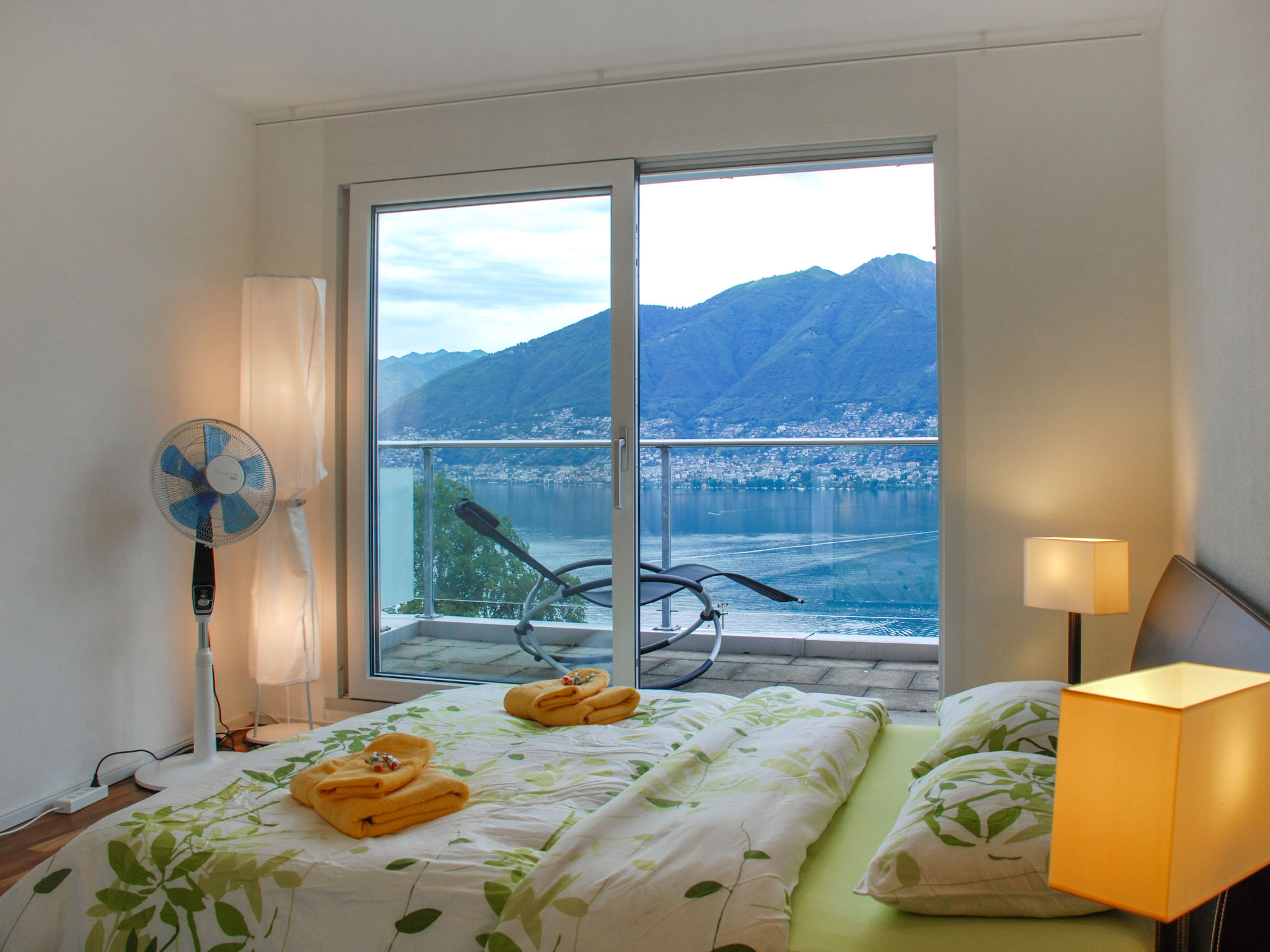 "Vista Lago Maggiore 1.floor left", 3-Zimmer-Wohnung 120 m2 auf 2 Stockwerken, Nordwestlage. Geräumig und hell, komfortabel und modern eingerichtet: offenes grosses Wohn-/Esszimmer mit Panoramafenster mit Esstisch und Kabel-TV (Flachbildschirm), DVD und DVD Sammlung vorhanden. Ausgang zur Terrasse. Offene Küche (Backofen, Geschirrspüler, 4 Glaskeramikherd Platten, Toaster, Wasserkocher, elektrische Kaffeemaschine, Kapseln für die Kaffeemaschine (Nespresso) extra). Sep. WC. Bodenheizung. Obergeschoss: (Wendeltreppe) 1 Doppelzimmer mit 1 Bett (90 cm, Länge 200 cm), 1 franz. Bett (140 cm, Länge 200 cm). Ausgang zum Balkon. 1 Doppelzimmer mit 1 Doppelbett (160 cm, Länge 200 cm). Ausgang zum Balkon. Bad/WC. Balkon 10 m2, Südwestlage, grosse Terrasse 32 m2 teilweise überdacht, Südwestlage. Terrassenmöbel, Gartengrill (mobil), Liegestühle (4). Herrliche Panoramasicht auf den See, die Berge und die Landschaft. Zur Verfügung: Bügeleisen, Kinderhochstuhl, Babybett bis 2 Jahre (extra), Haartrockner. Internet (Wireless LAN). Parkplatz (2 Autos) beim Haus. Bitte beachten: Nichtraucher-Unterkunft.