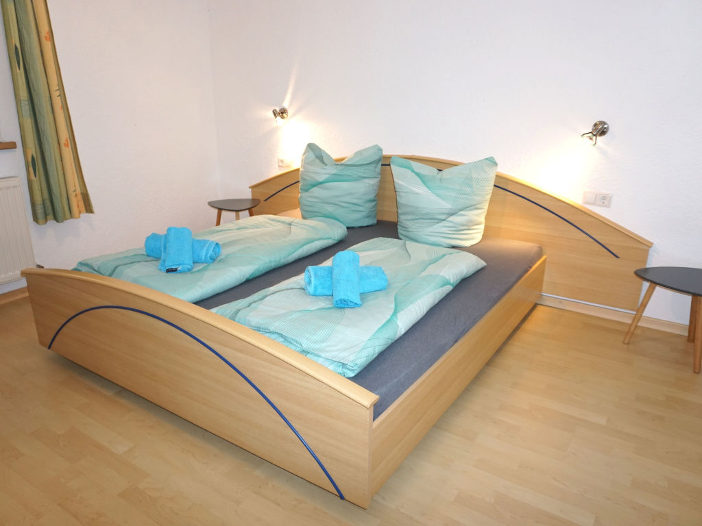 5-Zimmer-Haus. Eingang. Wohn-/Esszimmer mit Sat-TV. Ausgang zur Terrasse. Küche (Backofen, Geschirrspüler, 4 Glaskeramikherd Platten, Mikrowelle, elektrische Kaffeemaschine). Bad/Dusche/WC. Obergeschoss: 3 Doppelzimmer. 1 Zimmer mit 1 Doppelbett (120 cm, Länge 200 cm). Sep. WC.