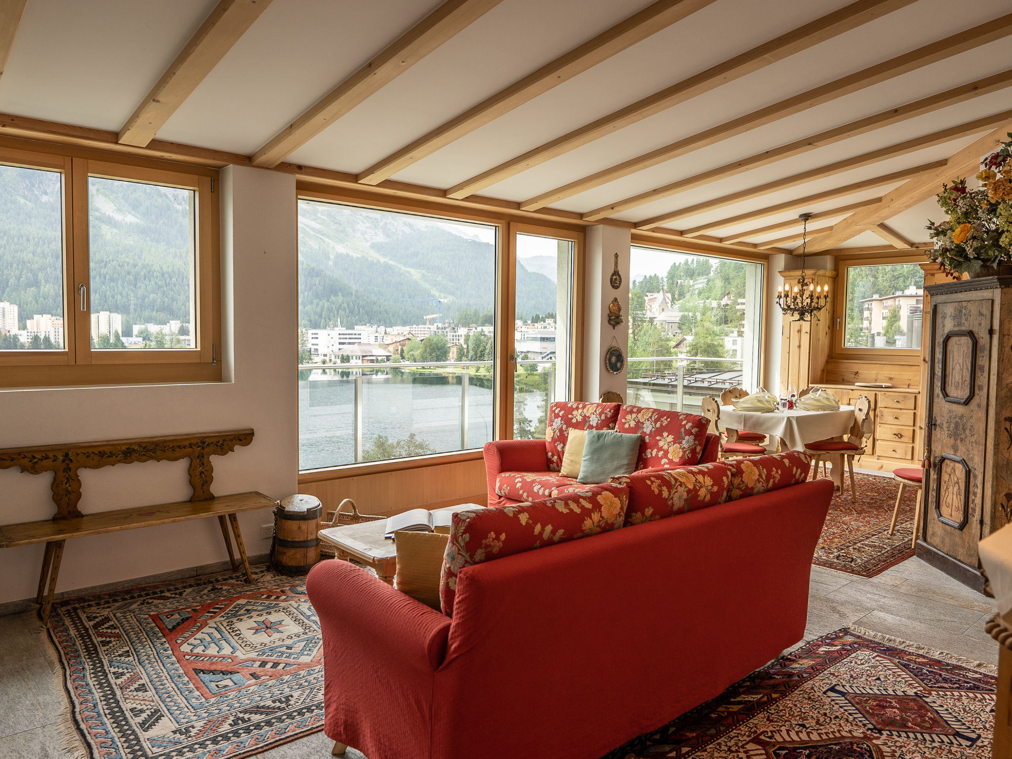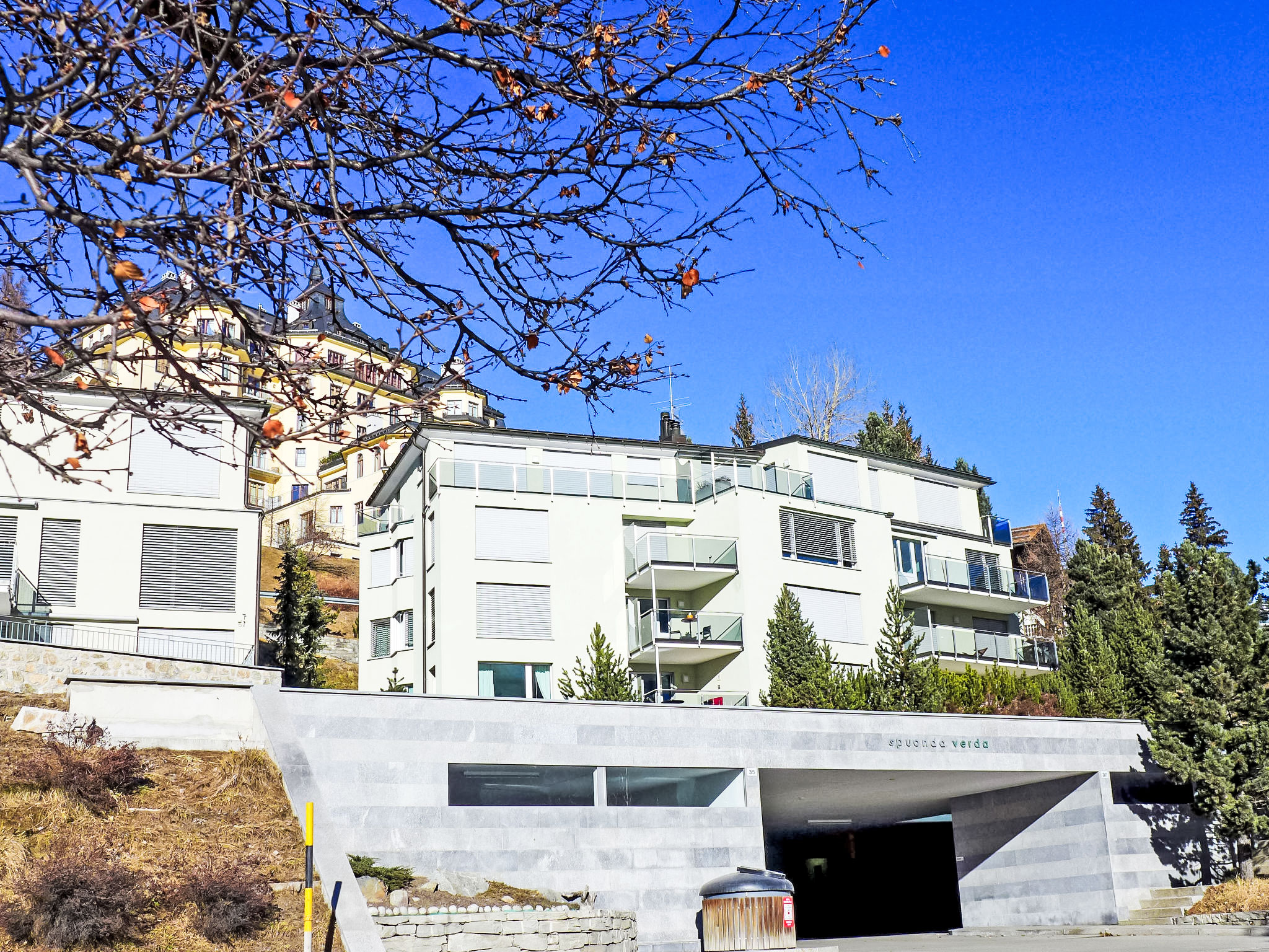 St. Moritz: Sehr komfortables Mehrfamilienhaus "Chesa Spuonda Verde", auf 4 Stockwerken, Baujahr 2002. Oberhalb von St. Moritz See, zentrale, sonnige Lage, 50 m vom See, 1.5 km vom Skigebiet. Im Hause: Fahrstuhl, Einstellraum für Fahrräder, Skiraum, Waschmaschine, Wäschetrockner (zur Mitbenutzung, extra), Trockenraum, Skischuhtrockner. Gemeinschaftsgarage Nr. 10. Einkaufsgeschäft, Supermarkt 500 m, Restaurant, Bar, Bäckerei 800 m, Fahrradverleih 950 m, Bushaltestelle "St. Moritz Bad, Reithalle" 450 m, Bahnstation 850 m, Hallenbad 1.3 km, Thermalbad "Heilbadzentrum St.Moritz" 1.5 km, See St. Moritzer See 50 m. Golfplatz (18 Loch) 6.1 km, Surfschule 5.9 km, Tennis 1.6 km, Tennishalle 1.6 km, Minigolf 1.3 km, Reitstall 3.5 km, Wanderwege ab Haus 50 m, Luftseilbahn 1.5 km, Skilift 1.5 km, Skipisten 1.5 km, Skiverleih 950 m, Skibushaltestelle 450 m, Skischule 1.3 km, Kinderskischule 1.3 km, Langlaufloipe 1.3 km, Eisfeld 600 m, Kinderspielplatz 1.4 km. Nahe gelegene Sehenswürdigkeiten: Segantini Museum 1.5 km, Engadiner Museum 1.3 km, Mili Weber-Haus 1.7 km, Olympia Bob Run mit Museum 1.9 km, Nietzsche Museum in Sils-Maria 10.2 km. Bekannte Skigebiete sind gut erreichbar: Corviglia Piz Nair 1.5 km, Corvatsch - Furtschellas 7.2 km, Diavolezza - Lagalb 18.5 km. Bekannte Seen in der Umgebung sind gut erreichbar: St. Moritzer See 50 m, Silvaplaner See 5.9 km, Silser See 10.2 km. Wandergebiete: Stazerwald & Stazersee, Corviglia Piz Nair, Muottas Muragl. Die Schlüsselübergabe findet bei der Agentur Interhome in St. Moritz Bad statt.