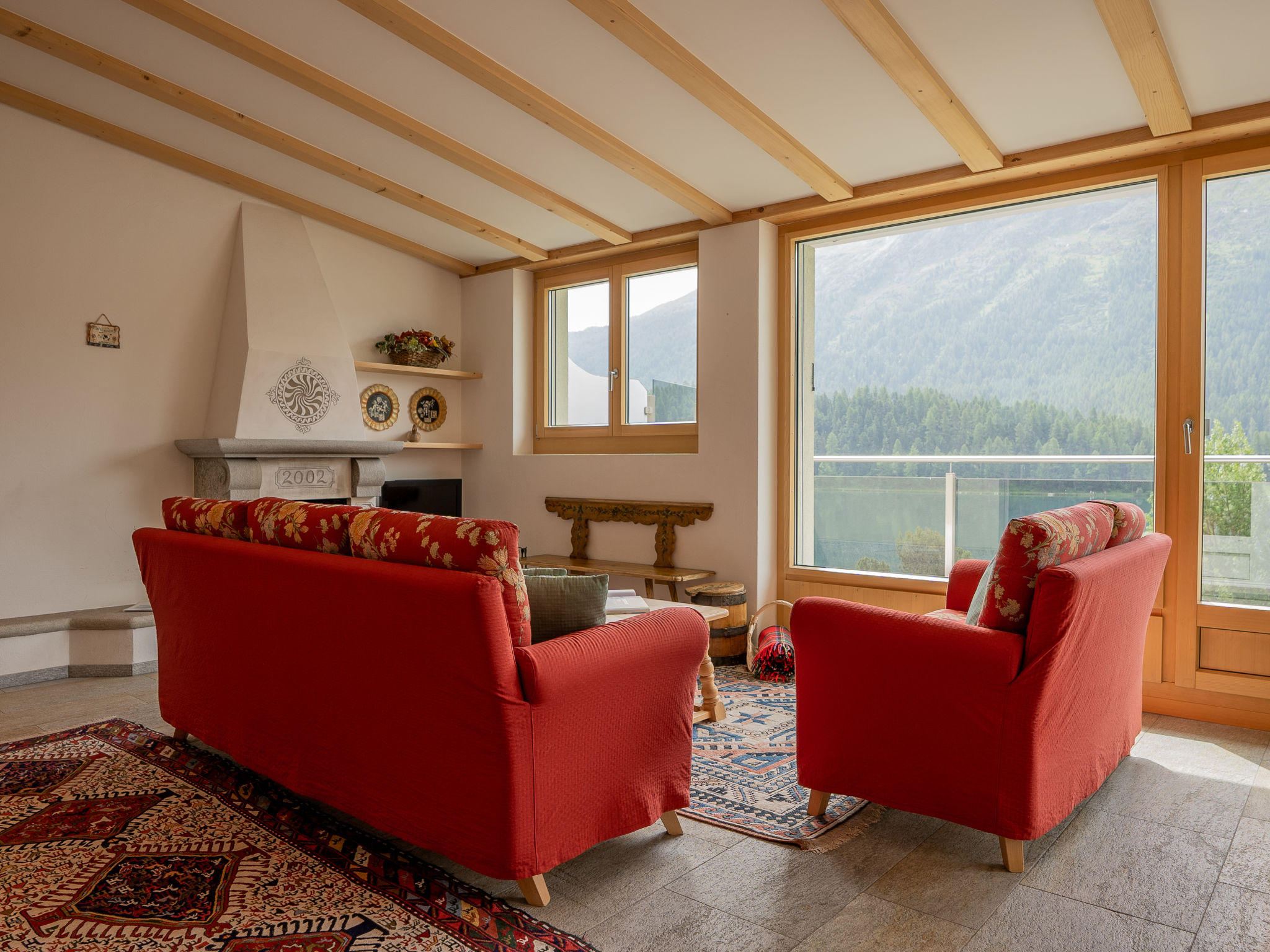"Chesa Spuonda Verde 1.7", 3-Zimmer-Wohnung 63 m2, im Dachgeschoss. Objekt geeignet für 2 Erwachsene + 2 Kinder. Hell, geschmackvoll und mit viel Holz eingerichtet: Wohn-/Esszimmer mit Panoramafenster mit TV (Flachbildschirm). Ausgang zur Terrasse, Richtung Süden. 1 Zimmer mit 1 Doppelbett (1 x 160 cm, Länge 200 cm), sep. WC. Ausgang zum Balkon. 1 Zimmer mit 2 Betten (80 cm, Länge 200 cm). Wohnküche (Backofen, Geschirrspüler, 4 Glaskeramikherd Platten, Toaster, Wasserkocher, elektrische Kaffeemaschine, Kapseln für die Kaffeemaschine (Nespresso) extra, Fondue Set (Chinoise)) mit Esstisch. Ausgang zur Terrasse. Bad/WC. Holzböden, Natursteinböden. Grosse Terrasse 25 m2. Liegestühle (2). Herrliche Panoramasicht auf den See und die Berge. Zur Verfügung: Haartrockner. Internet (Wireless LAN, gratis). Garage Nr. 10 (1 Auto), Höhe 250 cm, Breite 350 cm. Bitte beachten: Nichtraucher-Unterkunft. :Kamin darf nicht genutzt werden.