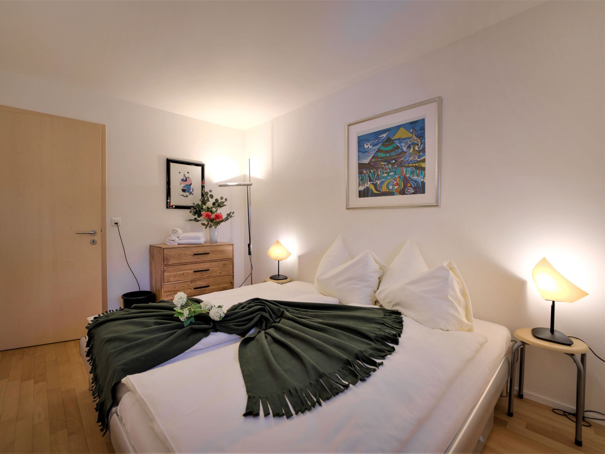 "Chesa Lej", 3-Zimmer-Wohnung 88 m2. Hell, komfortabel und modern eingerichtet: offenes Wohn-/Esszimmer mit Schwedenofen, TV, Radio und DVD. Ausgang zum Balkon, Richtung Süden. 1 Zimmer mit 1 Doppelbett (2 x 90 cm, Länge 200 cm). 1 Zimmer mit 2 Betten (90 cm, Länge 200 cm). Wohnküche (Backofen, Geschirrspüler, 4 Glaskeramikherd Platten, Toaster, Wasserkocher, elektrische Kaffeemaschine, Racletteofen, Fondue Set (Chinoise, Käse)). Bad/WC, Dusche/WC. Bodenheizung. Holzböden. Balkon 14 m2. Balkonmöbel. Sehr schöne Sicht auf die Berge und die Landschaft. Zur Verfügung: Waschmaschine, Wäschetrockner, Bügeleisen, Haartrockner. Internet (Wireless LAN, gratis). Parkplatz Nr. M2 (überdacht), Höhe 210 cm, Breite 215 cm. Bitte beachten: nicht geeignet für Kinder unter 12 Jahren. Nichtraucher-Unterkunft, Nichtraucher-Haus. Kein Fahrstuhl. :E-Piano, wenig Schrankfläche, Zweibettzimmer verfügt nur über ein kleines Fenster.