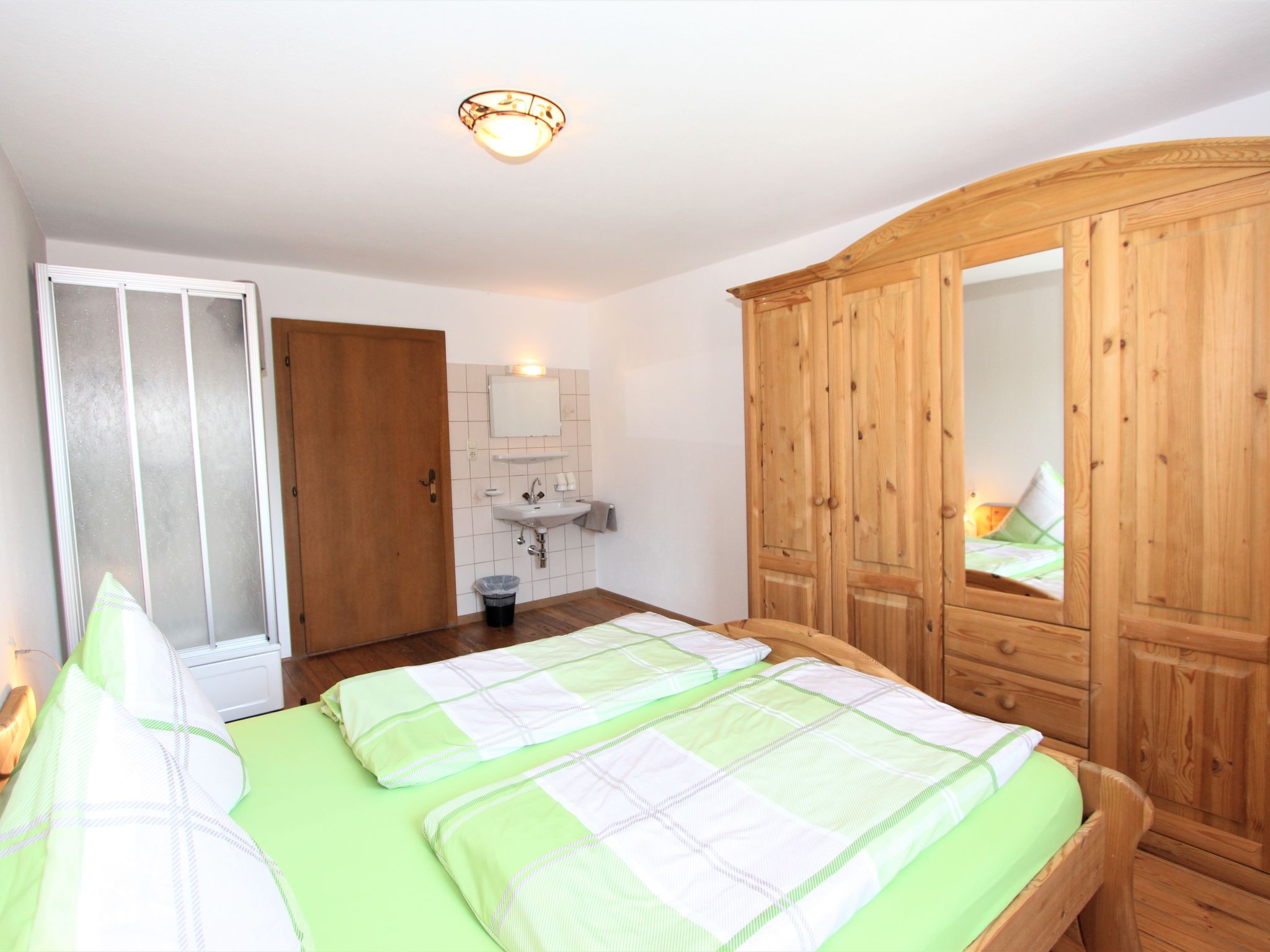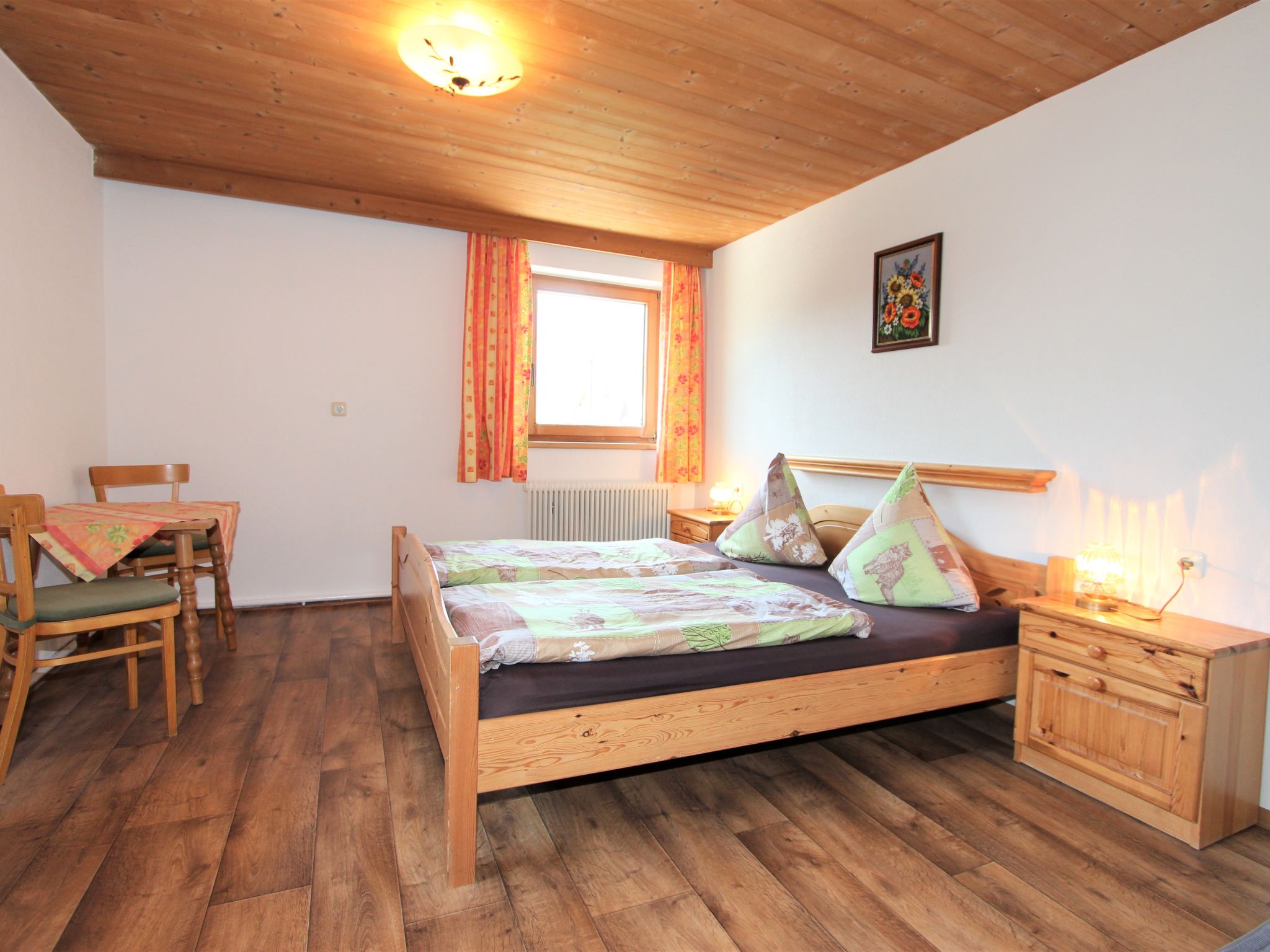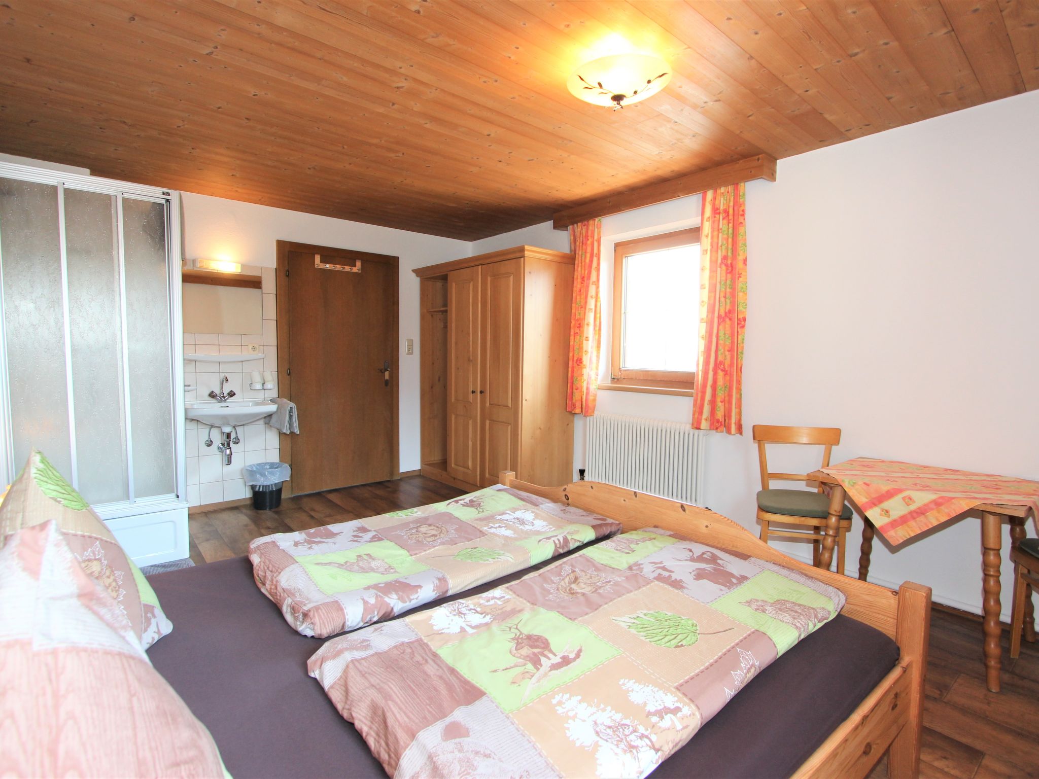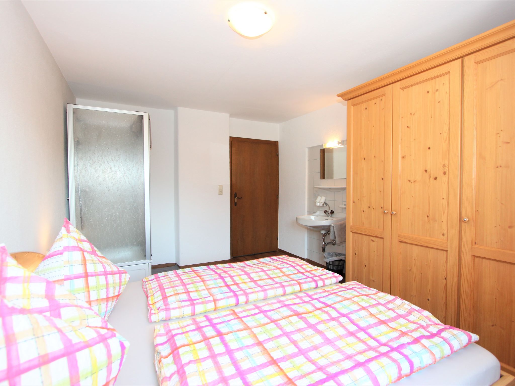 5-Zimmer-Wohnung 120 m2 im 1. Stock. Objekt geeignet für 8 Erwachsene. Geräumig, schön und gemütlich eingerichtet: grosser Eingang. Grosses Wohnzimmer mit Esstisch und Sat-TV (Flachbildschirm). 4 Doppelzimmer, jedes Zimmer mit Waschbecken und Dusche. Grosse Wohnküche (Backofen, Geschirrspüler, 4 Glaskeramikherd Platten, Mikrowelle) mit 1 Doppeldiwanbett und Esstisch. Ausgang zum Balkon. Sep. WC. Das Wohnzimmer ist eine Bauernstube. 2 grosse Balkone, Westlage und Ostlage. Balkonmöbel. Schöne Sicht auf die Berge und die Landschaft. Zur Verfügung: Internet (Wireless LAN, gratis). Geeignet für Familien. 2 Haustiere/Hunde erlaubt. Achtug: Die Zusatzbetten sind für Kinder bis 12 Jahre geeignet.