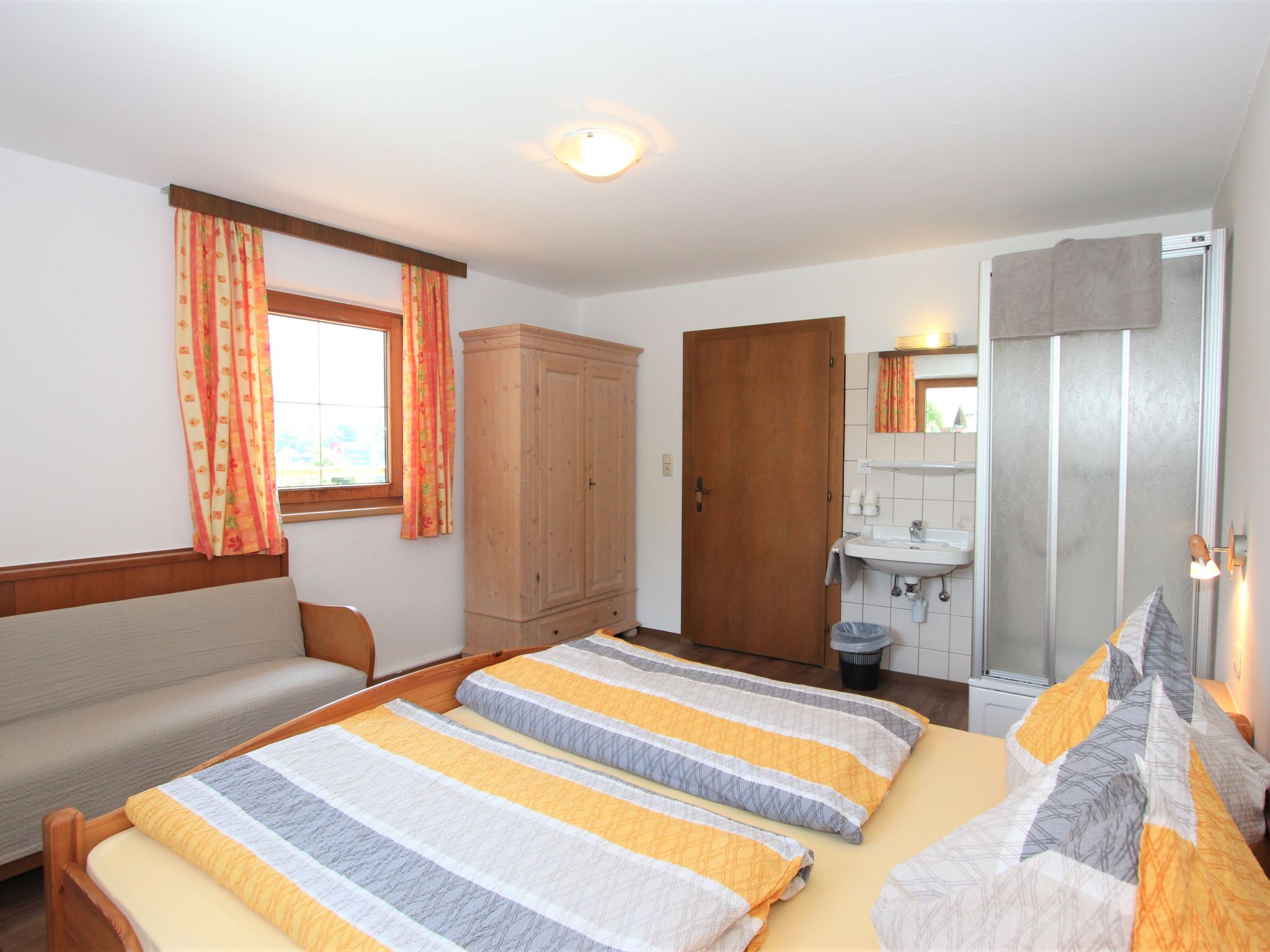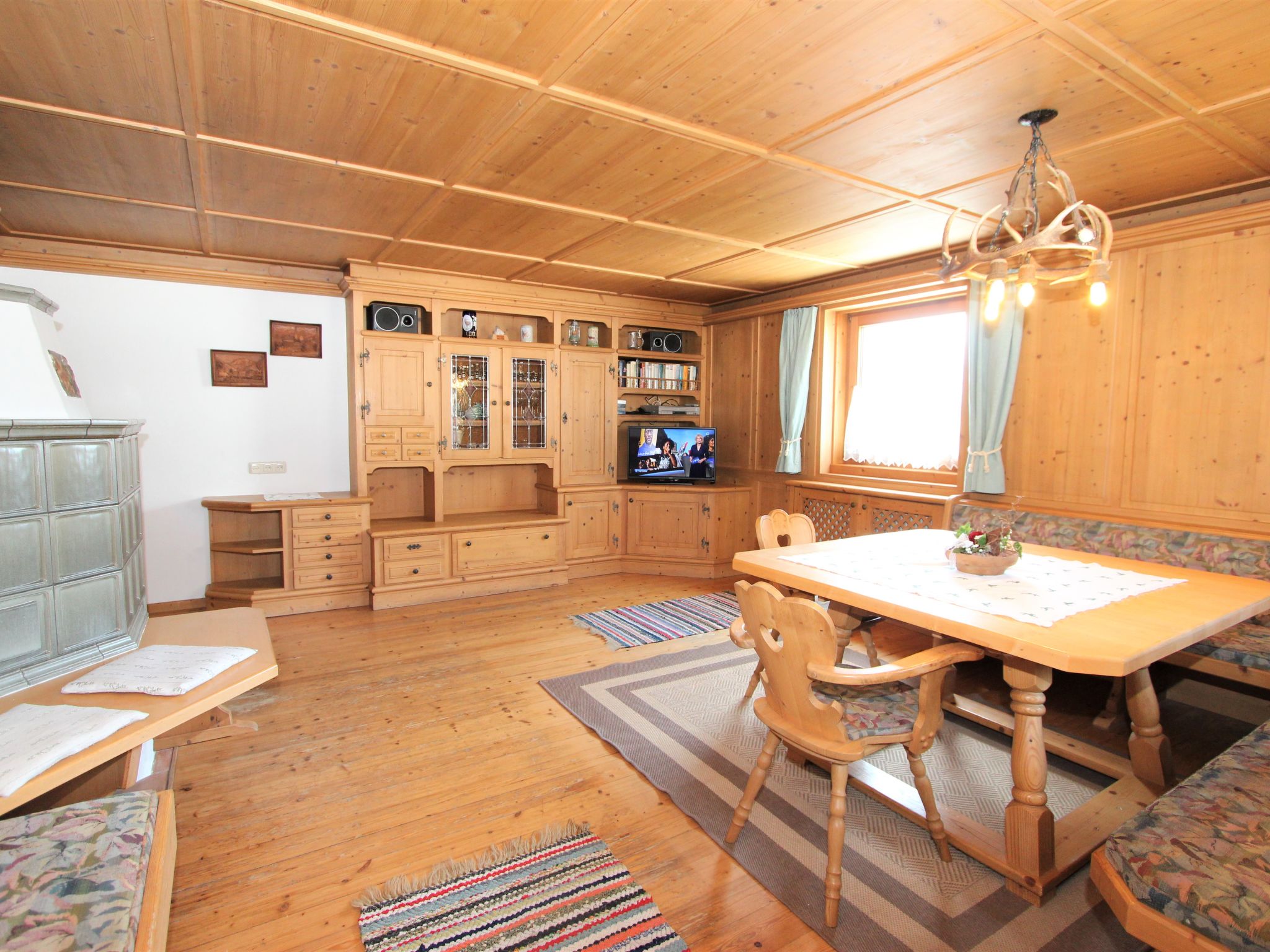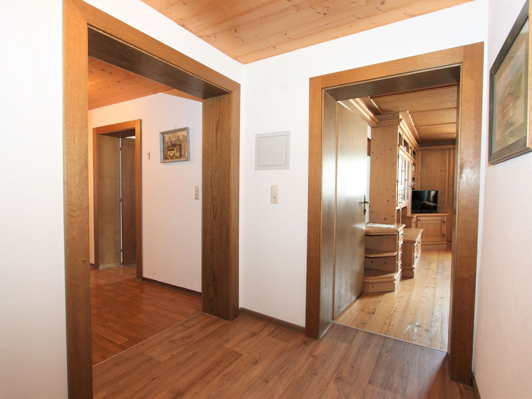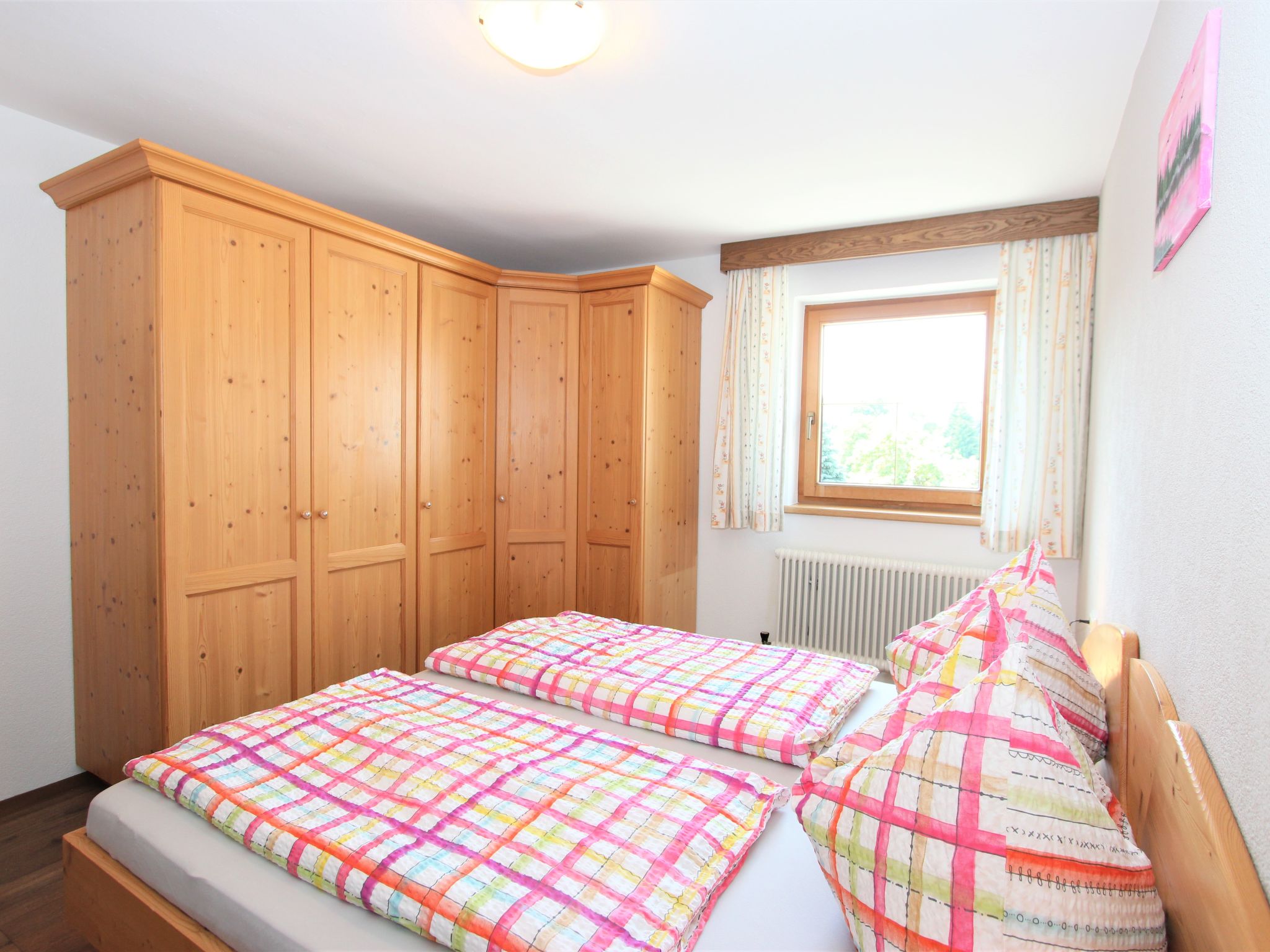 5-Zimmer-Wohnung 120 m2 im 1. Stock. Objekt geeignet für 8 Erwachsene. Geräumig, schön und gemütlich eingerichtet: grosser Eingang. Grosses Wohnzimmer mit Esstisch und Sat-TV (Flachbildschirm). 4 Doppelzimmer, jedes Zimmer mit Waschbecken und Dusche. Grosse Wohnküche (Backofen, Geschirrspüler, 4 Glaskeramikherd Platten, Mikrowelle) mit 1 Doppeldiwanbett und Esstisch. Ausgang zum Balkon. Sep. WC. Das Wohnzimmer ist eine Bauernstube. 2 grosse Balkone, Westlage und Ostlage. Balkonmöbel. Schöne Sicht auf die Berge und die Landschaft. Zur Verfügung: Internet (Wireless LAN, gratis). Geeignet für Familien. 2 Haustiere/Hunde erlaubt. Achtug: Die Zusatzbetten sind für Kinder bis 12 Jahre geeignet.