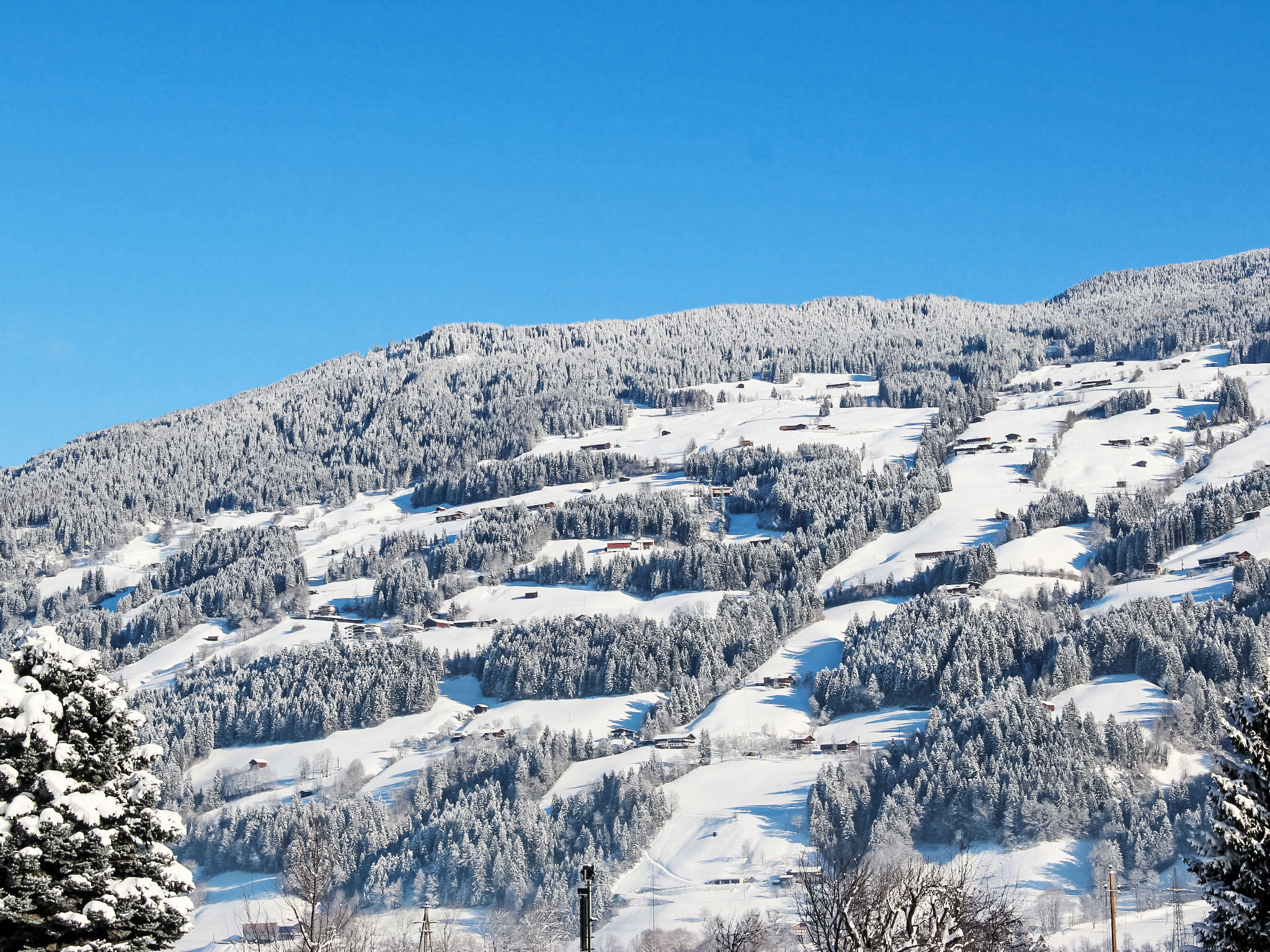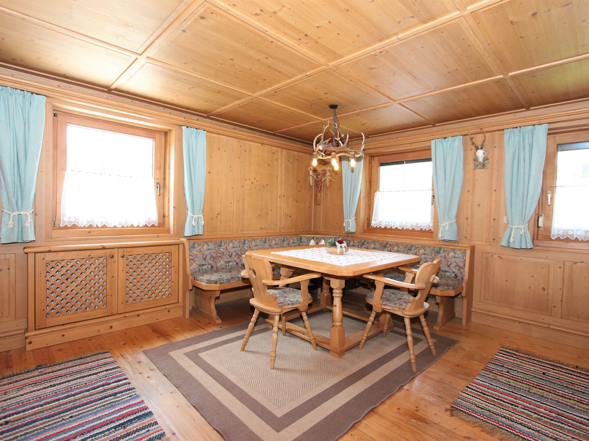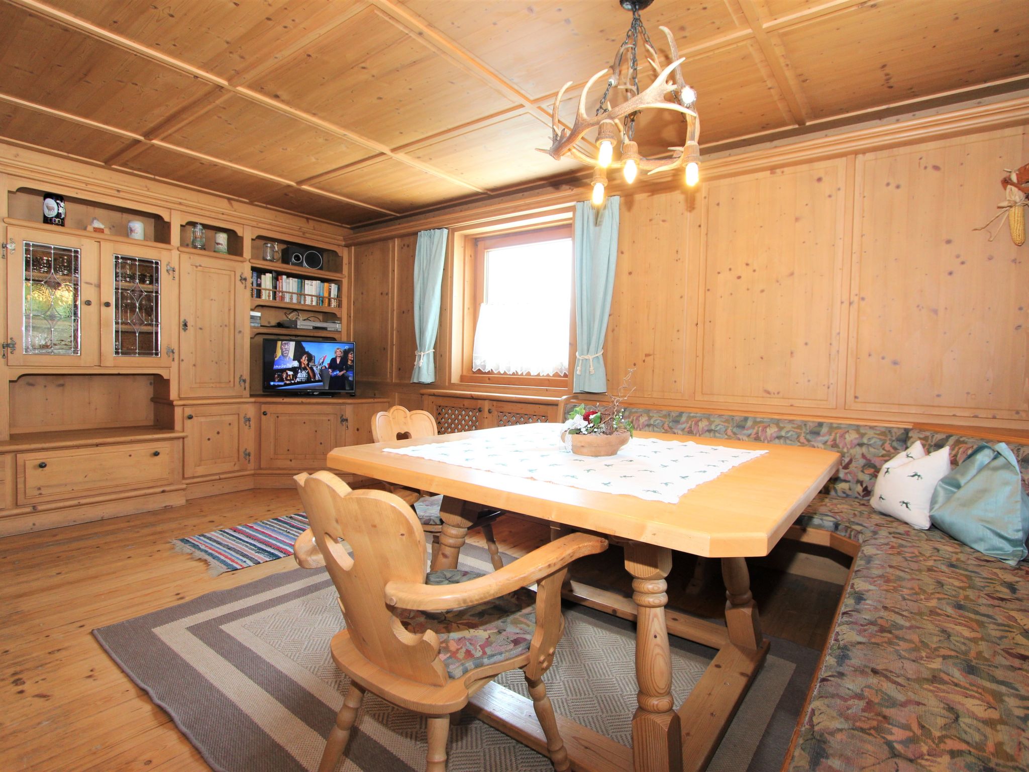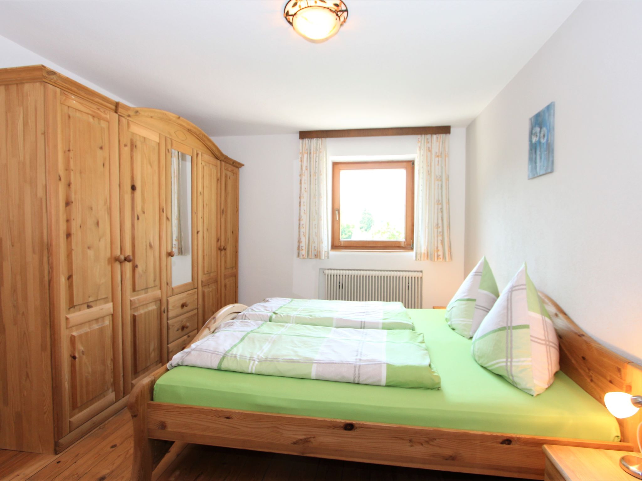 5-Zimmer-Wohnung 120 m2 im 1. Stock. Objekt geeignet für 8 Erwachsene. Geräumig, schön und gemütlich eingerichtet: grosser Eingang. Grosses Wohnzimmer mit Esstisch und Sat-TV (Flachbildschirm). 4 Doppelzimmer, jedes Zimmer mit Waschbecken und Dusche. Grosse Wohnküche (Backofen, Geschirrspüler, 4 Glaskeramikherd Platten, Mikrowelle) mit 1 Doppeldiwanbett und Esstisch. Ausgang zum Balkon. Sep. WC. Das Wohnzimmer ist eine Bauernstube. 2 grosse Balkone, Westlage und Ostlage. Balkonmöbel. Schöne Sicht auf die Berge und die Landschaft. Zur Verfügung: Internet (Wireless LAN, gratis). Geeignet für Familien. 2 Haustiere/Hunde erlaubt. Achtug: Die Zusatzbetten sind für Kinder bis 12 Jahre geeignet.