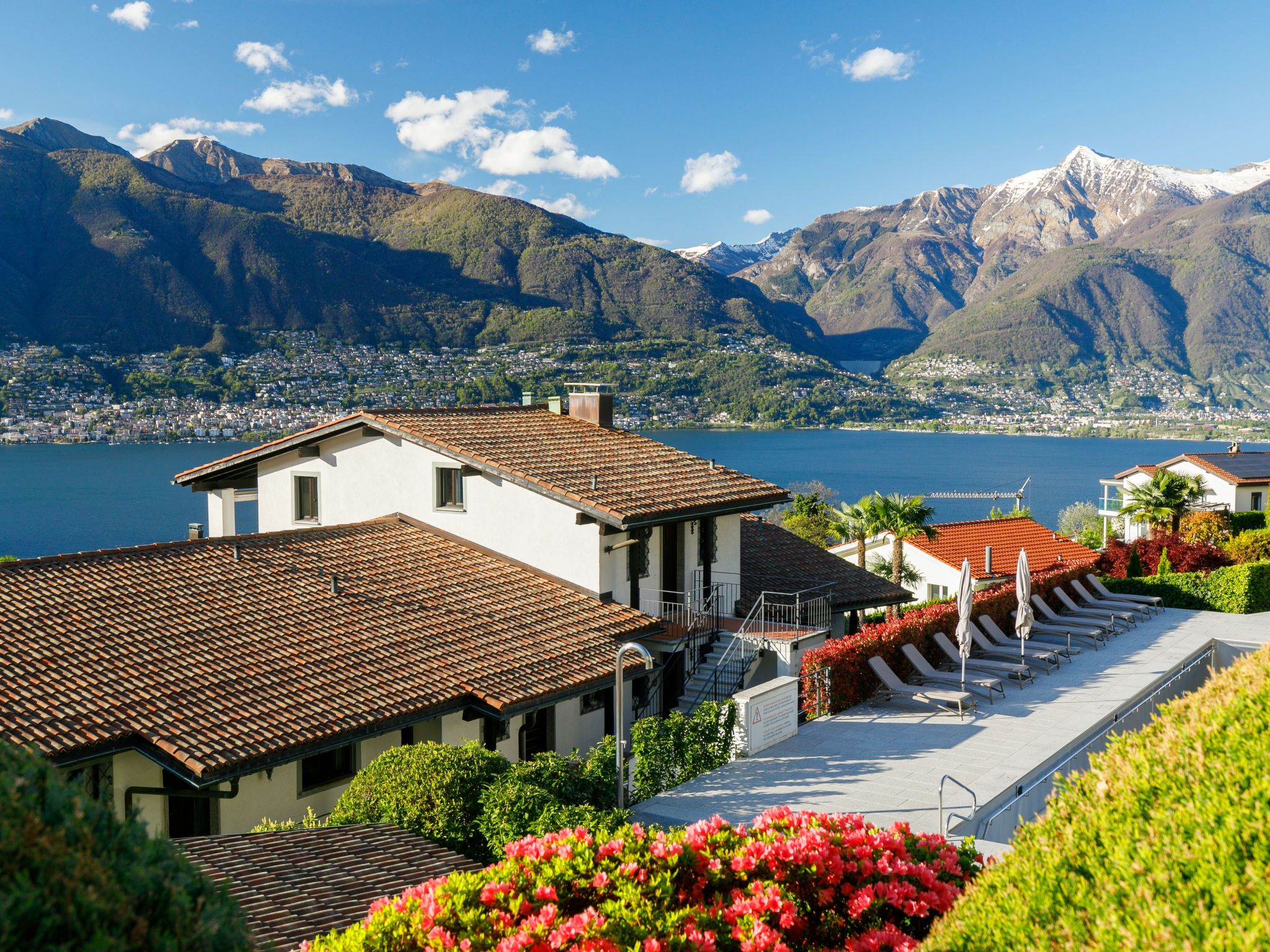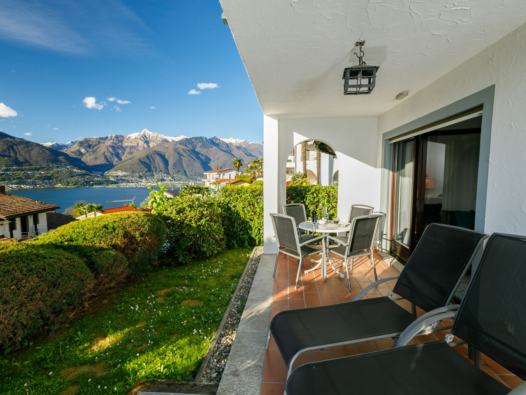 Piazzogna 19 km von Locarno: Moderne, komfortable Residenz "Miralago (Utoring)", umgeben von Bäumen und Wiesen. 4 Häuser in der Residenz. 39 Wohnungen in der Residenz. Oberhalb von Vira (3 km), im Bezirk Gambarogno, ruhige, sonnige, erhöhte Lage am Hang, direkt am Waldrand, 3 km vom See, in einer Sackgasse, Richtung Südosten. Zur Mitbenutzung: Liegewiese, Schwimmbad eckig beheizt (170 - 170 cm tief, saisonale Verfügbarkeit: 01.Apr.-31.Okt.). Aussendusche, Terrasse, Gartenmöbel. In der Anlage: Empfang, Aufenthaltsraum, Wireless LAN, Zentralheizung, Waschmaschine (zur Mitbenutzung, extra). Brötchenservice. Zufahrt bis zum Haus zum Grundstück. Parkplatz. Lebensmittelgeschäft, Restaurant 300 m, Bushaltestelle 50 m. Minigolf 4.5 km, Wanderwege ab Haus 100 m. Nahe gelegene Sehenswürdigkeiten: Parco Botanico, Piazzogna 300 m, Mercato Luino IT, Mercato Ponte Tresa IT, Bellinzona Unesco-Mercato, Swissminiature, Melide, Schokomuseum, Caslano. Bekannte Seen in der Umgebung sind gut erreichbar: Lago Maggiore, Lago di Lugano, Lago di Como, Lago Orta. Wandergebiete: Gambarogno, Indemini, Monte Tamaro und Splash and SPA, Rivera, Locarno - Ascona Cardada. Die vier typischen Tessiner Häuser verfügen über einen herrlichen Rundblick über den See. Pro Wohnung ist 1 Parkplatz gratis, jeder weitere kostet CHF 35.00/Woche. Wichtig, Bitte beachten: Der Pool ist unbeaufsichtigt und die Benützung erfolgt auf eigene Gefahr. Die Aufsichtspflicht für Kinder muss durch die Eltern wahrgenommen werden.