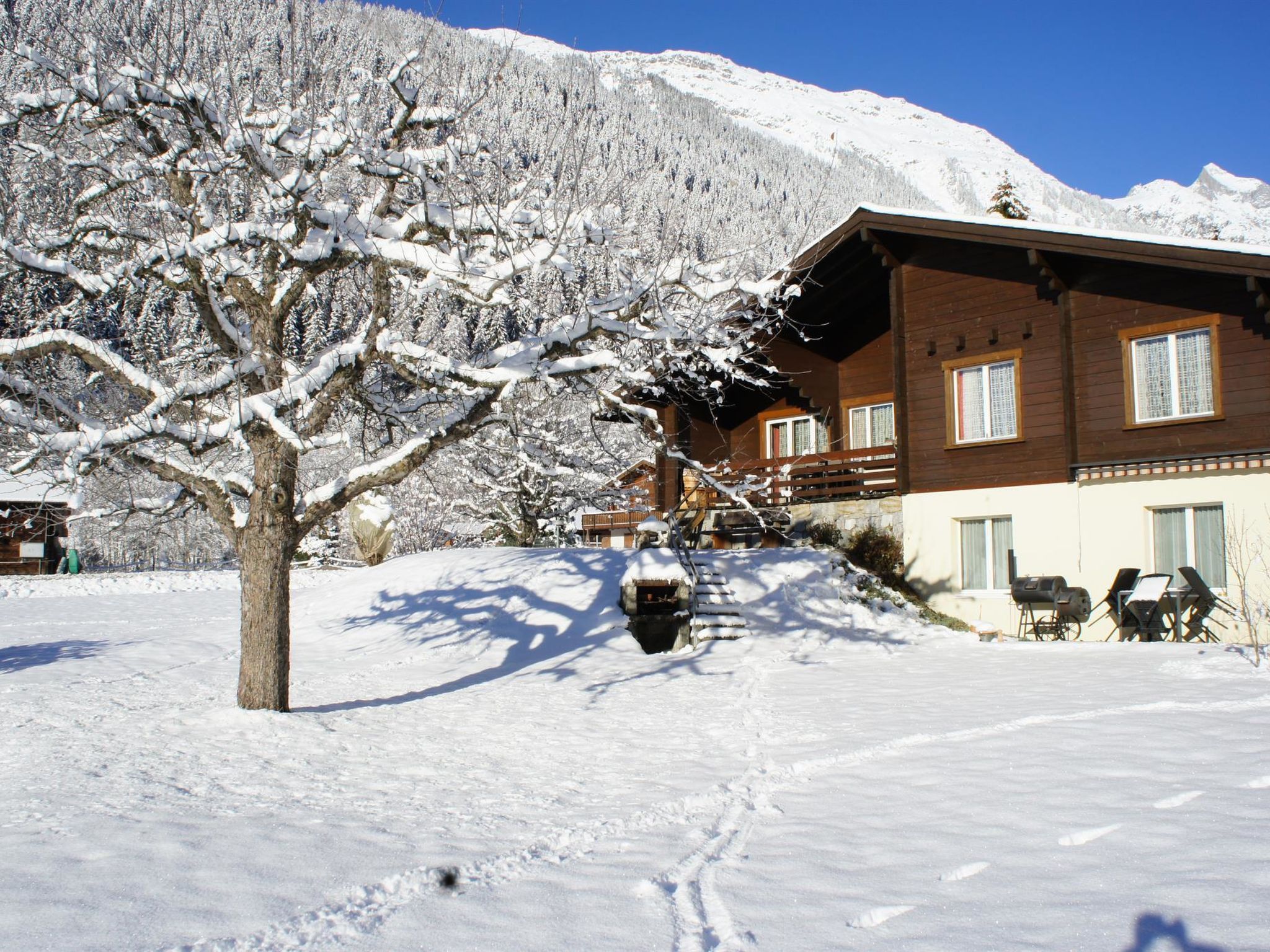 50 m2. Weitere Angaben des Anbieters: Die Ferienwohnung im Haus Sweda ist eine gemütliche und heimelige 2-Zimmerwohnung im Parterre eines Einfamilienhauses. Die Wohnung liegt in einer sehr schönen, ruhigen und sonnigen Lage inmitten von Fieschertal. Dies ist der perfekte Ausgangspunkt für viele schöne Wanderungen und Bike-Touren sowie unvergessliche Ski- bzw. Langlauftage in der Aletsch Arena und im Goms. Vor dem Haus liegt ein idyllischer Gartensitzplatz mit Grillmöglichkeit. Direkt hinter dem Haus befindet sich der Parkplatz. Die Busstation "Wichel" nach Fiesch und zur Luftseilbahn Fiesch-Eggishorn erreichen Sie zu Fuss in ca. 1 Minute. Für Mountainbiker stellen wir auf Anfrage gerne zwei Fahrräder von Bike-Store Schweizer mit 25% Rabatt zur Verfügung. Im Winter haben Sie die Möglichkeit, mit den hauseigenen Schneeschuhen das Winterwunderland rundum das Fieschertal zu erkunden.