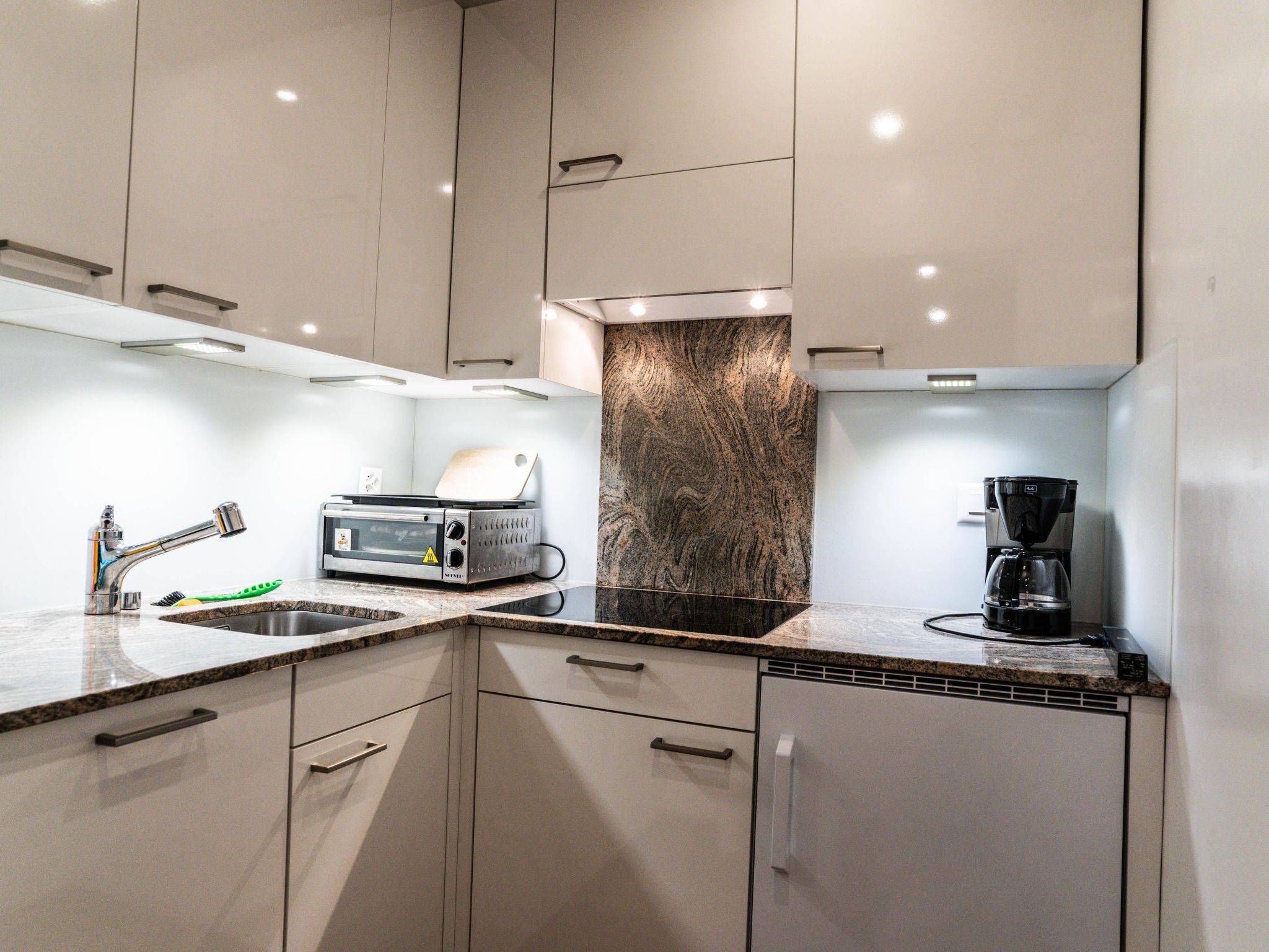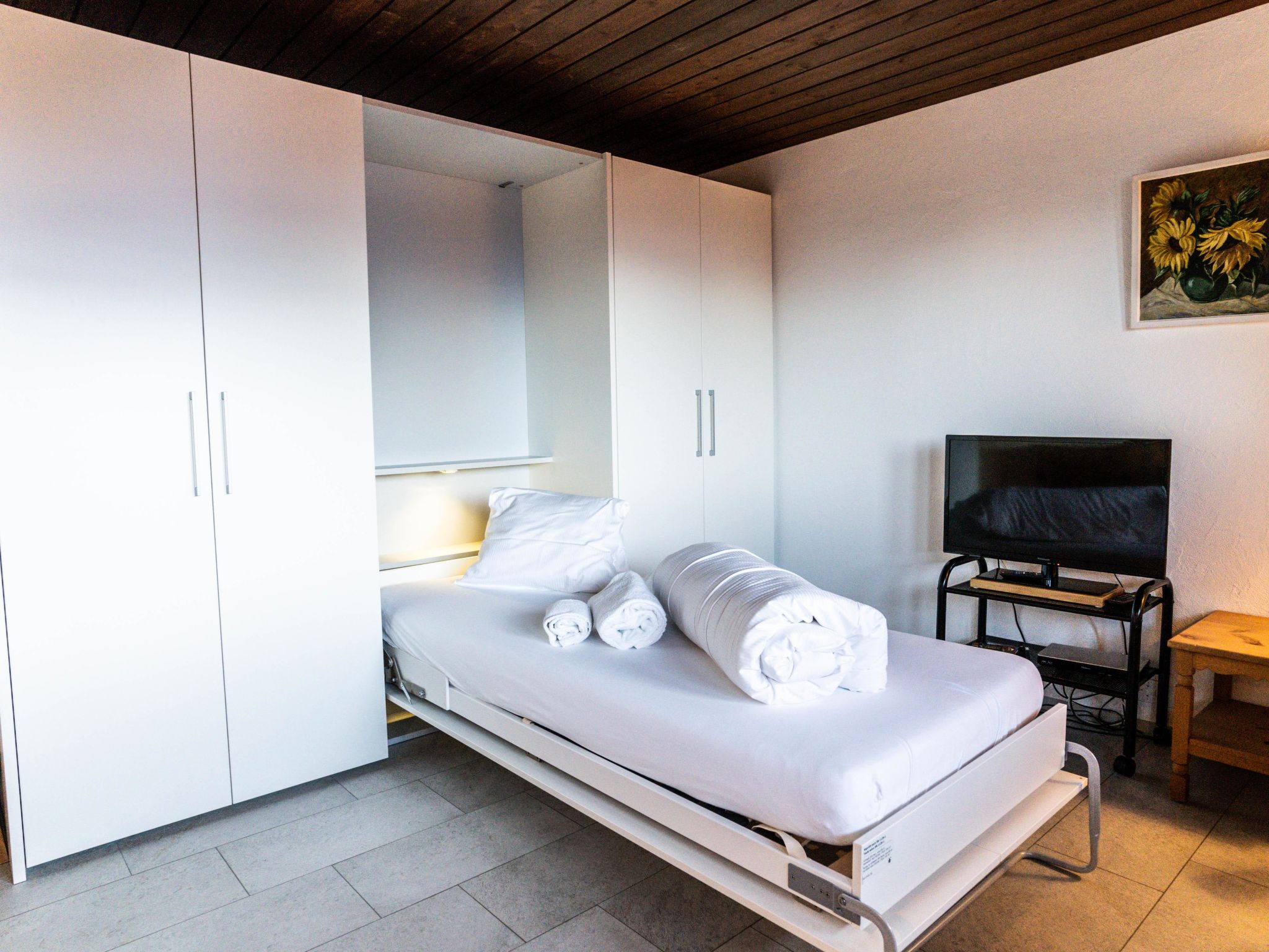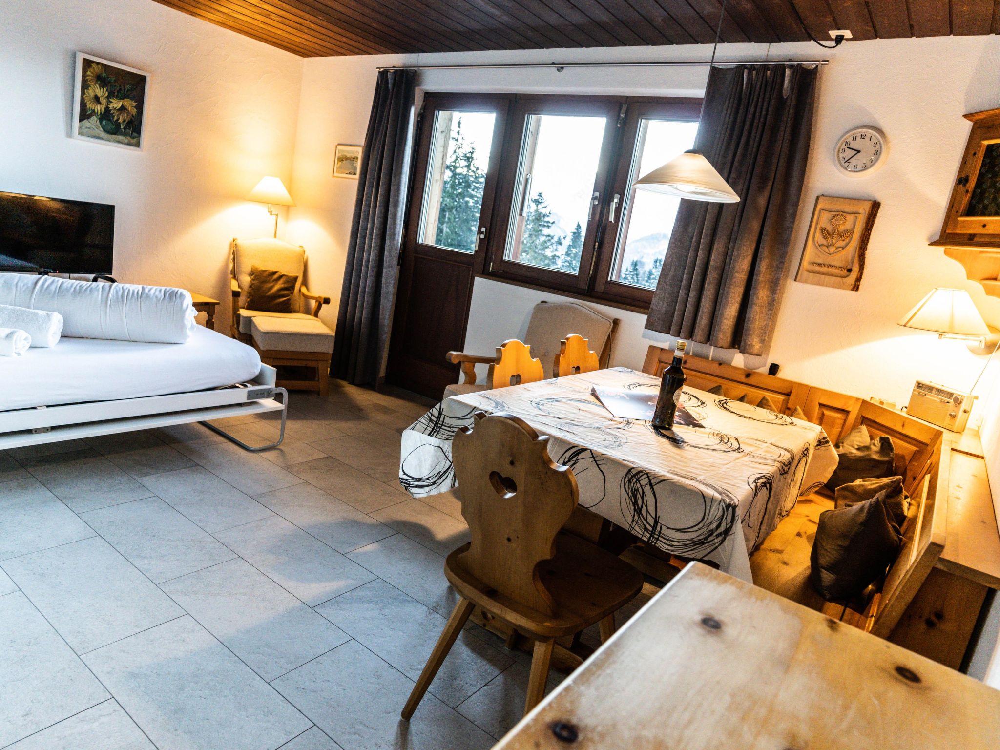 Eine 2 1/2 Zimmerwohnung im 3. OG. bis 4 Personen. Die Wohnung verfügt über 1 Schlafzimmer mit Doppelbett, 1 Wohn-schlafzimmer mit 2 Klappbetten, moderne Küche mit Geschirrspühler, WC-Douche. Süd Balkon mit Tisch und Stühlen. Gratis W-Lan und Satelliten TV. Waschküche im Keller. Der Ski Raum ist mit Schuhtrocknern ausgestattet. Wäschekarten können in unserem Geschäft im Parterre bezogen werden. Wir offerieren Ihnen in unseren Sportgeschäften Intersport bürcherAlpin 10 % auf die Mietartikel. Neu: Hauseigene Skischule bürcherAlpin mit ausgebildeten Skilehrern.