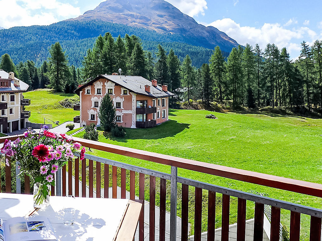 Pontresina 7 km von St. Moritz: Schönes, alleinstehendes, komfortables Mehrfamilienhaus "Chesa Vadret", auf 3 Stockwerken, Baujahr 1998, umgeben von Wiesen. Am Ortsrand, 2 km vom Zentrum von Pontresina, im Bezirk Muragl, ruhige, sonnige Lage am Hang, in einer Sackgasse, im Grünen. Im Hause: Waschmaschine, Wäschetrockner (zur Mitbenutzung, extra). Gemeinschaftsgarage. Einkaufsgeschäft 1 km, Supermarkt 1.8 km, Restaurant 1 km, Bäckerei 1 km, Café 1.8 km, Fahrradverleih 2.1 km, Bushaltestelle "Pontresina, Godin" 500 m, Bahnstation 2.5 km, Hallenbad 2.1 km, See St. Moritzer See 6 km. Golfplatz (18 Loch) 4.3 km, Surfschule 15 km, Tennis 1.1 km, Tennishalle 7.4 km, Minigolf 7.2 km, Reitstall 2.7 km, Wanderwege ab Haus 20 m, Radweg 500 m, Luftseilbahn 4.4 km, Skilift 2 km, Skiverleih 2.1 km, Skischule 1.8 km, Kinderskischule 1.8 km, Schlittelbahn 1.3 km, Langlaufloipe 500 m, Eisfeld 1 km, Kinderspielplatz 1 km. Nahe gelegene Sehenswürdigkeiten: Museum Alpin 1.9 km, Kirche St. Maria 2.6 km, Alp-Schaukäserei Morteratsch (Sommer) 8 km, Segantini Museum in St. Moritz 7.3 km, Bernina Express UNESCO Welterbe. Bekannte Skigebiete sind gut erreichbar: Corviglia Piz Nair 4.4 km, Corvatsch - Furtschellas 13 km, Diavolezza - Lagalb 14 km. Bekannte Seen in der Umgebung sind gut erreichbar: St. Moritzer See 6 km, Silvaplaner See 11.6 km, Silser See 15.5 km. Wandergebiete: Stazerwald & Stazersee, Muottas Muragl, Val Roseg & Val Morteratsch. Bitte beachten: Be- und Entladen am Ferienhaus möglich. Die Schlüsselübergabe findet bei der Agentur Interhome in St. Moritz statt, 7 km.