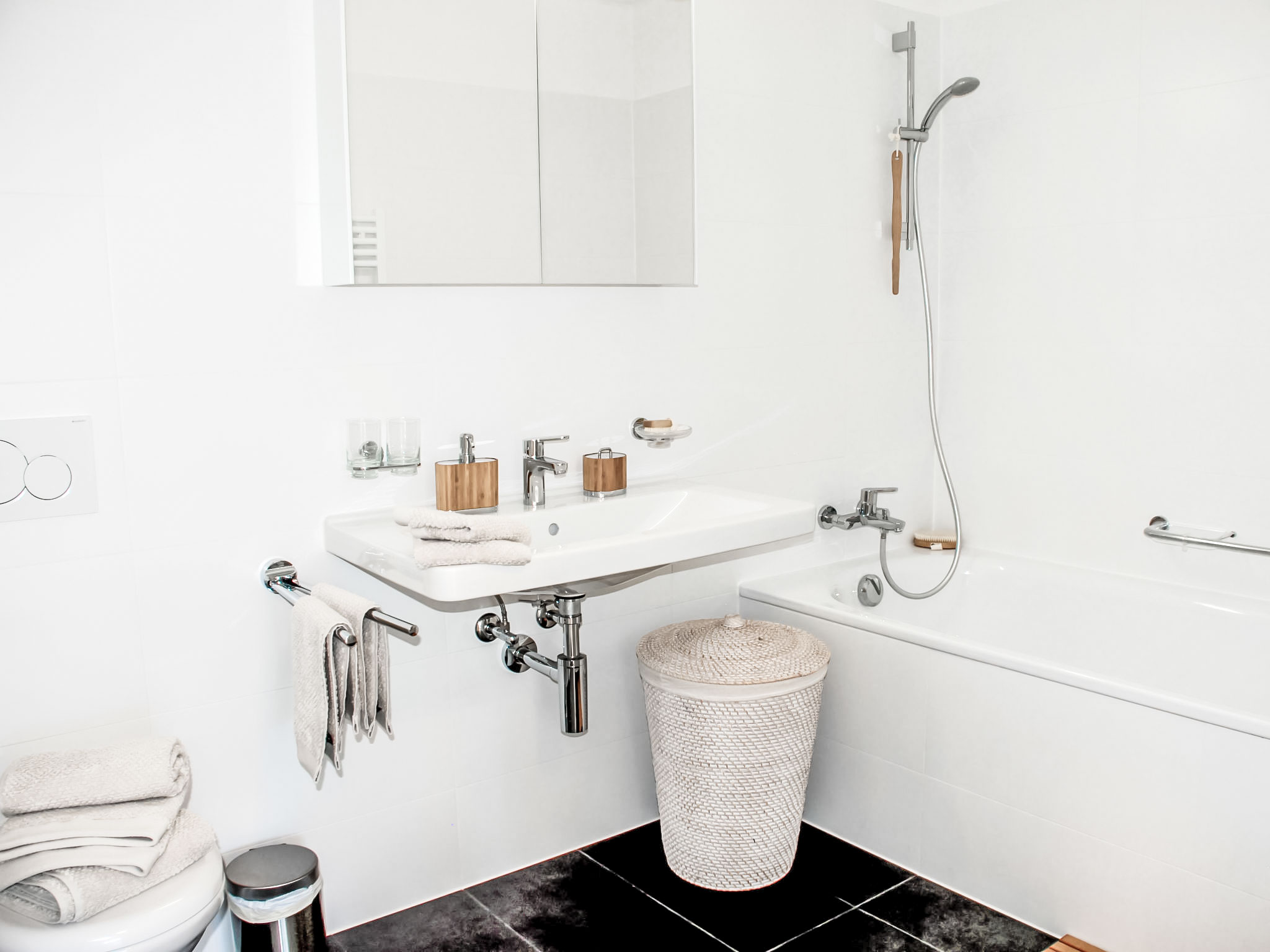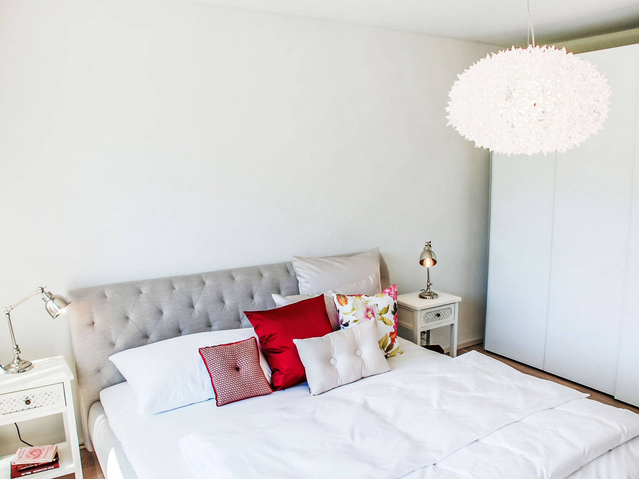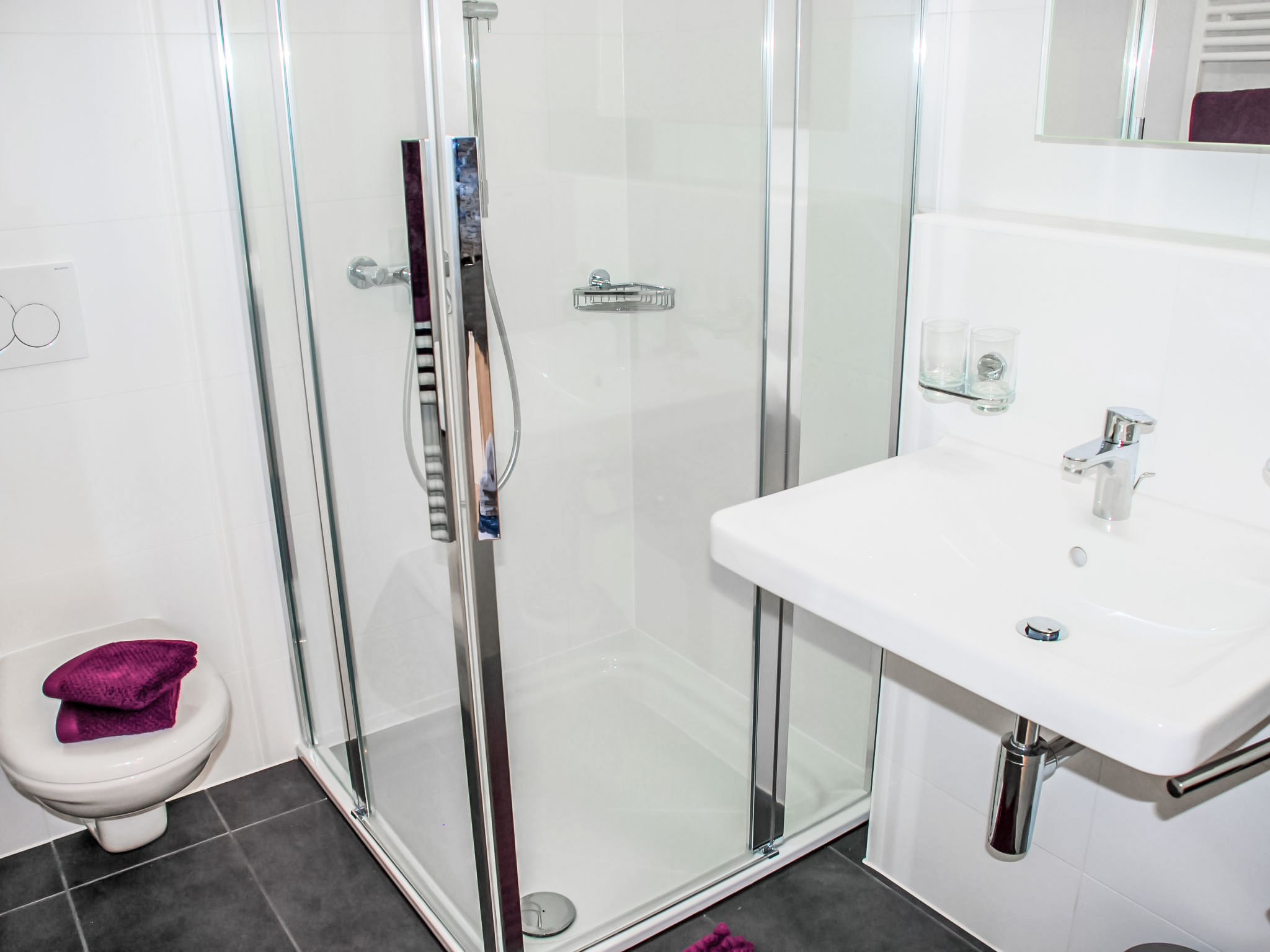 "LaVille B-2-3", 3-Zimmer-Wohnung 95 m2 im 2. Stock, Südwestlage. Geräumig und hell, modern und geschmackvoll eingerichtet: offenes grosses Wohn-/Esszimmer mit Sat-TV und Flachbildschirm. 1 Doppelzimmer mit 1 Doppelbett (2 x 90 cm, Länge 200 cm). 1 Zimmer mit 2 Betten (90 cm, Länge 200 cm). Grosse, offene Küche (Backofen, Geschirrspüler, 4 Induktionskochplatten, Tiefkühler, elektrische Kaffeemaschine, Kapseln für die Kaffeemaschine (Nespresso) extra) mit Esstisch. Ausgang zum Balkon. Bad/WC, Dusche/WC. Bodenheizung. Balkon 12 m2, Südlage und Westlage. Balkonmöbel, Liegestühle (1). Sicht auf die Berge und die Landschaft. Zur Verfügung: Waschmaschine, Wäschetrockner, Bügeleisen, Kinderhochstuhl, Babybett bis 2 Jahre (extra), Haartrockner. Internet (Wireless LAN, gratis). Parkplatz Nr. 46, Höhe 210 cm, Breite 230 cm. Bitte beachten: Nichtraucher-Unterkunft.