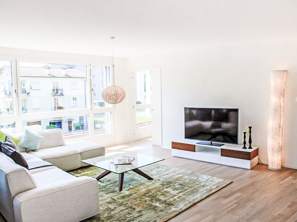 "LaVille B-2-3", 3-Zimmer-Wohnung 95 m2 im 2. Stock, Südwestlage. Geräumig und hell, modern und geschmackvoll eingerichtet: offenes grosses Wohn-/Esszimmer mit Sat-TV und Flachbildschirm. 1 Doppelzimmer mit 1 Doppelbett (2 x 90 cm, Länge 200 cm). 1 Zimmer mit 2 Betten (90 cm, Länge 200 cm). Grosse, offene Küche (Backofen, Geschirrspüler, 4 Induktionskochplatten, Tiefkühler, elektrische Kaffeemaschine, Kapseln für die Kaffeemaschine (Nespresso) extra) mit Esstisch. Ausgang zum Balkon. Bad/WC, Dusche/WC. Bodenheizung. Balkon 12 m2, Südlage und Westlage. Balkonmöbel, Liegestühle (1). Sicht auf die Berge und die Landschaft. Zur Verfügung: Waschmaschine, Wäschetrockner, Bügeleisen, Kinderhochstuhl, Babybett bis 2 Jahre (extra), Haartrockner. Internet (Wireless LAN, gratis). Parkplatz Nr. 46, Höhe 210 cm, Breite 230 cm. Bitte beachten: Nichtraucher-Unterkunft.