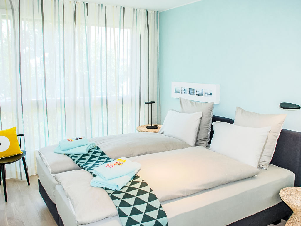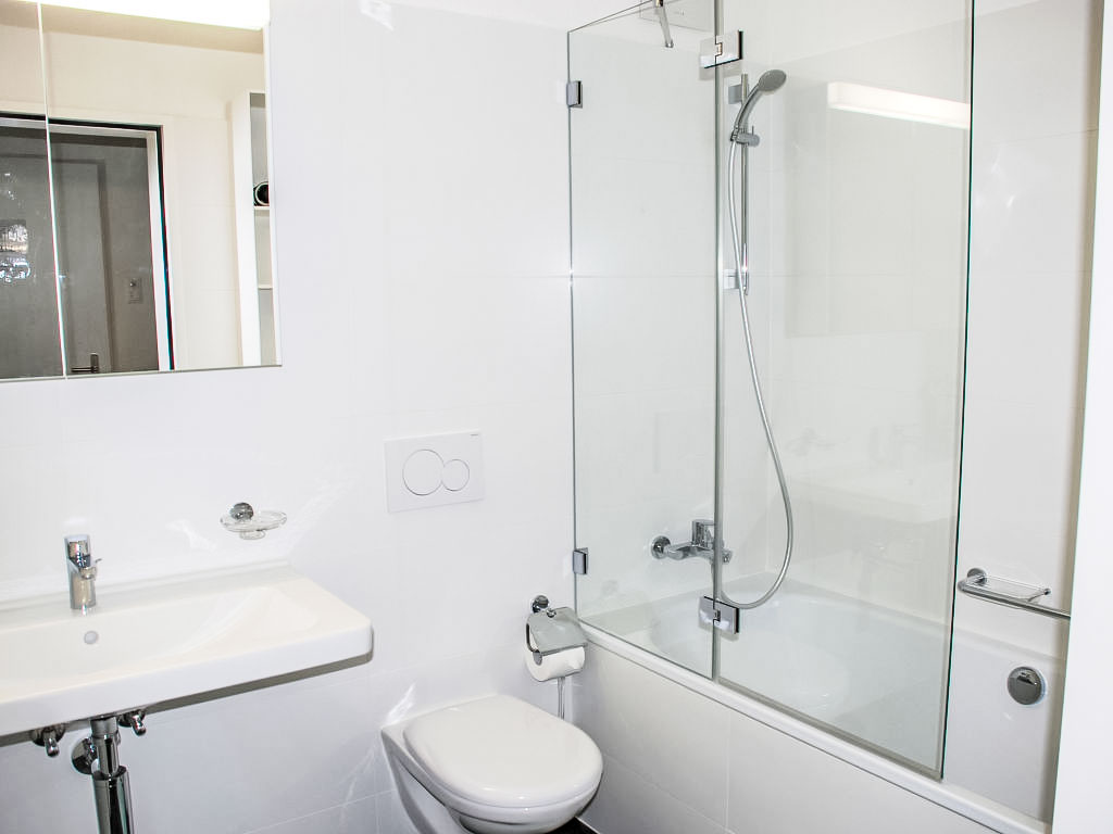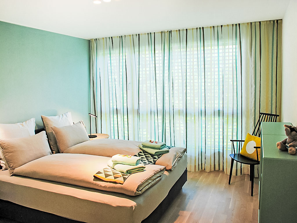 "LaVille A-3-4", 3-Zimmer-Wohnung 80 m2 im 3. Stock, Südwestlage. Geräumig und hell, modern und geschmackvoll eingerichtet: offenes grosses Wohn-/Esszimmer mit Sat-TV und Flachbildschirm. 1 Doppelzimmer mit 1 Doppelbett (2 x 90 cm, Länge 200 cm). 1 Zimmer mit 2 Betten (90 cm, Länge 200 cm). Offene Küche (Backofen, Geschirrspüler, 4 Induktionskochplatten, Tiefkühler, elektrische Kaffeemaschine, Kapseln für die Kaffeemaschine (Nespresso) extra) mit Esstisch. Ausgang zum Balkon. Bad/WC, Dusche/WC. Bodenheizung. Balkon 9 m2, Südlage und Westlage. Balkonmöbel, Liegestühle (1). Sicht auf die Berge und die Landschaft. Zur Verfügung: Waschmaschine, Wäschetrockner, Bügeleisen, Kinderhochstuhl, Babybett bis 2 Jahre (extra), Haartrockner. Internet (Wireless LAN, gratis). Parkplatz Nr. 48, Höhe 210 cm, Breite 230 cm. Bitte beachten: Nichtraucher-Unterkunft.