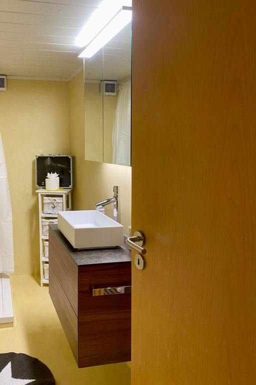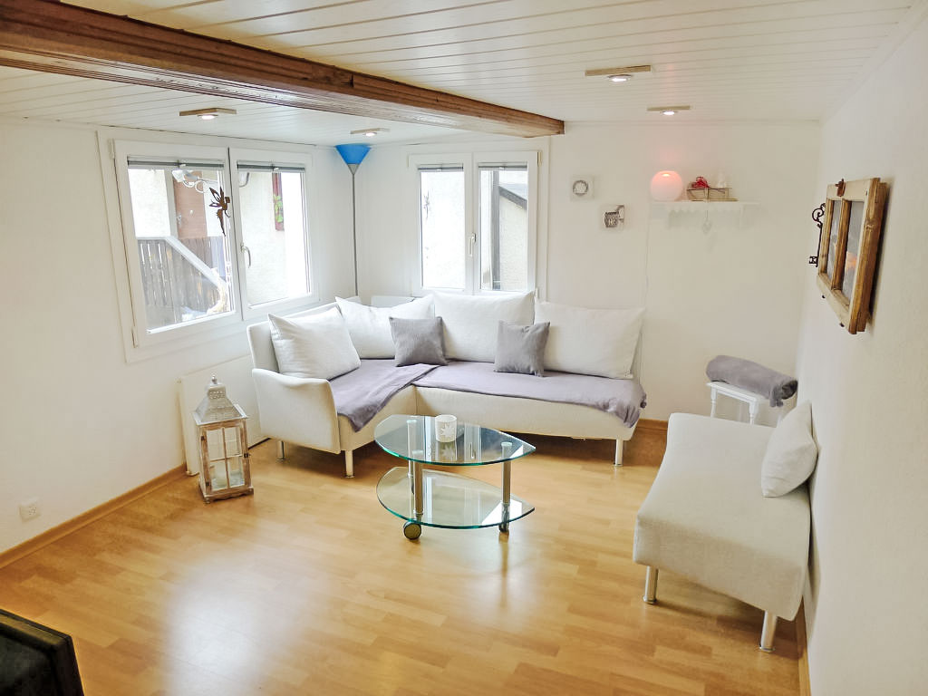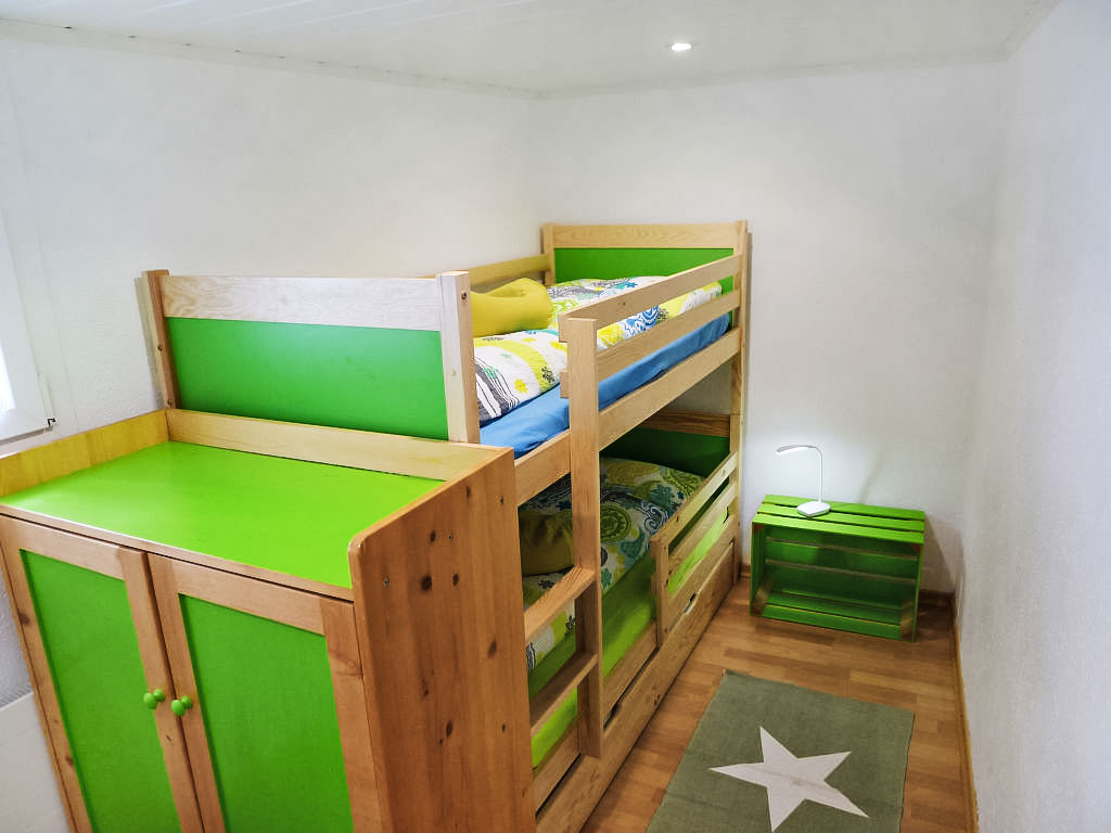 4-Zimmer-Wohnung 50 m2, im Erdgeschoss. Komfortabel und gemütlich eingerichtet: Wohnzimmer mit Kabel-TV (Flachbildschirm). 1 kleines Doppelzimmer. 1 kleines Zimmer mit 1 x 2 Etagenbetten. 1 kleines Zimmer mit 1 Wandschrankbett. Grosse Küche (Backofen, Geschirrspüler, 4 Glaskeramikherd Platten, elektrische Kaffeemaschine, Racletteofen, Fondue Set (Käse)) mit Esstisch. Dusche/WC. Kleiner Gartensitzplatz. Terrassenmöbel. Eingeschränkte Sicht auf die Berge, die Landschaft und die Ortschaft. Zur Verfügung: Internet (Wireless LAN, gratis). Parkplatz in 100 m. Bitte beachten: Nichtraucher-Unterkunft. 1 Haustier/Hund erlaubt.