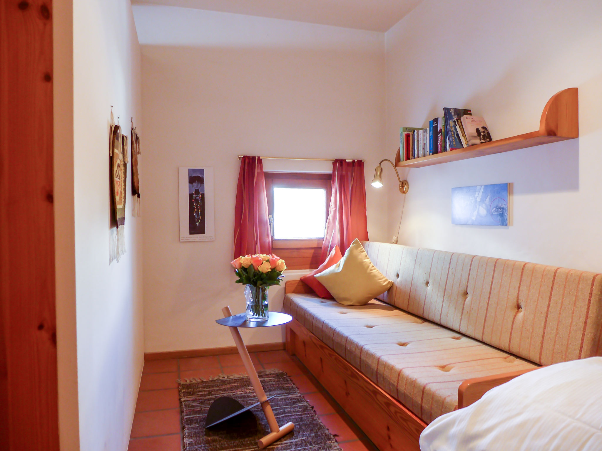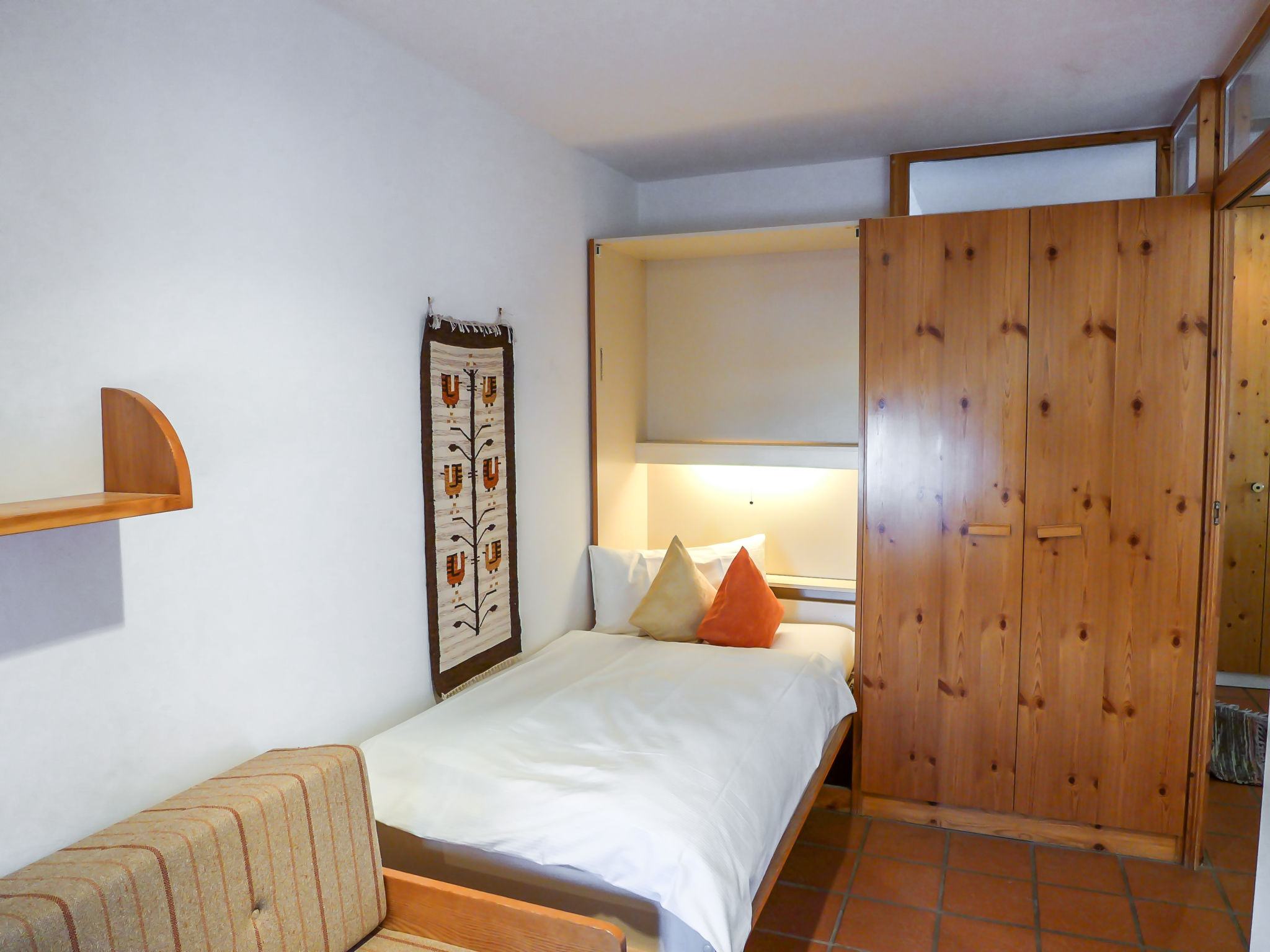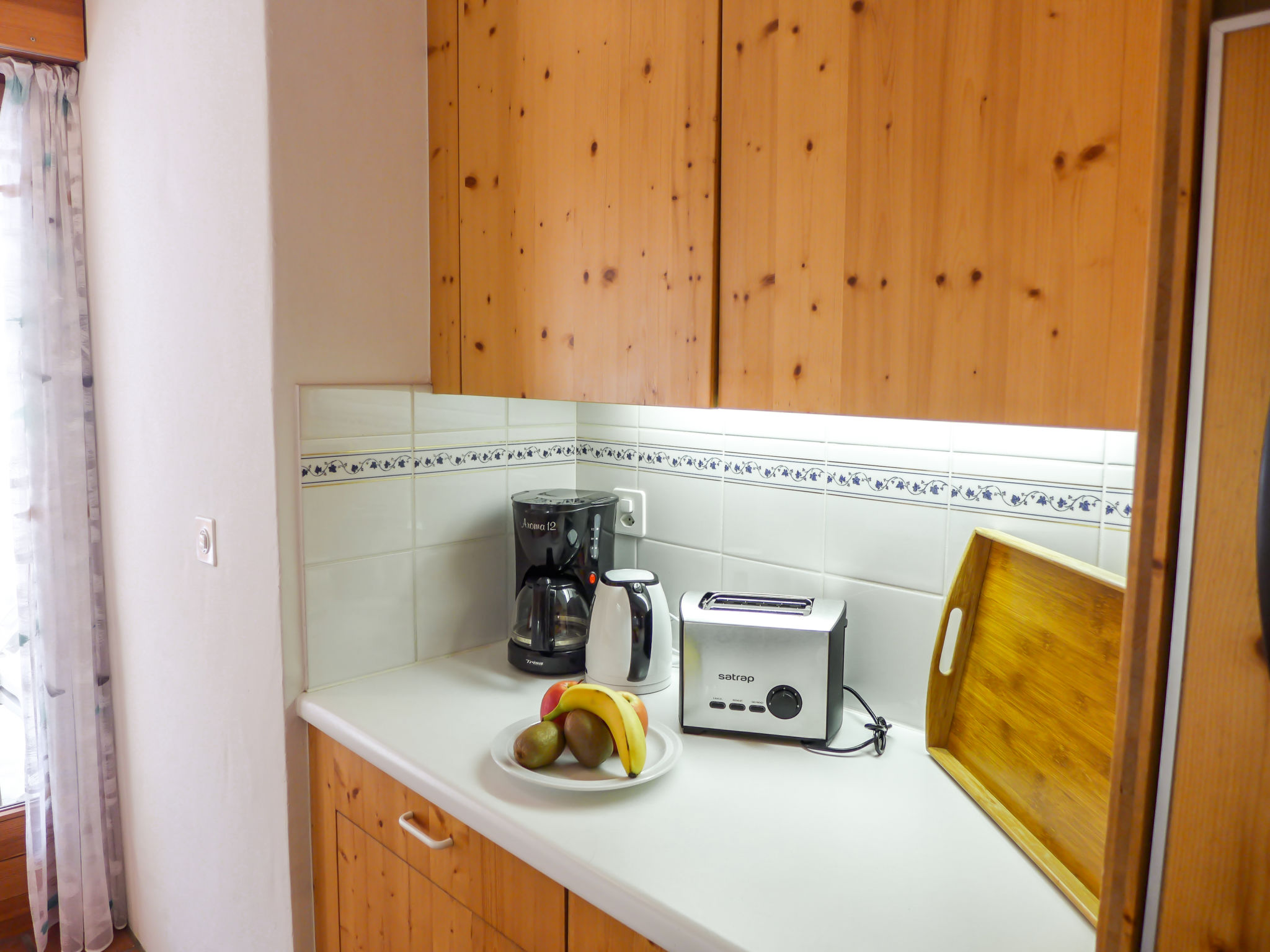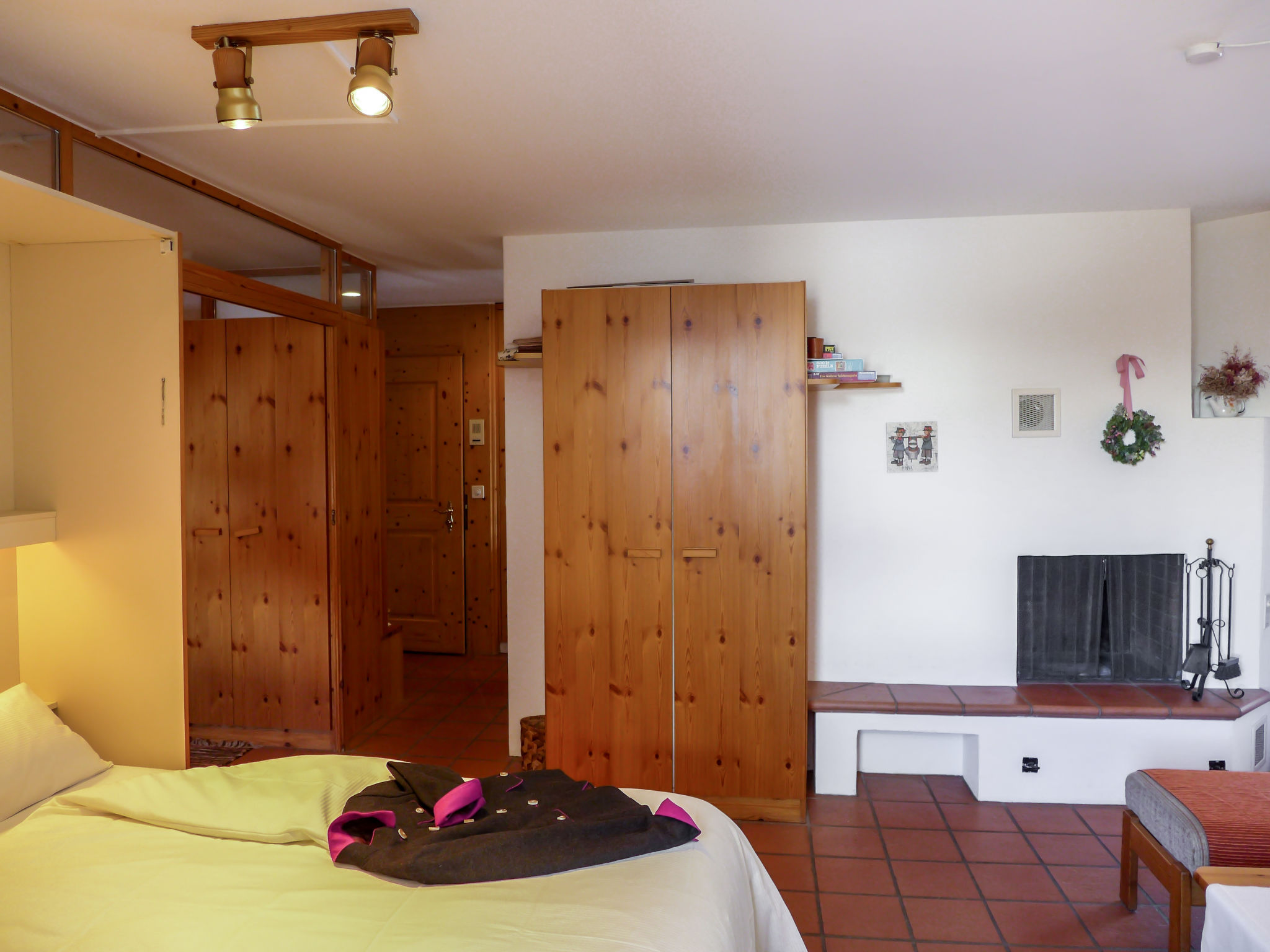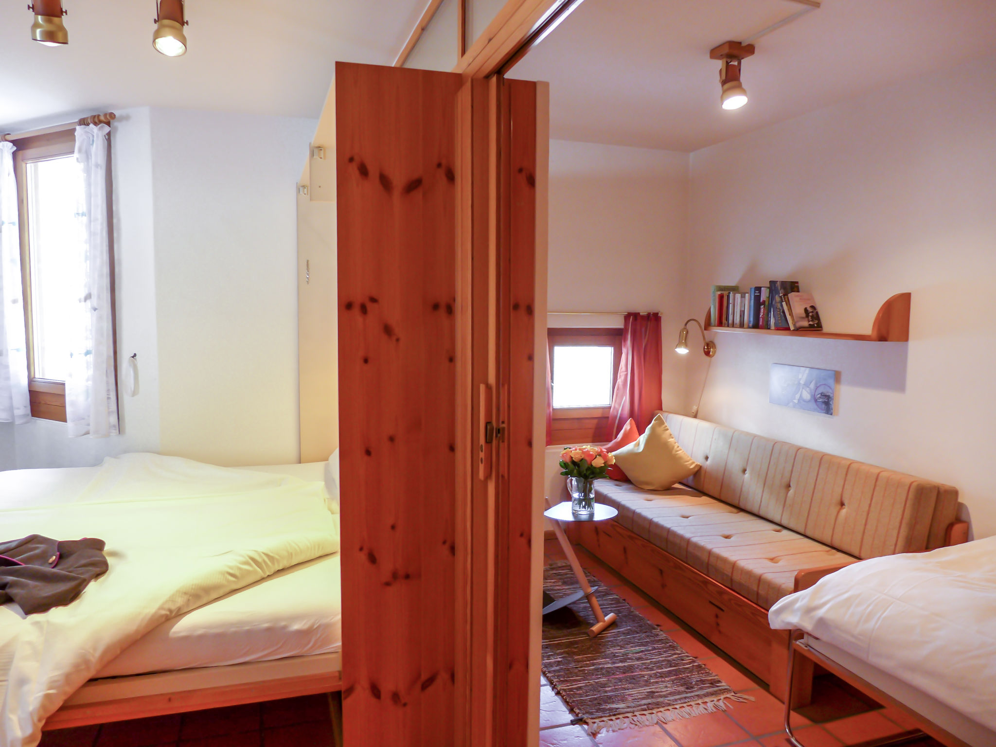 "Chesa Maurus A12", 1-Zimmer-Wohnung 50 m2 im 3. Stock. Zweckmässig und gemütlich eingerichtet: Wohn-/Schlafzimmer mit 2 Klappbetten (90 cm, Länge 200 cm), offenem Kamin, Esstisch und TV (Flachbildschirm). Ausgang zum Balkon. Verbundenes Zimmer mit 1 Klappbett (90 cm, Länge 200 cm). Offene Küche (4 Kochplatten, Backofen, Geschirrspüler, Toaster, Wasserkocher, elektrische Kaffeemaschine). Ausgang zum Balkon. Bad/WC. Balkon 6 m2. Balkonmöbel. Schöne Sicht auf die Berge, die Landschaft und die Ortschaft. Zur Verfügung: Haartrockner. Internet (Wireless LAN, gratis). Garage Nr. 17 - A12 auf dem Grundstück (1 Auto), Höhe 210 cm, Breite 220 cm. Bitte beachten: Nichtraucher-Unterkunft, Nichtraucher-Haus. :der Schlafbereich für die 3. Person kann durch eine Schiebetür abgetrennt werden.