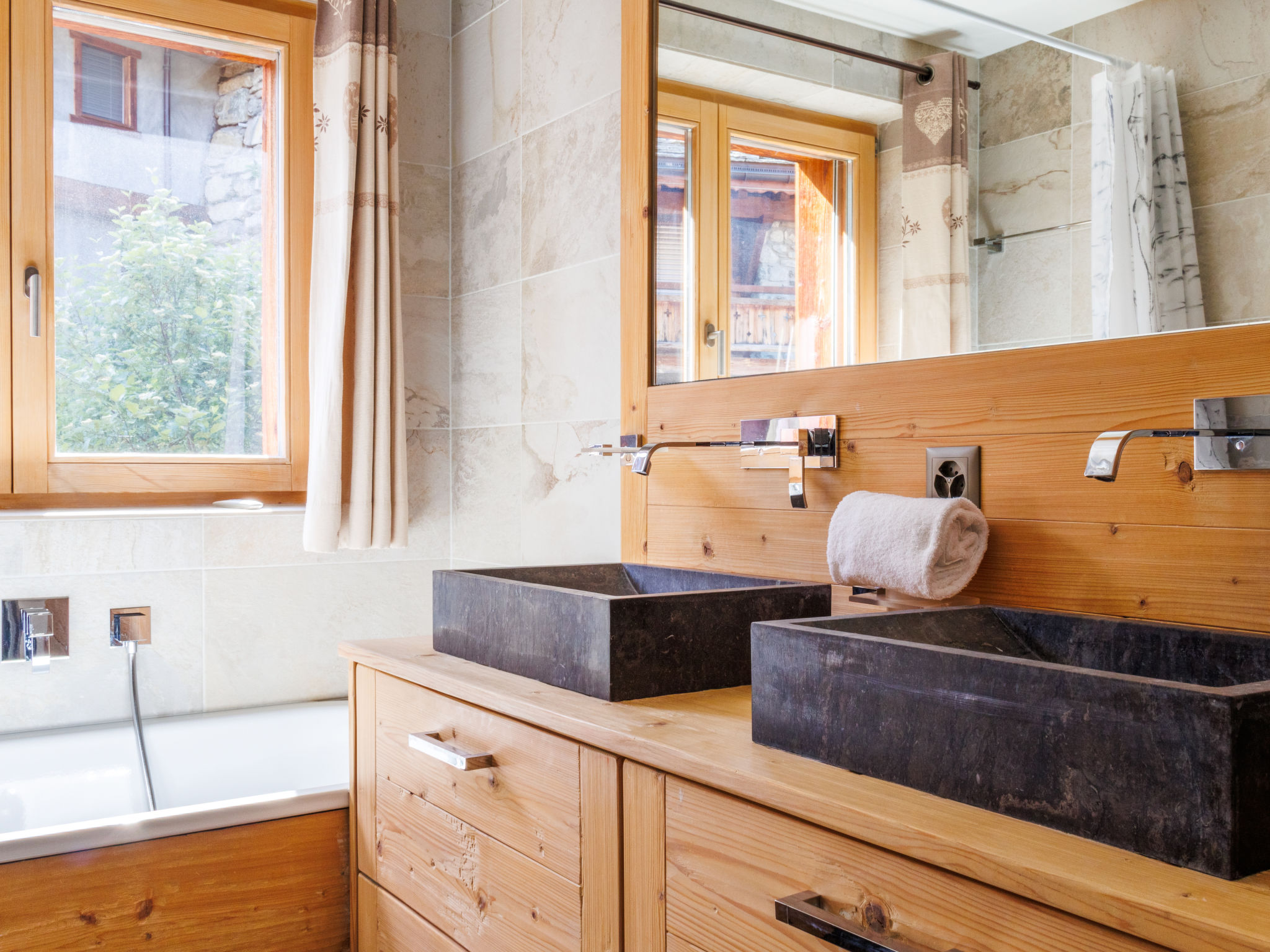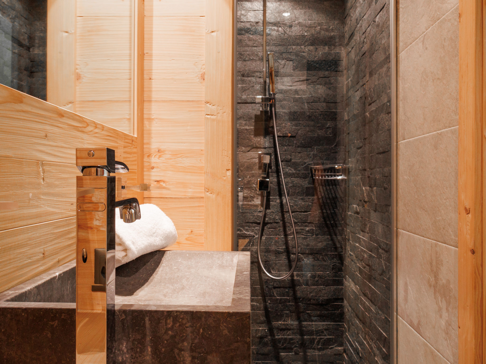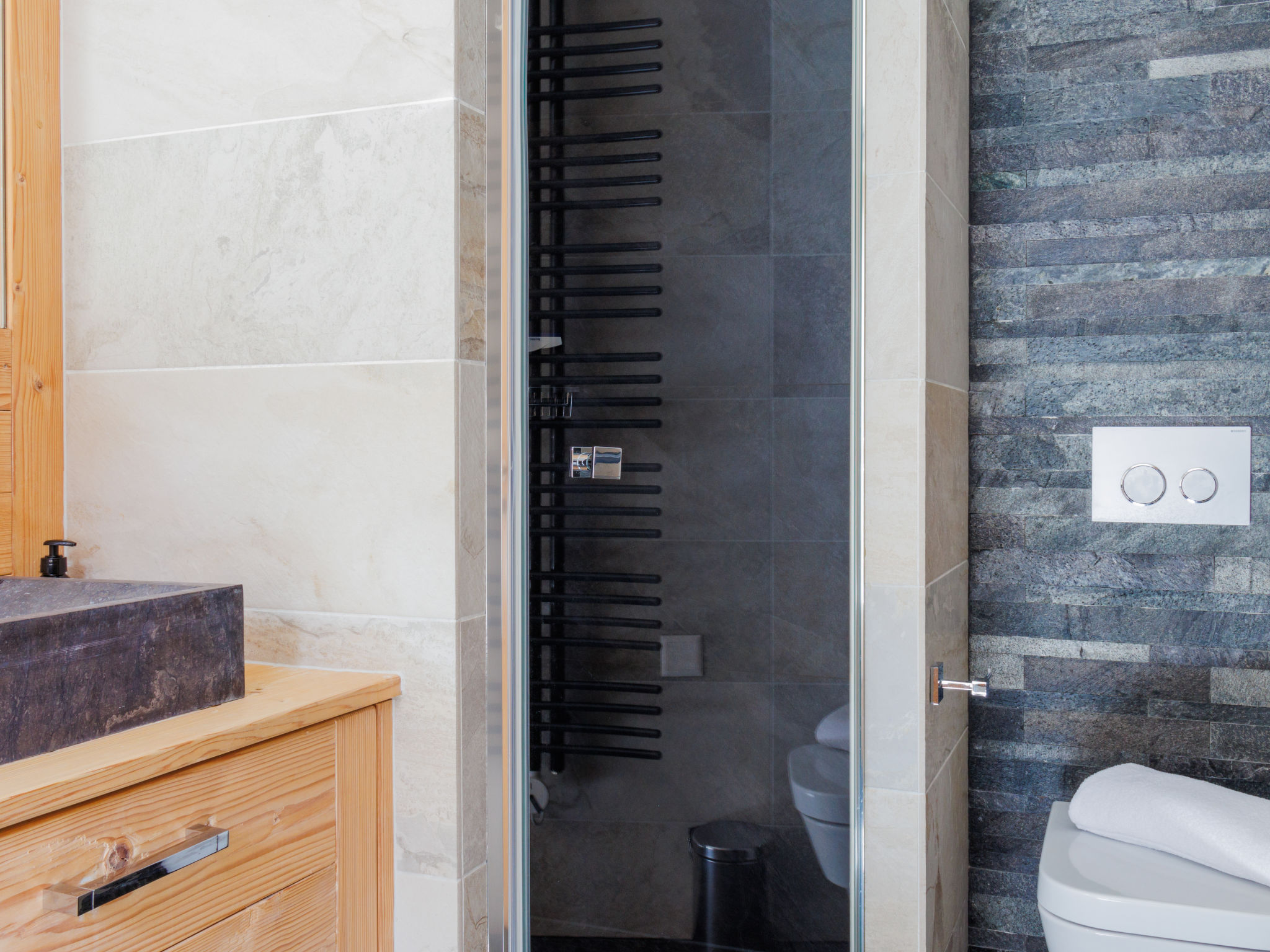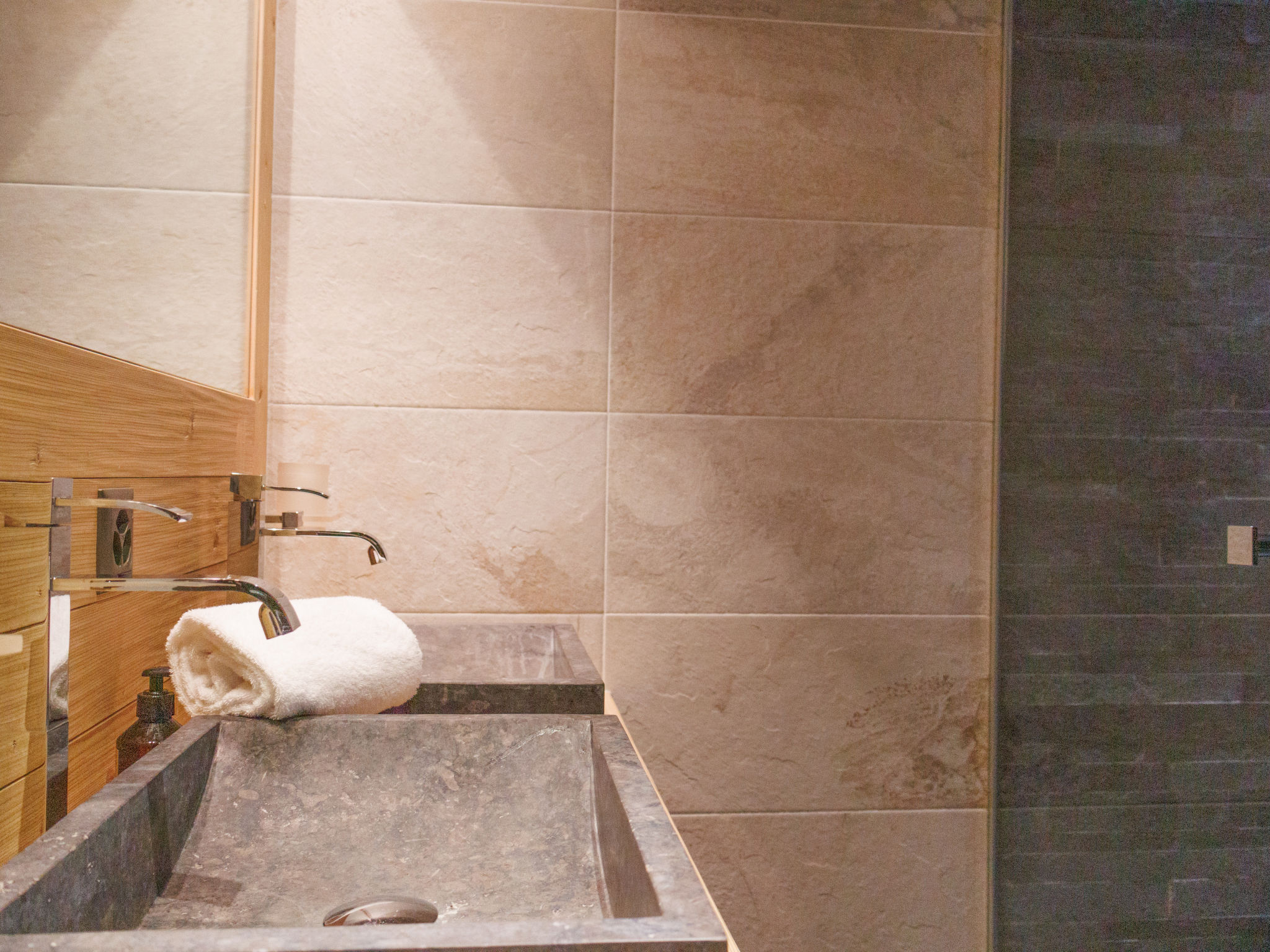 "Le Montagnard 6", 4-Zimmer-Wohnung 123 m2 im 2. Stock. Objekt geeignet für 4 Erwachsene + 4 Kinder. Geräumig, sehr schön und luxuriös eingerichtet: grosses Wohn-/Esszimmer mit Panoramafenster mit offenem Kamin, Kabel-TV und DVD. Ausgang zum Balkon, Richtung Norden und Richtung Osten. 1 grosses Zimmer mit 1 Doppelbett (180 cm, Länge 200 cm), Bad/Dusche/WC und Kabel-TV. 1 Zimmer mit 1 Doppelbett (180 cm, Länge 200 cm), Dusche/WC und Kabel-TV. Ausgang zum Balkon. 1 Kinderzimmer mit 1 x 2 Etagenbetten (90 cm, Länge 190 cm), 1 Ausziehbett (2 Pers. 2 x 90 cm, Länge 190 cm), Kabel-TV. Offene Küche (Backofen, Geschirrspüler, 4 Induktionskochplatten, Mikrowelle, elektrische Kaffeemaschine, Kapseln für die Kaffeemaschine (nespresso) extra, Racletteofen, Fondue Set (Chinoise, Käse)). Dusche/WC. Fussbodenheizung. Balkon 26 m2, Nordlage und Ostlage Balkon 10 m2. Balkonmöbel, Liegestühle (4). Sehr schöne Sicht auf die Berge. Zur Verfügung: Waschmaschine, Wäschetrockner, Kinderhochstuhl, Babybett, Haartrockner. Internet (Wireless LAN, gratis). Garage Nr. 6 (2 Autos), Höhe 220 cm. Bitte beachten: geeignet für Familien. Nichtraucher-Unterkunft. 4 Abonnements für Thermalbad „Bisses“ sind während des Aufenthalts im Mietpreis inbegriffen. Dieses Thermalbad ist ein Teil des „4 Vallées Mer de Glace“ Komplex.
