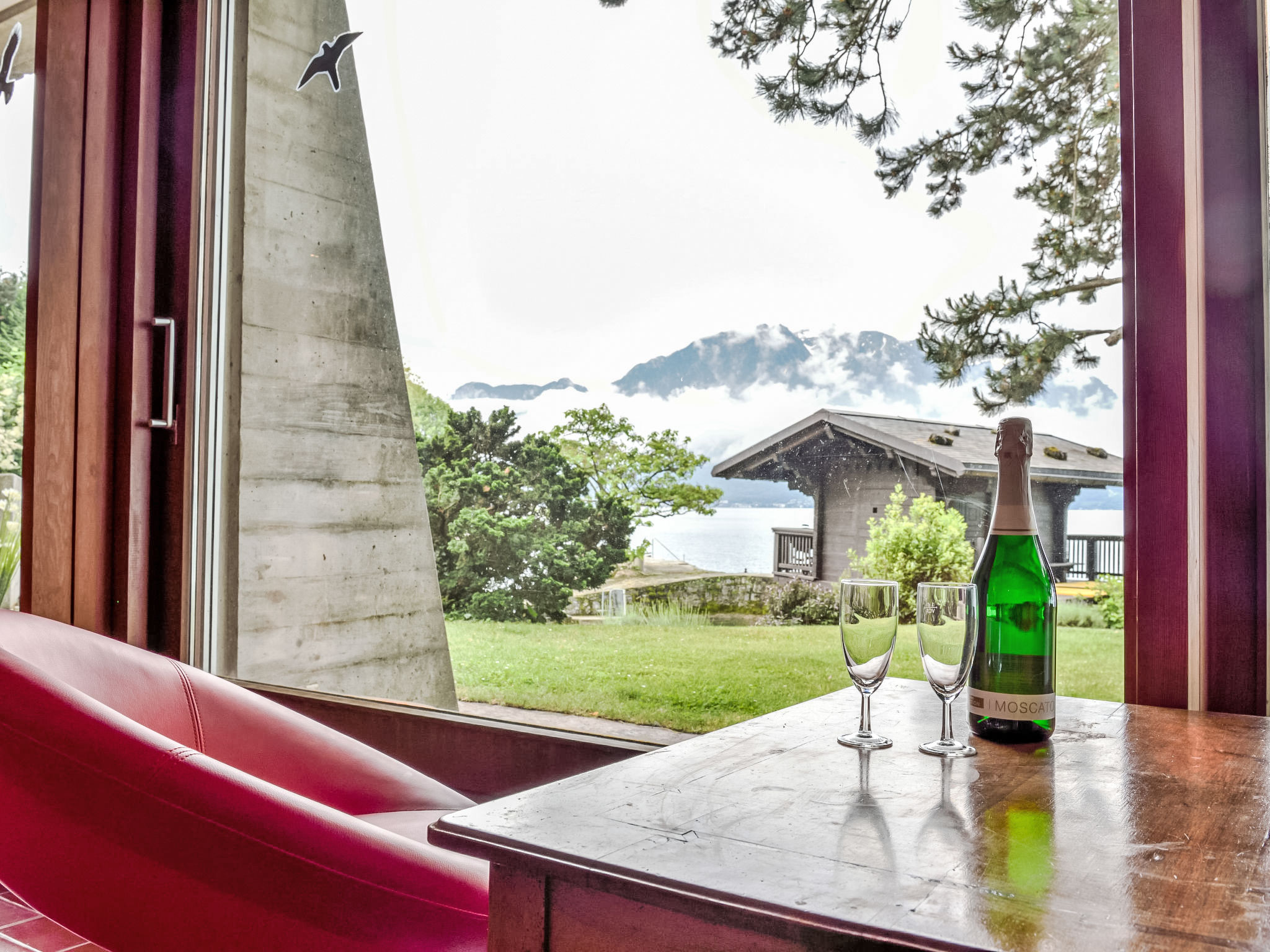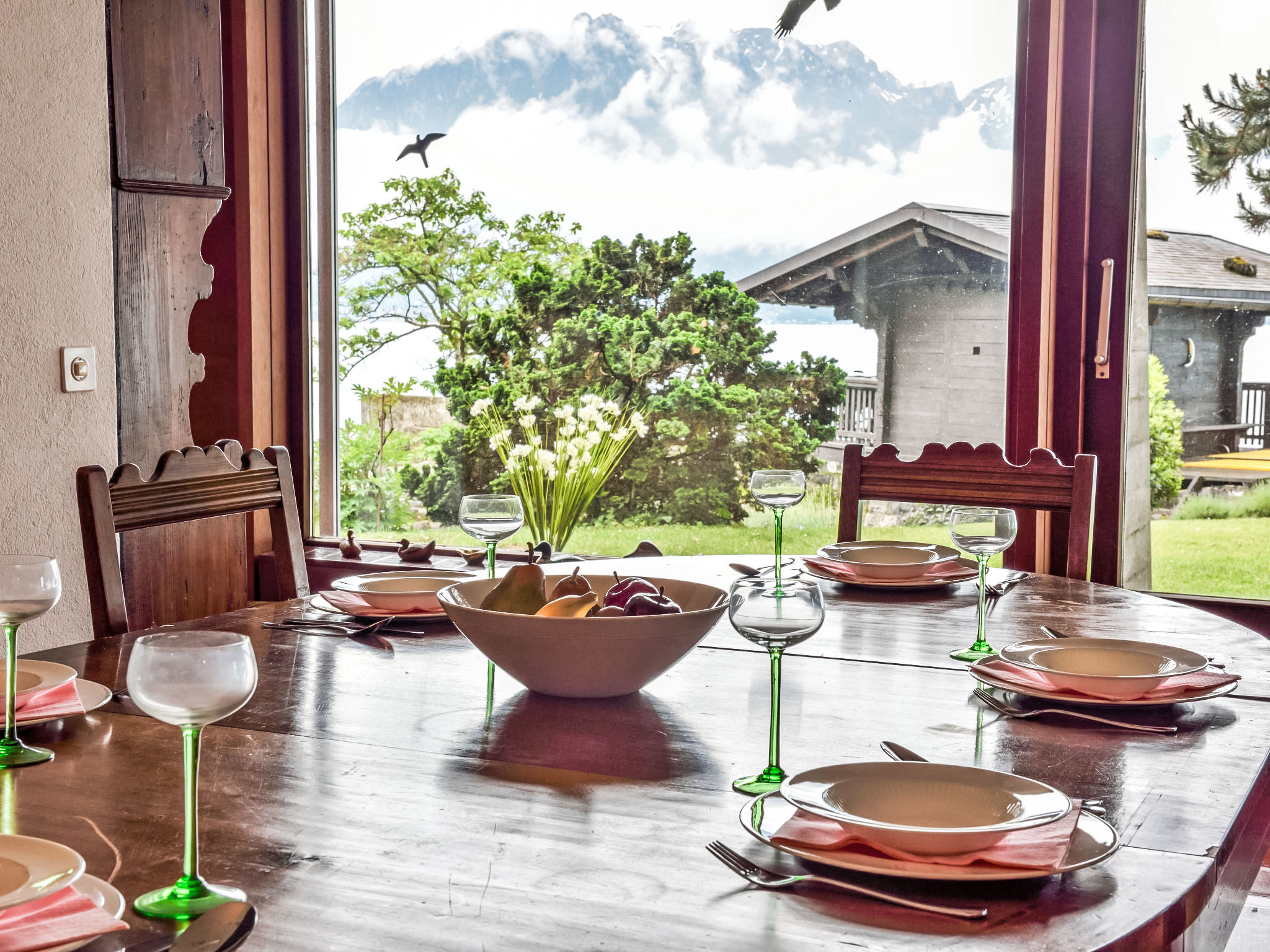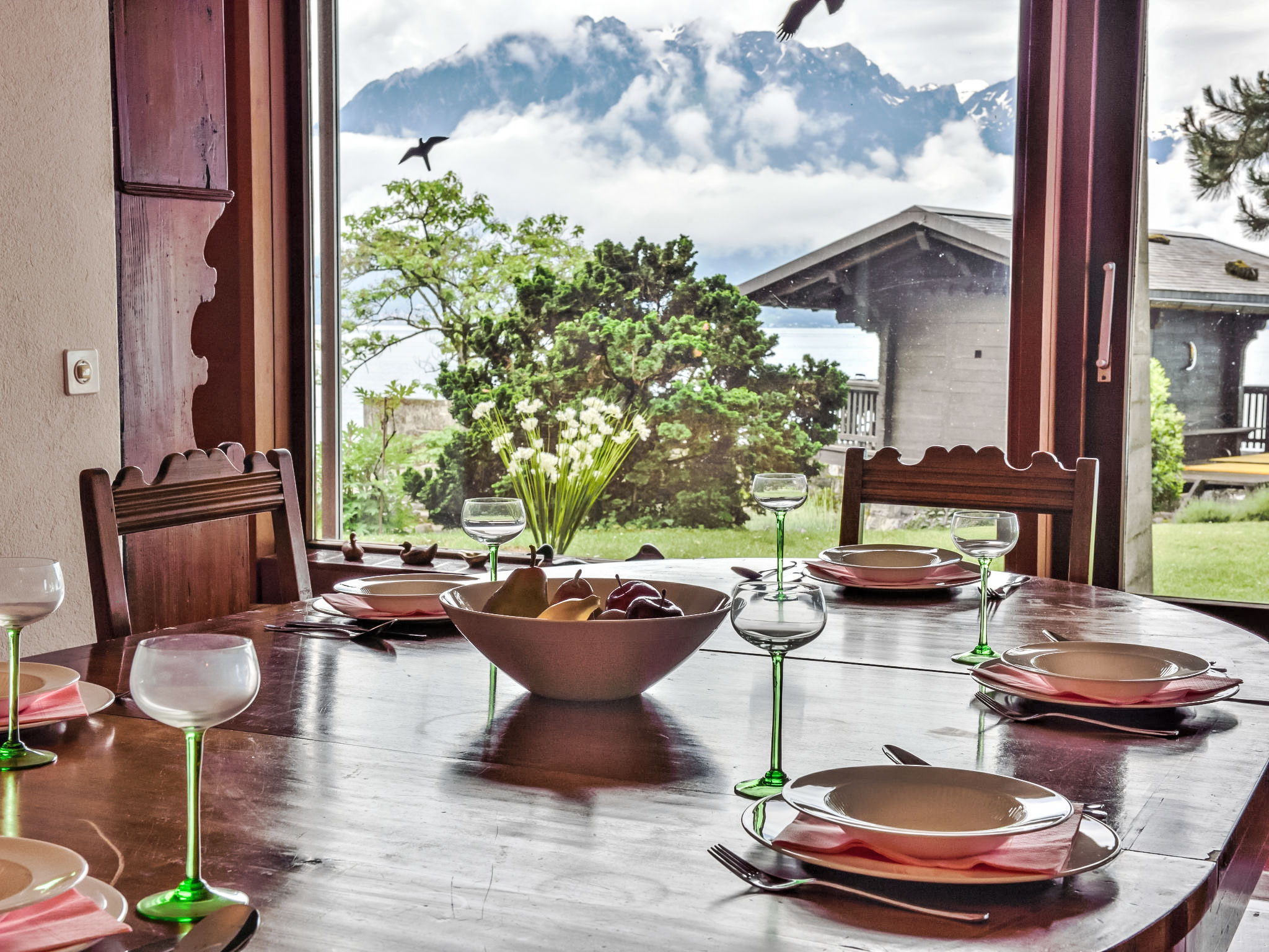 "Duck House", 5-Zimmer-Villa 200 m2. Geräumig und hell, komfortabel und geschmackvoll eingerichtet: grosses Wohn-/Esszimmer 60 m2 mit offenem Kamin, Esstisch, Stereoanlage und elektrischem Rollladen. Ausgang zum Garten, zur Terrasse. 1 Zimmer 10 m2 mit 1 Doppelbett (1 x 160 cm, Länge 190 cm). Ausgang zur Terrasse. 1 Zimmer 10 m2 mit 1 Doppelbett (1 x 140 cm, Länge 190 cm). Ausgang zur Terrasse. 1 Zimmer 10 m2 mit 1 Doppelbett (1 x 140 cm, Länge 200 cm). Ausgang zur Terrasse. 1 Zimmer 20 m2 mit 2 Betten (90 cm, Länge 200 cm), Dusche/WC und Kabel-TV. Ausgang zur Terrasse. Küche (Backofen, Geschirrspüler, 4 Glaskeramikherd Platten, Mikrowelle, Tiefkühler, elektrische Kaffeemaschine, Kapseln für die Kaffeemaschine (Nespresso) extra). Bad, sep. WC. E-Heizung. Grosser Garten, Südwestlage. Terrassenmöbel, Gartengrill (mobil), Liegestühle (5). Herrliche Sicht auf den See und die Berge. Zur Verfügung: Waschmaschine, Wäschetrockner, Bügeleisen, Kinderhochstuhl, Haartrockner, Holz (gratis). Internet (Wireless LAN, gratis). Bitte beachten: Nichtraucher-Unterkunft. Private Bootsanlegestelle. 1 Haustier/Hund erlaubt. Dieses Familienhaus wurde von berühmten Künstlern wie Freddie Mercury bewohnt.