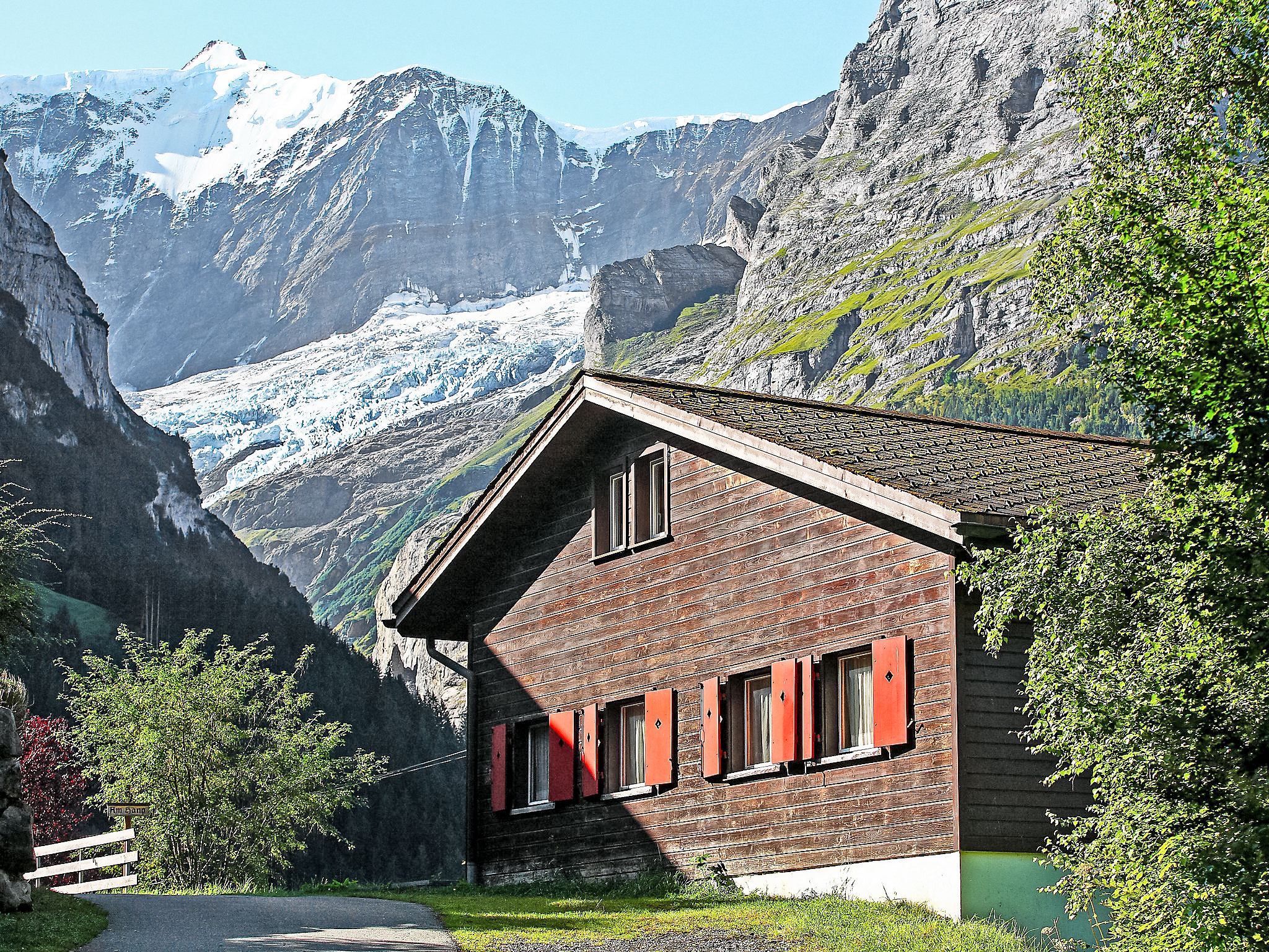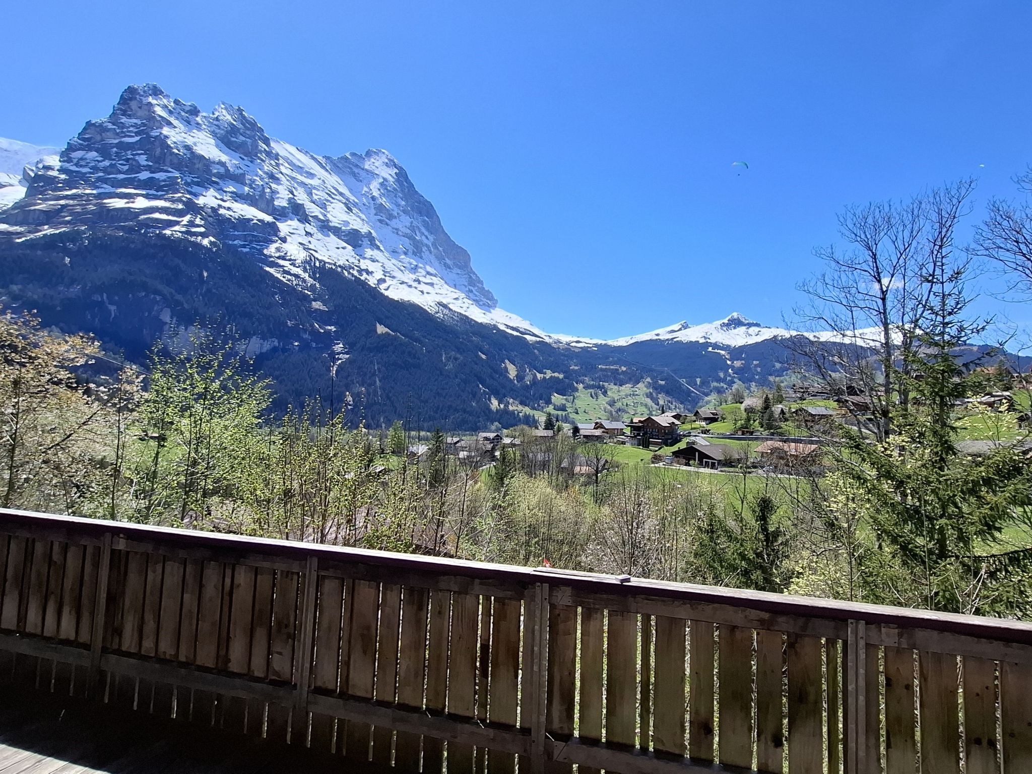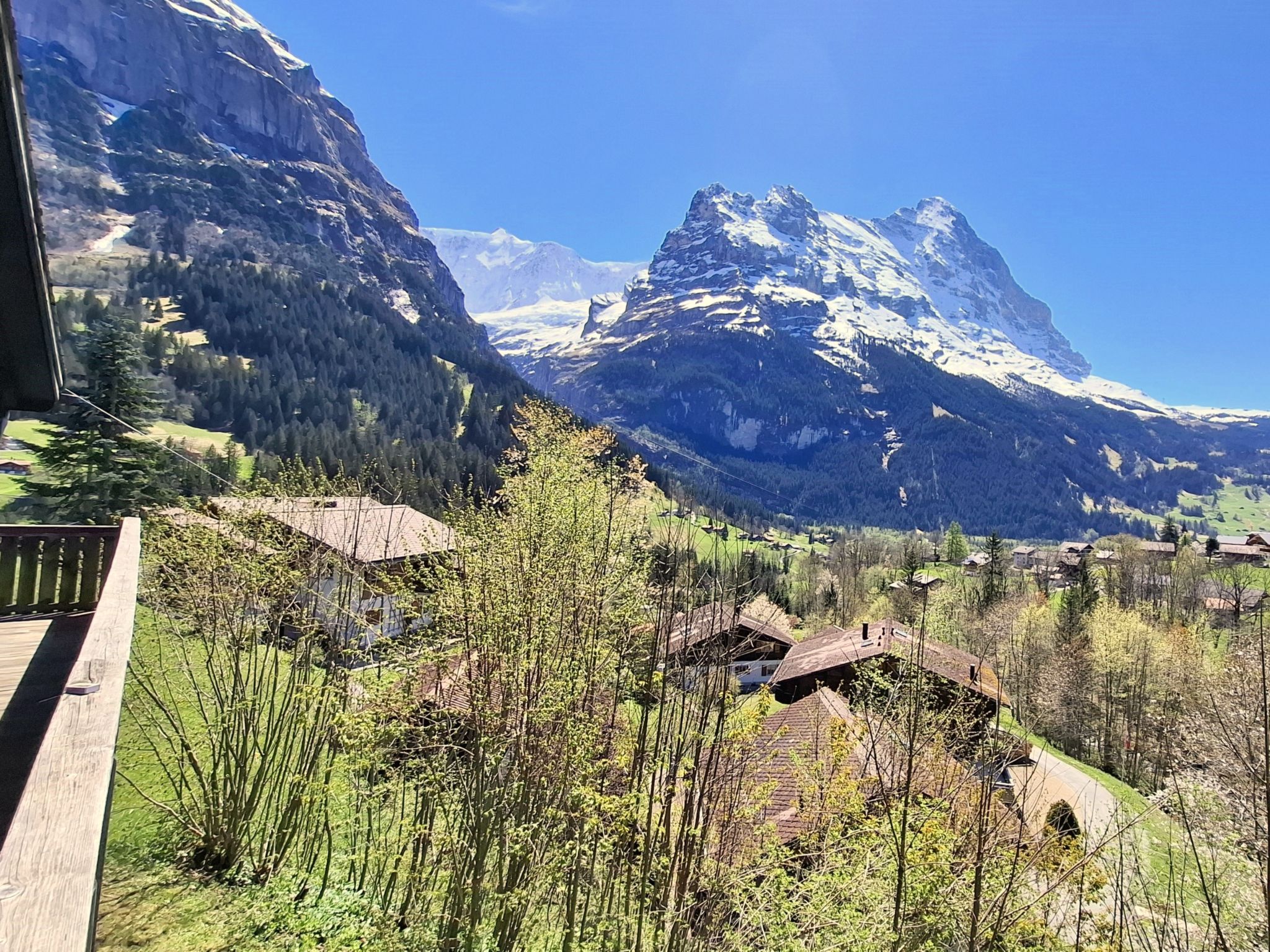 4-Zimmer-Chalet 70 m2, Südlage. Gemütlich und mit viel Holz eingerichtet: Wohn-/Esszimmer mit offenem Kamin, TV und Stereoanlage. Ausgang zur Terrasse, Richtung Süden. 2 Zimmer, jedes Zimmer mit 2 Betten (90 cm, Länge 200 cm). 1 Zimmer mit 1 franz. Bett (1 x 160 cm, Länge 200 cm). Offene Küche (Backofen, Geschirrspüler, 4 Glaskeramikherd Platten, Mikrowelle, elektrische Kaffeemaschine). Dusche/WC. Parkettböden. Grosse Terrasse, Südlage. Terrassenmöbel. Herrliche Sicht auf die Berge, das Tal, die Landschaft und Eigernordwand. Zur Verfügung: Internet (Wireless LAN, gratis). Parkplatz beim Haus. 1 Haustier/Hund erlaubt.