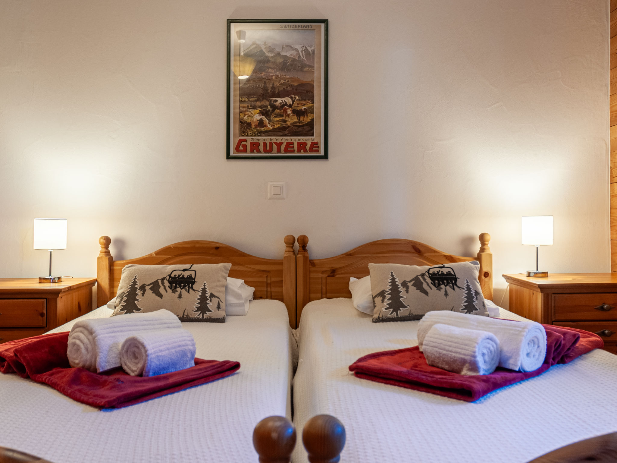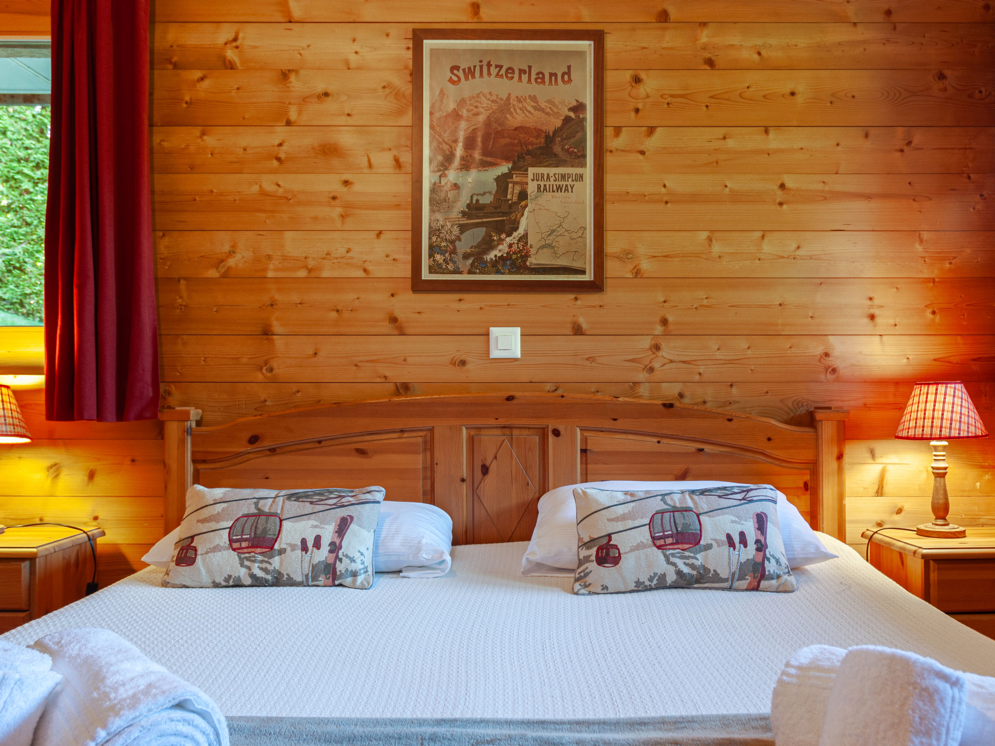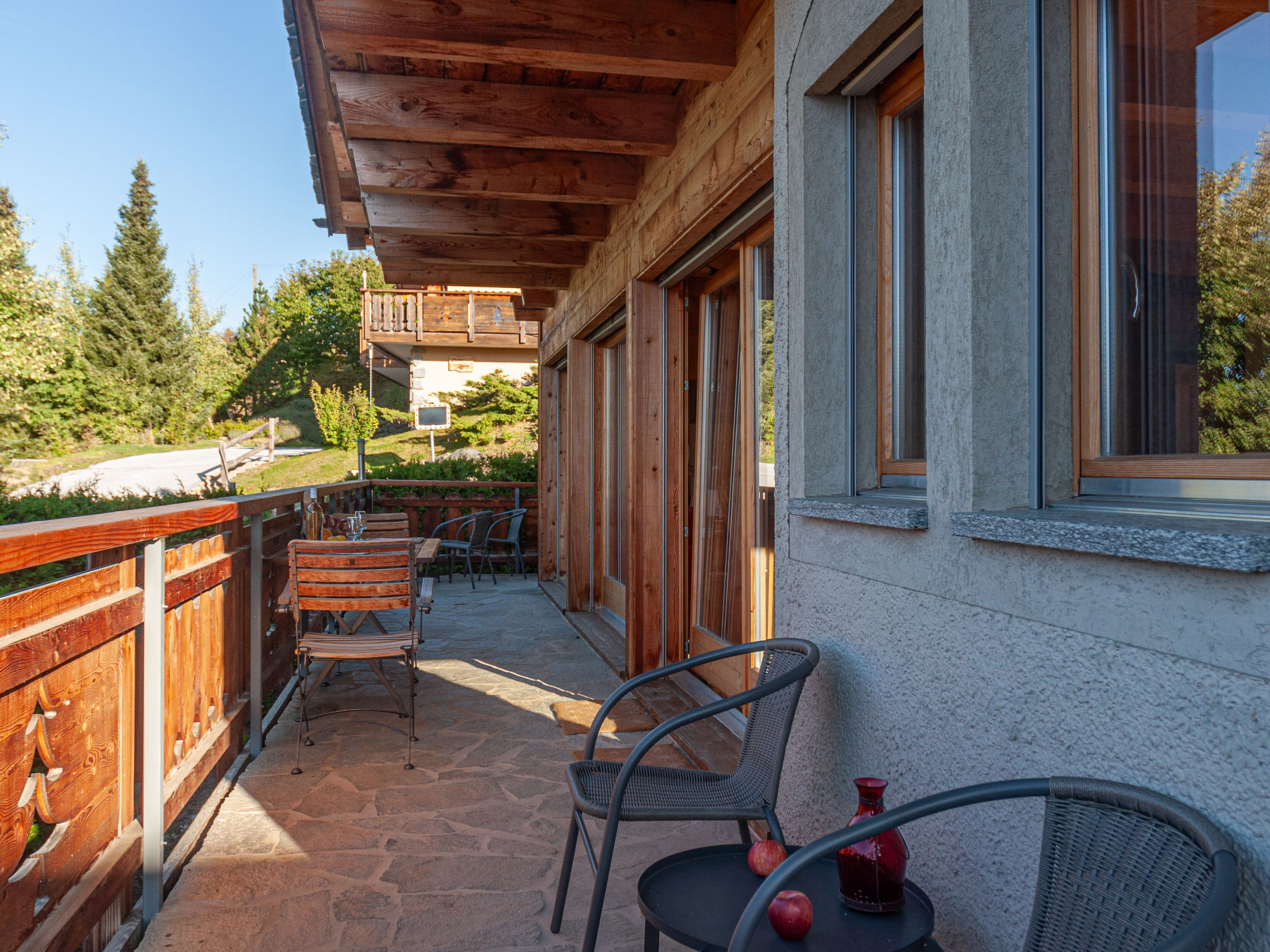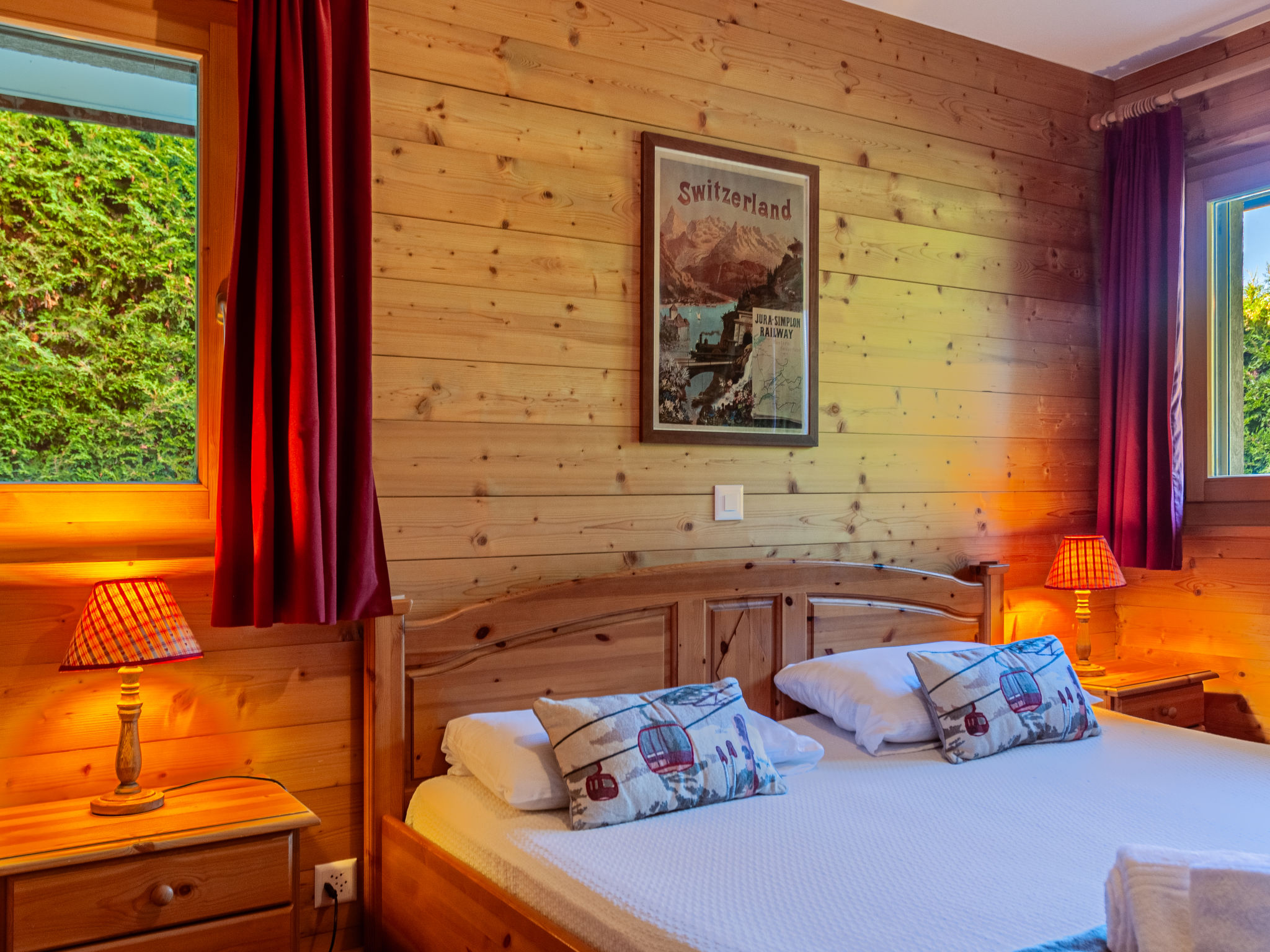 "Rêves des Alpes", 5-Zimmer-Chalet 150 m2 auf 3 Stockwerken. Geräumig, mit viel Holz eingerichtet: grosses Wohn-/Esszimmer mit offenem Kamin und Kabel-TV (Flachbildschirm), Stereoanlage und DVD. Ausgang zum Balkon, zur Terrasse. Offene Küche (Backofen, Geschirrspüler, 4 Glaskeramikherd Platten, Mikrowelle, Tiefkühler, elektrische Kaffeemaschine, Kapseln für die Kaffeemaschine (Nespresso) extra, Racletteofen, Fondue Set (Käse)) mit Bar. Sep. WC. Unteres Geschoss: 1 Zimmer mit 1 franz. Bett (180 cm, Länge 200 cm). 2 Zimmer, jedes Zimmer mit 2 Betten (90 cm, Länge 200 cm). Bad/WC, Bad/Dusche/WC. Obergeschoss: 1 grosses Zimmer mit 1 franz. Bett (160 cm, Länge 200 cm), Bad/WC. Ausgang zum Balkon. 2 Balkone, Nordlage und Westlage, kleiner Balkon, Südlage Terrasse. Terrassenmöbel, Gartengrill. Sehr schöne Sicht auf die Berge und das Tal. Zur Verfügung: Waschmaschine, Kinderhochstuhl, Babybett, Haartrockner. Internet (Wireless LAN, gratis). Garage (2 Autos), Höhe 210 cm, Breite 240 cm. Bitte beachten: Nichtraucher-Unterkunft.