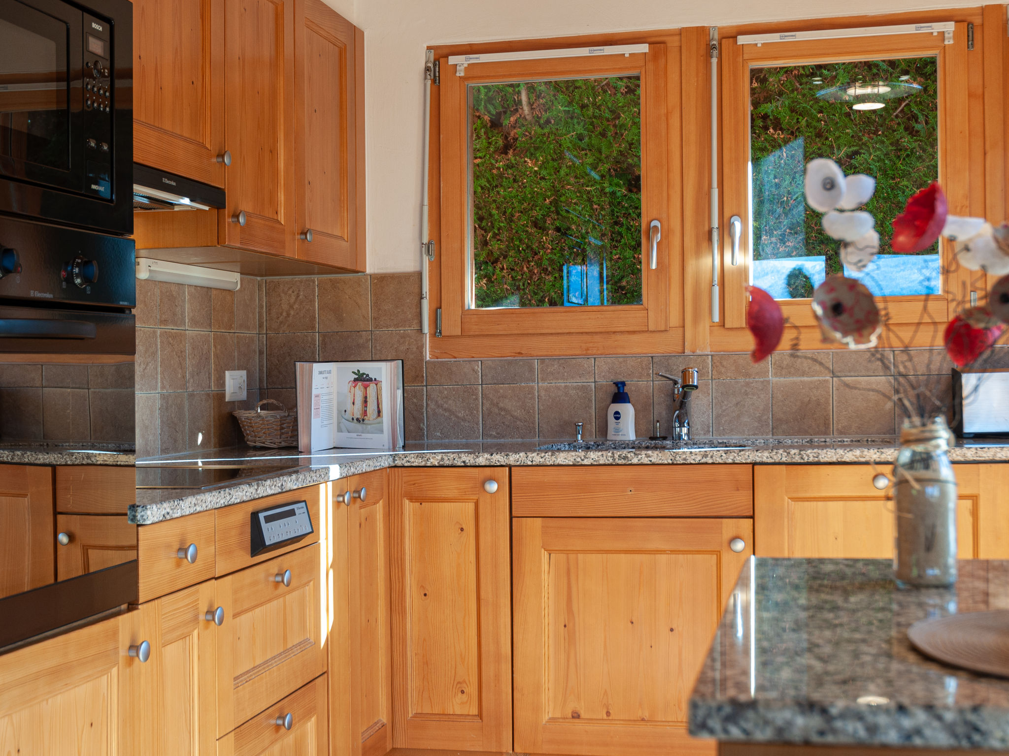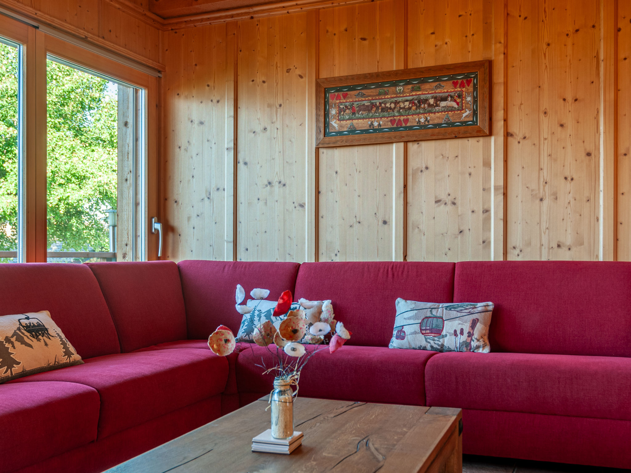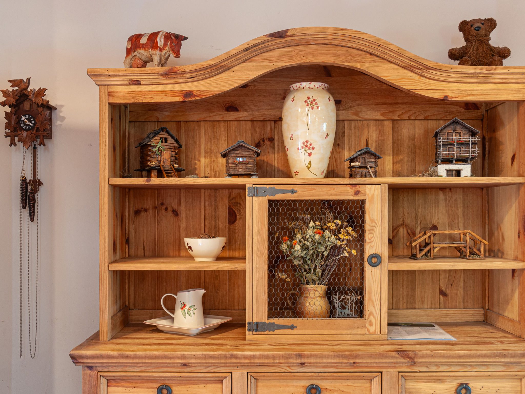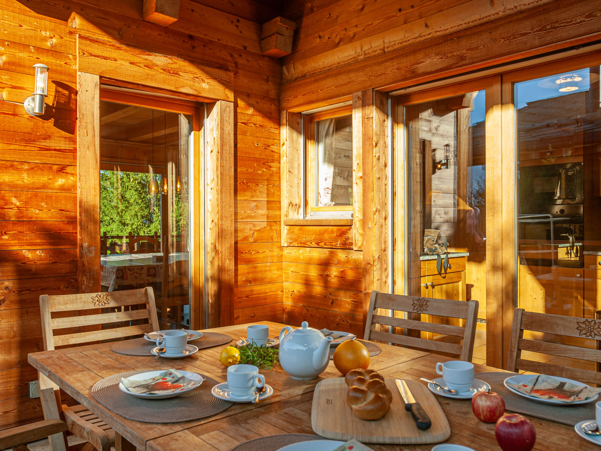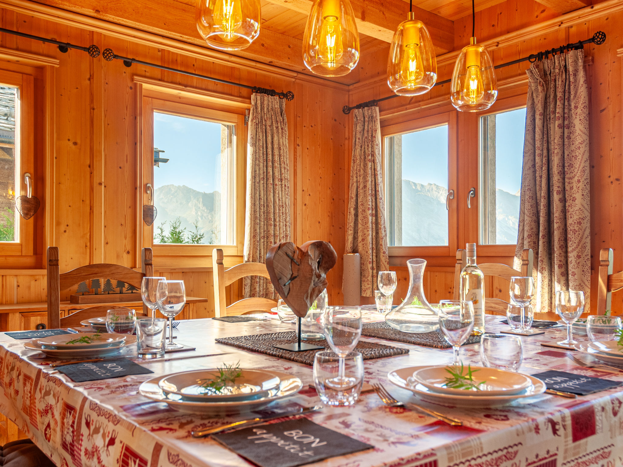 "Rêves des Alpes", 5-Zimmer-Chalet 150 m2 auf 3 Stockwerken. Geräumig, mit viel Holz eingerichtet: grosses Wohn-/Esszimmer mit offenem Kamin und Kabel-TV (Flachbildschirm), Stereoanlage und DVD. Ausgang zum Balkon, zur Terrasse. Offene Küche (Backofen, Geschirrspüler, 4 Glaskeramikherd Platten, Mikrowelle, Tiefkühler, elektrische Kaffeemaschine, Kapseln für die Kaffeemaschine (Nespresso) extra, Racletteofen, Fondue Set (Käse)) mit Bar. Sep. WC. Unteres Geschoss: 1 Zimmer mit 1 franz. Bett (180 cm, Länge 200 cm). 2 Zimmer, jedes Zimmer mit 2 Betten (90 cm, Länge 200 cm). Bad/WC, Bad/Dusche/WC. Obergeschoss: 1 grosses Zimmer mit 1 franz. Bett (160 cm, Länge 200 cm), Bad/WC. Ausgang zum Balkon. 2 Balkone, Nordlage und Westlage, kleiner Balkon, Südlage Terrasse. Terrassenmöbel, Gartengrill. Sehr schöne Sicht auf die Berge und das Tal. Zur Verfügung: Waschmaschine, Kinderhochstuhl, Babybett, Haartrockner. Internet (Wireless LAN, gratis). Garage (2 Autos), Höhe 210 cm, Breite 240 cm. Bitte beachten: Nichtraucher-Unterkunft.