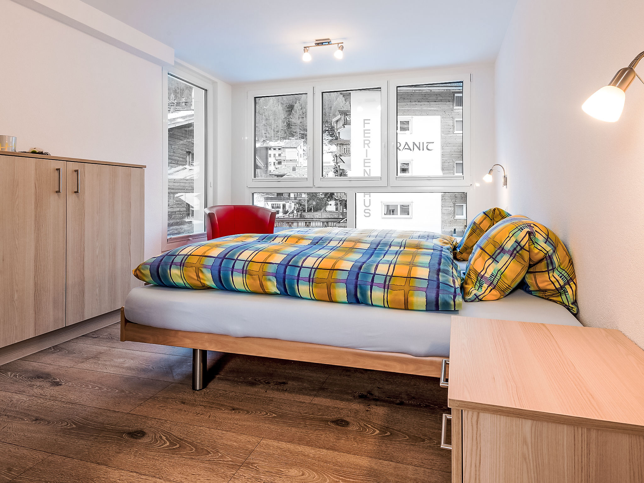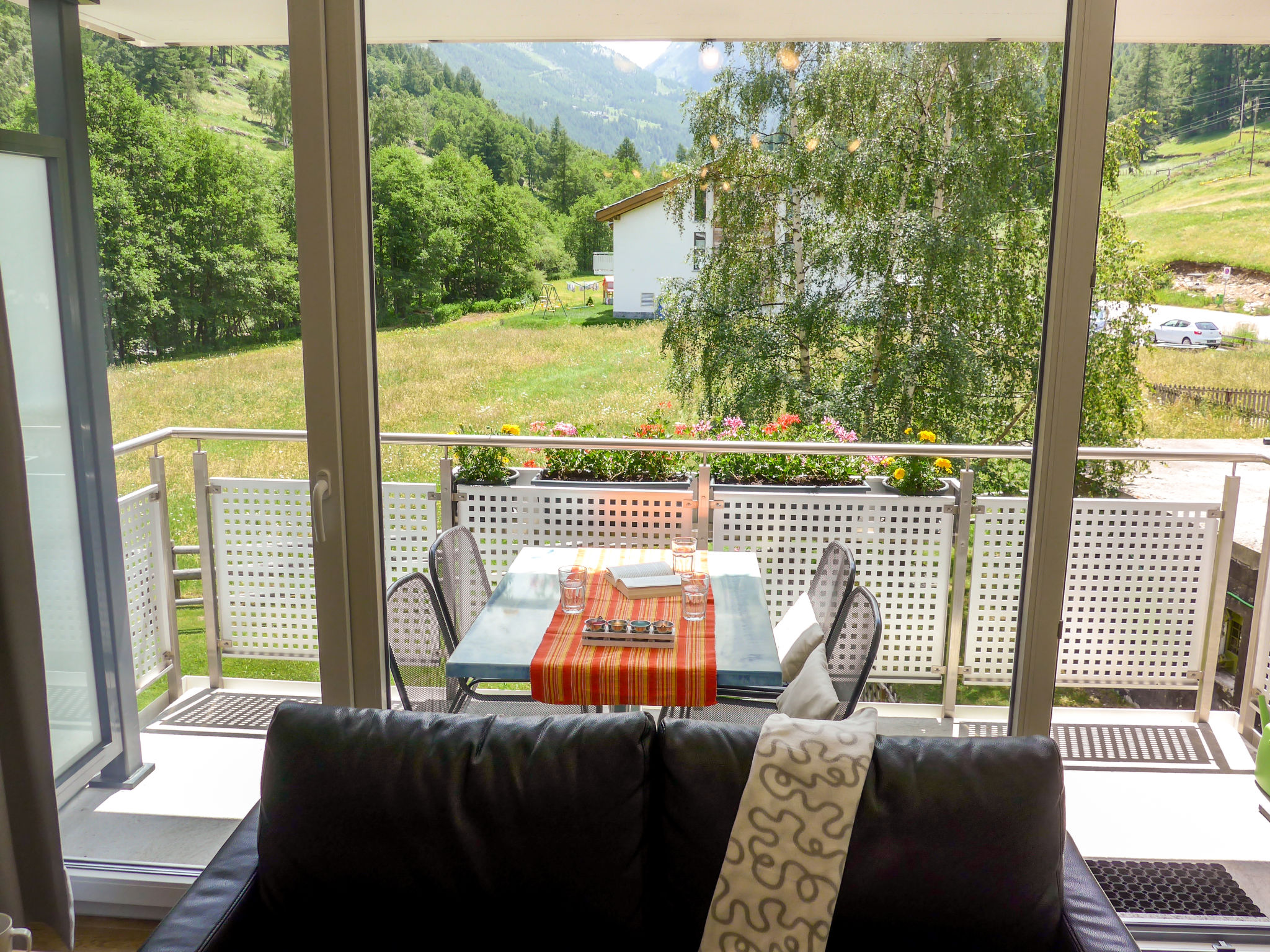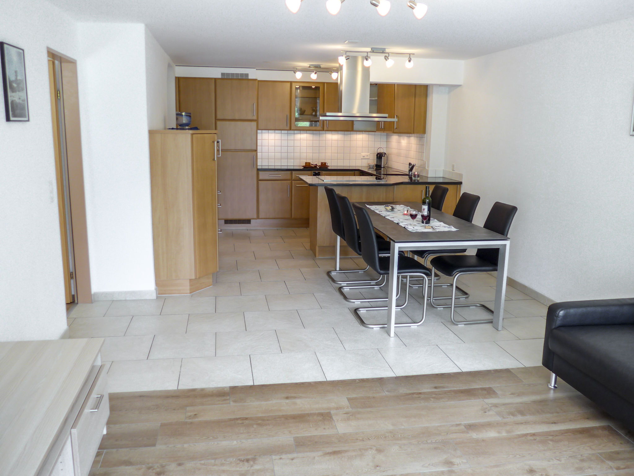 4-Zimmer-Wohnung 105 m2 im 2. Stock. Renoviert im Jahre 2015, modern eingerichtet: Wohn-/Esszimmer mit Sat-TV und Radio. Ausgang zum Balkon, Richtung Süden. 1 Zimmer mit 2 Betten (90 cm, Länge 190 cm). Ausgang zum Balkon, Richtung Westen. 1 Zimmer mit 2 Betten. Ausgang zum Balkon, Richtung Süden. 1 Zimmer mit 2 Betten (90 cm, Länge 190 cm). Offene Küche (Backofen, Geschirrspüler, 4 Glaskeramikherd Platten, Mikrowelle, elektrische Kaffeemaschine, Kapseln für die Kaffeemaschine (Nespresso) extra, Fondue Set (Käse)) mit Esstisch. Bad/WC, Dusche/WC. Bodenheizung. Balkon, Südlage und Westlage. Terrassenmöbel. Sehr schöne Sicht auf die Berge. Zur Verfügung: Haartrockner. Internet (Wireless LAN, gratis). Parkplatz (1 Auto). Bitte beachten: Nichtraucher-Unterkunft. Maximal 1 Haustier/Hund erlaubt.