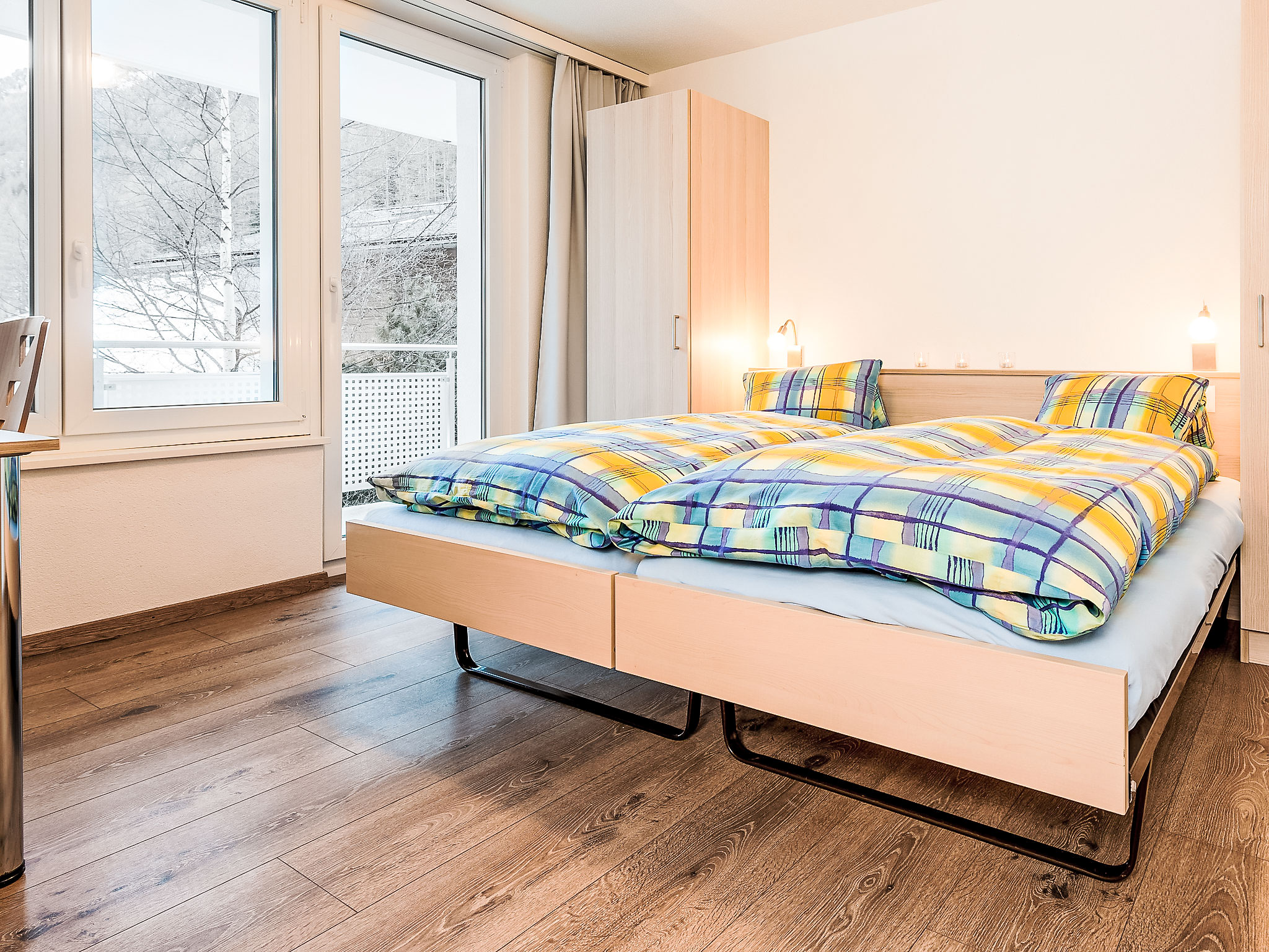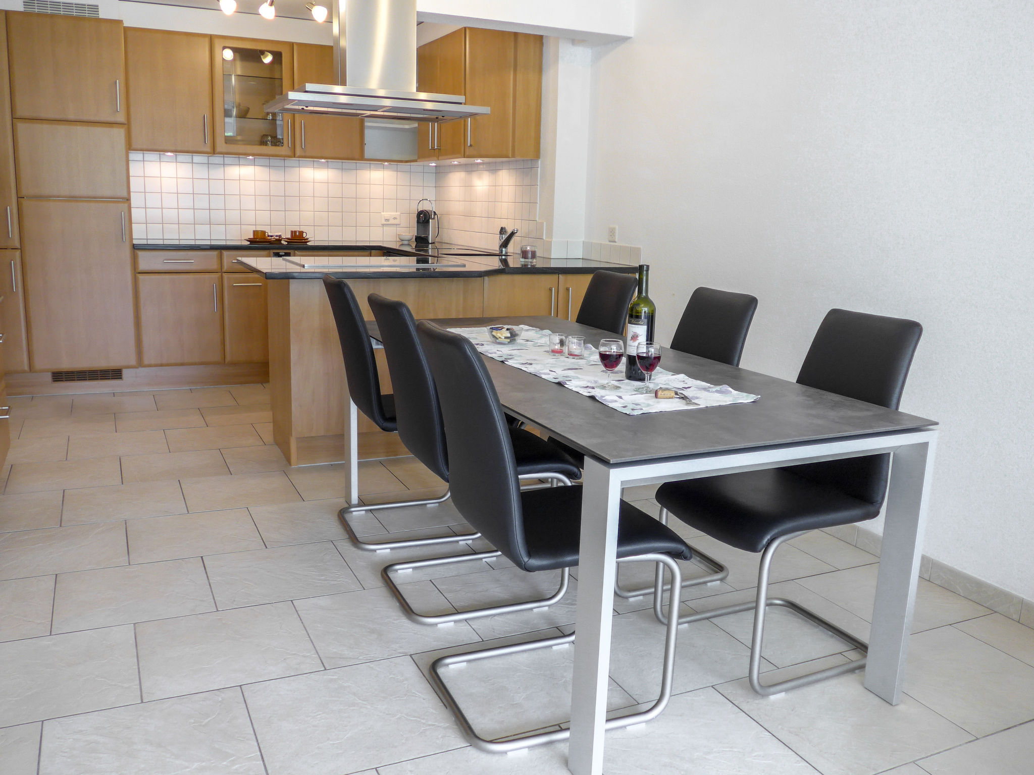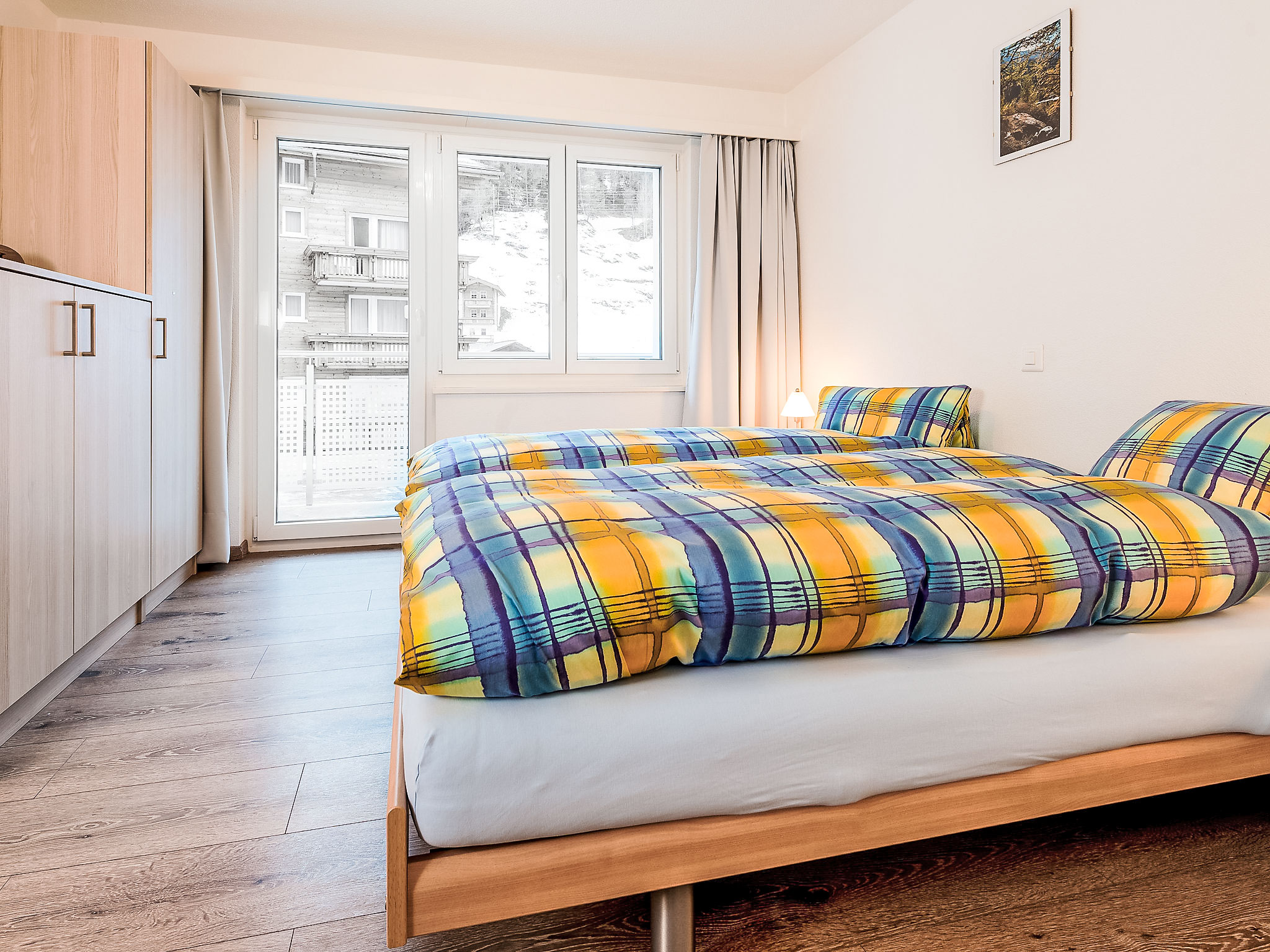 4-Zimmer-Wohnung 105 m2 im 2. Stock. Renoviert im Jahre 2015, modern eingerichtet: Wohn-/Esszimmer mit Sat-TV und Radio. Ausgang zum Balkon, Richtung Süden. 1 Zimmer mit 2 Betten (90 cm, Länge 190 cm). Ausgang zum Balkon, Richtung Westen. 1 Zimmer mit 2 Betten. Ausgang zum Balkon, Richtung Süden. 1 Zimmer mit 2 Betten (90 cm, Länge 190 cm). Offene Küche (Backofen, Geschirrspüler, 4 Glaskeramikherd Platten, Mikrowelle, elektrische Kaffeemaschine, Kapseln für die Kaffeemaschine (Nespresso) extra, Fondue Set (Käse)) mit Esstisch. Bad/WC, Dusche/WC. Bodenheizung. Balkon, Südlage und Westlage. Terrassenmöbel. Sehr schöne Sicht auf die Berge. Zur Verfügung: Haartrockner. Internet (Wireless LAN, gratis). Parkplatz (1 Auto). Bitte beachten: Nichtraucher-Unterkunft. Maximal 1 Haustier/Hund erlaubt.