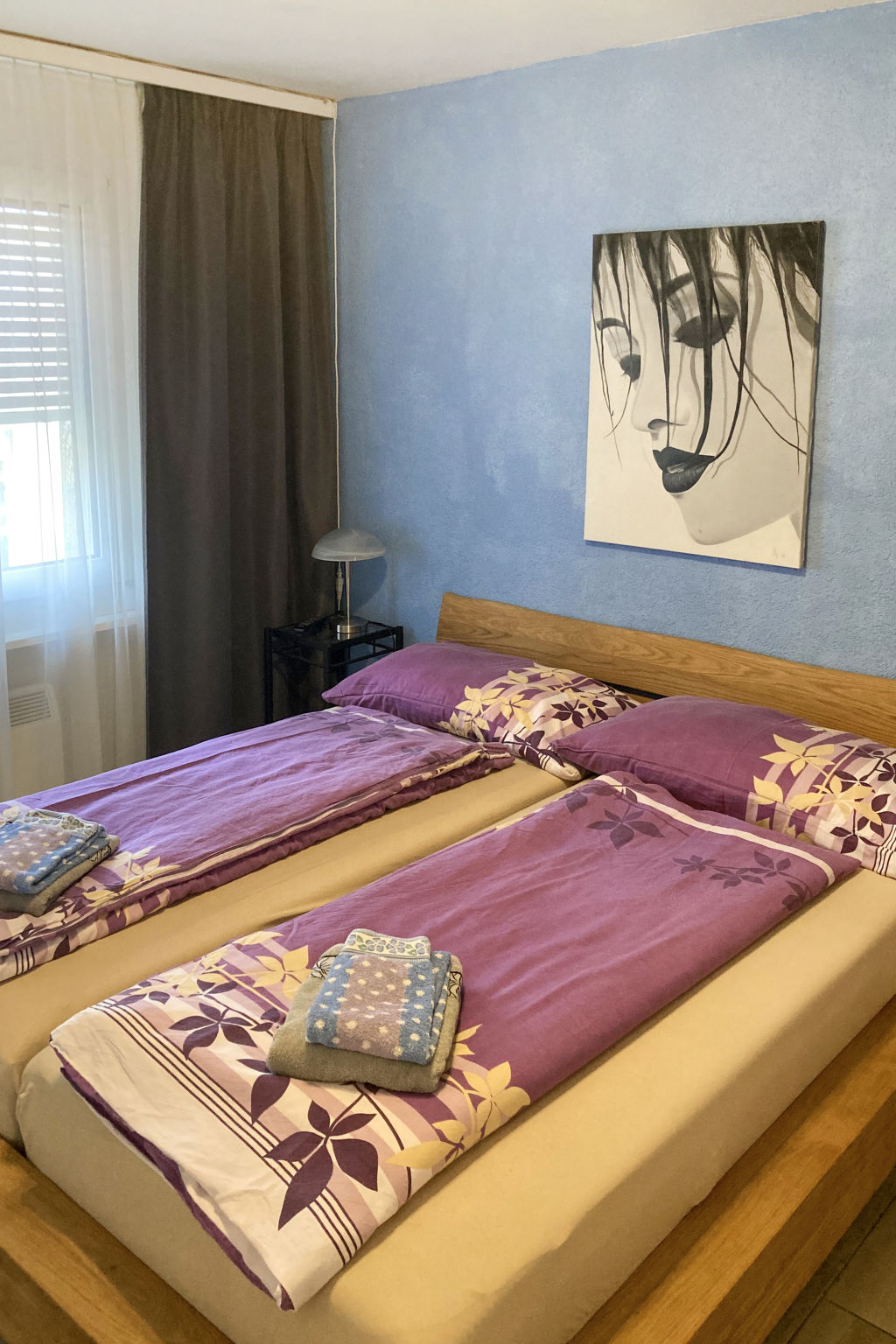 "Collina Verde B", 3-Zimmer-Wohnung 68 m2, im Erdgeschoss. Hell, renoviert im Jahre 2014, schön und modern eingerichtet: offenes grosses Wohn-/Esszimmer mit Schwedenofen, Kabel-TV, Flachbildschirm, Radio, DVD, E-Heizung und Boiler. Ausgang zum Gartensitzplatz. 1 Kinderzimmer mit 1 x 2 Etagenbetten (90 cm, Länge 200 cm). 1 Doppelzimmer mit 1 Doppelbett (2 x 90 cm, Länge 200 cm), Kabel-TV und Flachbildschirm. Offene Küche (Backofen, 4 Glaskeramikherd Platten, elektrische Kaffeemaschine, Kapseln für die Kaffeemaschine (Nespresso mitbringen)). Dusche/WC. Gartensitzplatz 20 m2. Terrassenmöbel, Liegestühle (2). Eingeschränkte Sicht auf die Berge und die Landschaft. Zur Verfügung: Internet (Wireless LAN, gratis). Garage Nr. 108. Bitte beachten: Nichtraucher-Unterkunft. Maximal 1 Haustier/Hund erlaubt. 'Nespresso Kaffeemaschine - Kapseln müssen mitgebracht werden.