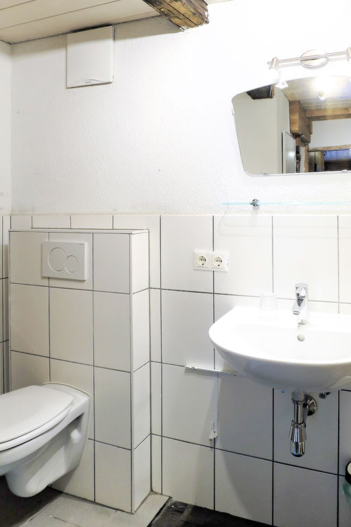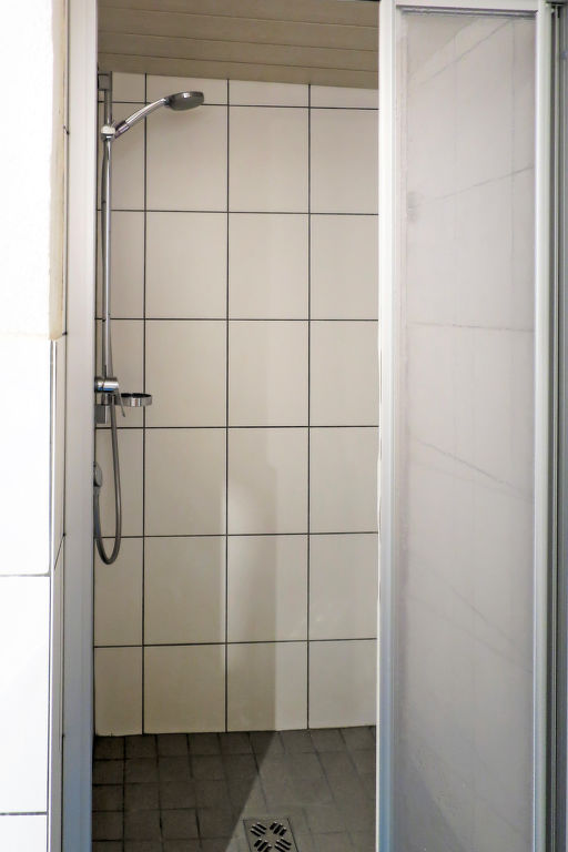 6-Zimmer-Haus, 2 Etagen, ca. 180 m². Über Terrasse ins Erdgeschoss: Diele mit Essplatz für 4 Personen. Aufenthaltsraum/Esszimmer mit Sitzcouch, Tischen und Bänken. Von hier Zugang zu Dreibettzimmer. Küche (4 Platten, Backofen, Holzherd, Kühlschrank, Kaffeemaschine, hier nur Kaltwasser) mit Essplatz für 6 Personen. 2x Dusche/WC. Obergeschoss: 2 Einzelzimmer. Schlafzimmer mit Doppelbett und 2 Einzelbetten. Doppelzimmer, Balkonausgang. Bei Belegung mit weniger Personen als der maximalen Personenzahl stehen nicht alle Wohneinheiten zur Verfügung.