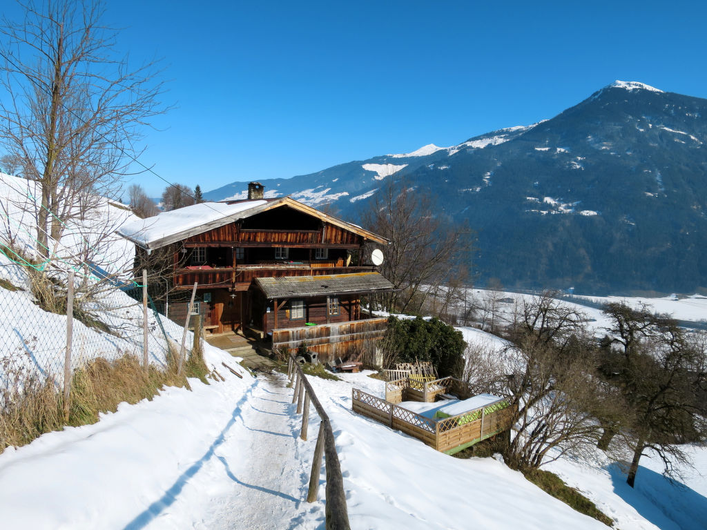Das Ferienhaus ERDLER, ein ehemaliges Bauernhaus, steht auf 720 m Höhe sonnig am Riedberg. Ried mit Einkaufsmöglichkeit 3 km. Kaltenbach 4,5 km. Freibad in Stumm (6 km), Aschau mit Badesee 9 km. Zufahrt bis auf ca. 80 m möglich. Von hier über Fußweg und 40 Stufen zum Haus. 3 Parkplätze. Der Besitzer, der ein separates Haus auf dem Grundstück bewohnt, hält Kühe und Schafe. Überdachte Terrasse und Balkon, jeweils mit Mobiliar. Transportabler Grill. Das Ferienhaus mit Hüttencharakter ist rustikal eingerichtet. Abstellraum. Holzdielen- und Teppichböden. Sat-TV. Heizmöglichkeit mit Kaminofen im Wohnzimmer (Holz inklusive), Holzherd in der Küche, Elektroradiator im Sanitärbereich sowie ein Gasofen. Hinweis: Rauchen ist im Haus nicht gestattet. Winter-Infos: Talstation Hochzillertalbahn in Kaltenbach 4,5 km. Skibus 2x täglich (ca. 100 m, auf Anfrage). Für die Zufahrt können Schneeketten erforderlich sein. Skiabstellmöglichkeit im Haus.