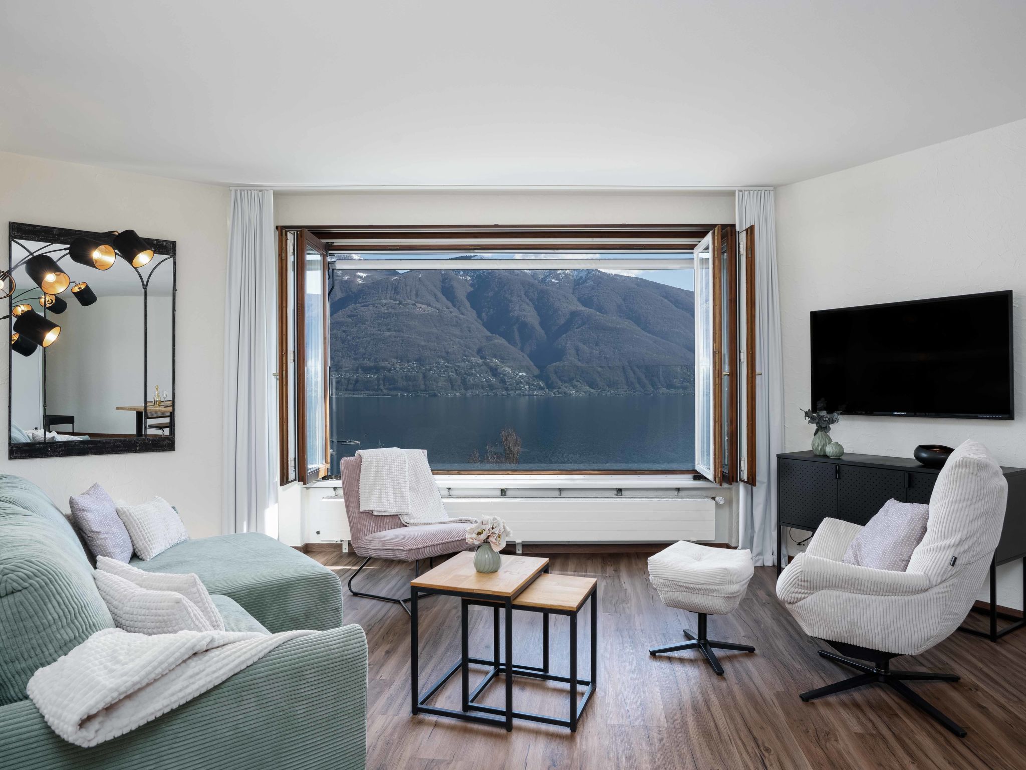 "Suite Classic", 2-Zimmer-Wohnung 90 m2 im 4. Stock, Südostlage. Wohn-/Esszimmer mit 1 Doppeldiwanbett, Sat-TV und Radio. 1 grosses Zimmer mit 1 Doppelbett. Küche (Backofen, Geschirrspüler, elektrische Kaffeemaschine, Kapseln für die Kaffeemaschine (Nespresso) extra). Bad/WC. Grosser Balkon, Ostlage, kleiner Balkon, Ostlage. Herrliche Sicht auf den See, die Berge und die Ortschaft. Zur Verfügung: Internet (Wireless LAN, gratis). Bitte beachten: Nichtraucher-Unterkunft, Nichtraucher-Haus. Maximal 1 Haustier/Hund erlaubt.