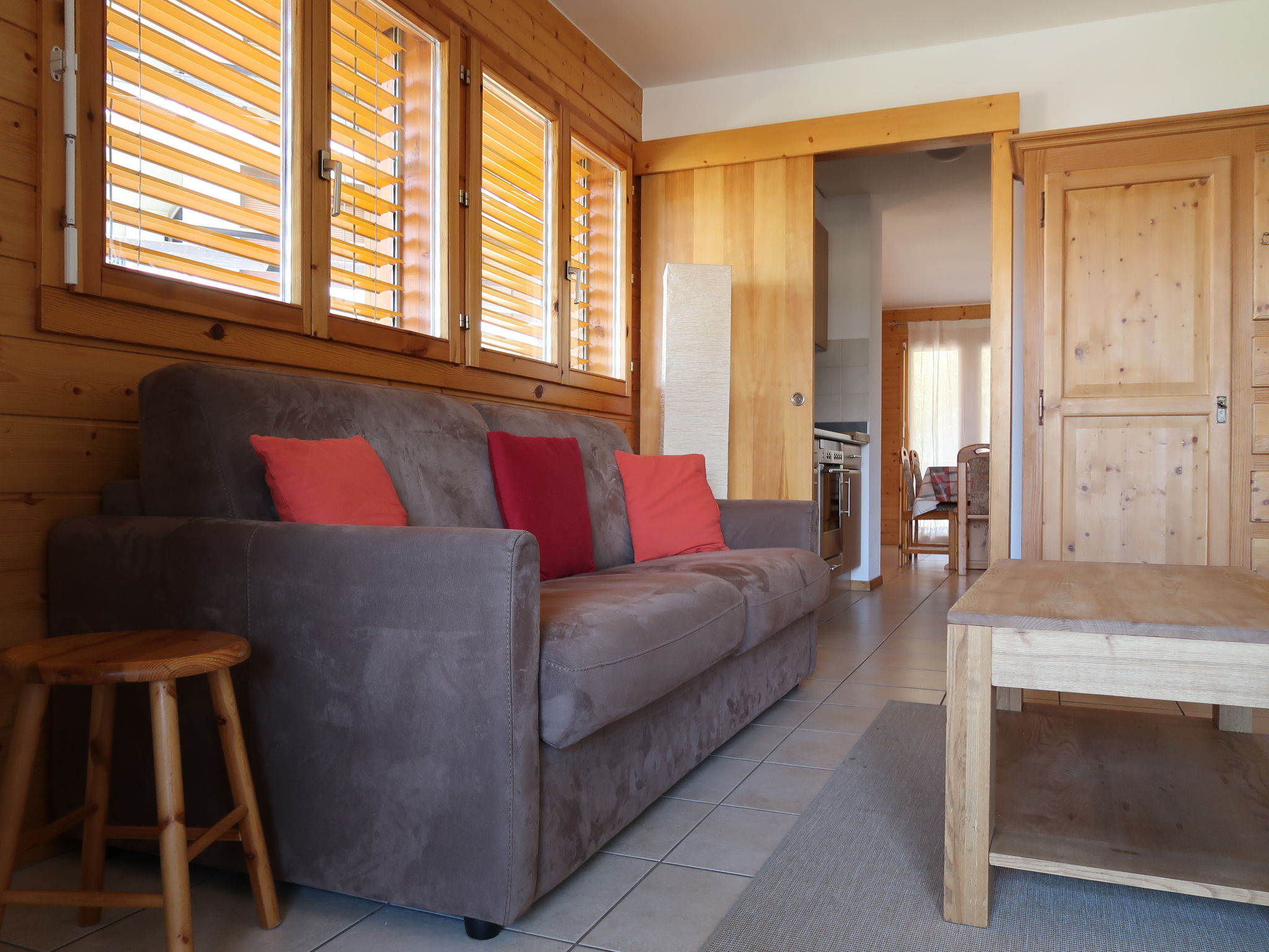 "Les Chouettes 1", 4-Zimmer-Wohnung 80 m2, im Erdgeschoss. Komfortabel eingerichtet: Wohn-/Esszimmer. Ausgang zur Terrasse. Salon mit 1 Doppeldiwanbett (1 x 160 cm, Länge 190 cm), offenem Kamin und Kabel-TV. Ausgang zur Terrasse. 2 Zimmer, jedes Zimmer mit 2 Betten (90 cm, Länge 190 cm). Offene Küche (Backofen, Geschirrspüler, elektrische Kaffeemaschine, Kapseln für die Kaffeemaschine (Nespresso) extra). Bad/WC, Dusche/WC. Terrasse 12 m2, Südostlage Terrasse 12 m2, Nordlage. Terrassenmöbel. Schöne Sicht auf die Ortschaft. Zur Verfügung: Internet (Wireless LAN, gratis). Parkplatz Nr. 1. Bitte beachten: Nichtraucher-Unterkunft.