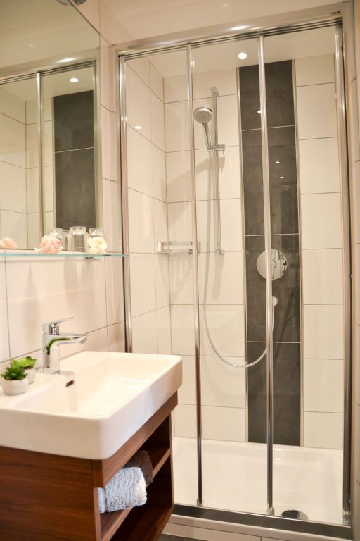 Dieses Angebot setzt sich aus den Wohnungen KPL 480 und KPL 481 zusammen.4-Zimmer-Wohnung, 1. Etage, ca. 85 m². Flur mit Garderobe. Wohnküche (4 Platten, Backofen, Mikrowelle, Geschirrspüler, Kühlschrank, Nespresso-Kaffeekapselmaschine, Wasserkocher, Toaster, Eierkocher) mit Essplatz (Eckbank) für 10-11 Personen. Doppelzimmer mit Dusche/WC. Doppelzimmer mit Dusche und Waschbecken. Schlafzimmer mit Doppelbett, Zustellbett, Dusche und Waschbecken. Sep.WC. Zugang zum Südbalkon von der Küche und den beiden Doppelzimmern.3-Zimmer-Wohnung, Erdgeschoss, ca. 50 m². Sep. Eingang in Doppelzimmer. Wohnküche mit Essplatz, Küchenzeile (4 Platten, Backofen, Mikrowelle, Geschirrspüler, Kühlschrank, Nespresso-Kaffeekapselmaschine, Wasserkocher, Toaster, Eierkocher). Dusche/WC. Terrasse (kleiner Garten). Unmittelbar neben der abgeschlossenen Wohnung: Doppelzimmer mit Dusche/WC. Hinweis: Das Doppelzimmer mit Dusche/WC der Wohnung im Erdgeschoss (KPL481) liegt unmittelbar neben der abgeschlossenen Wohnung.