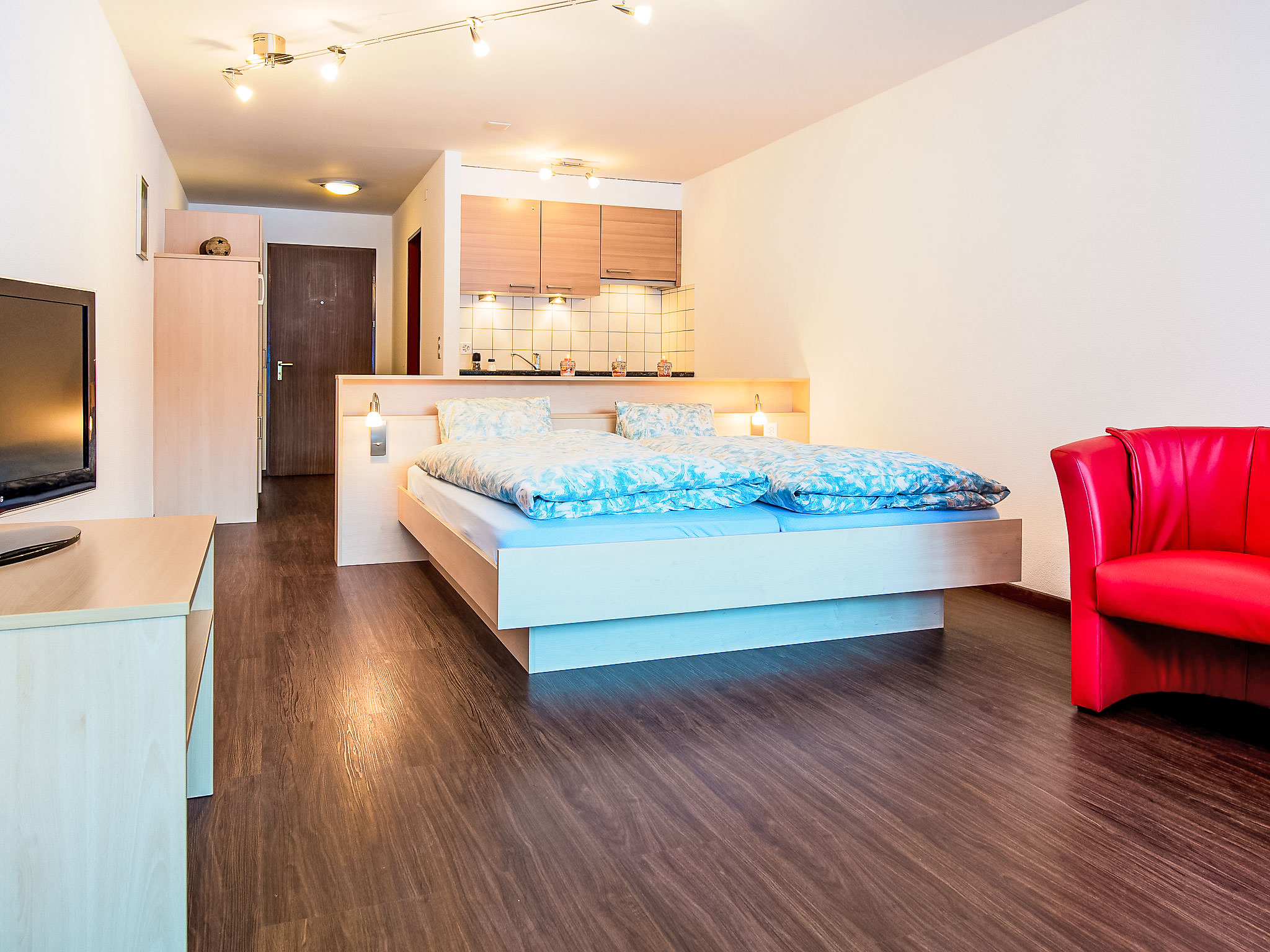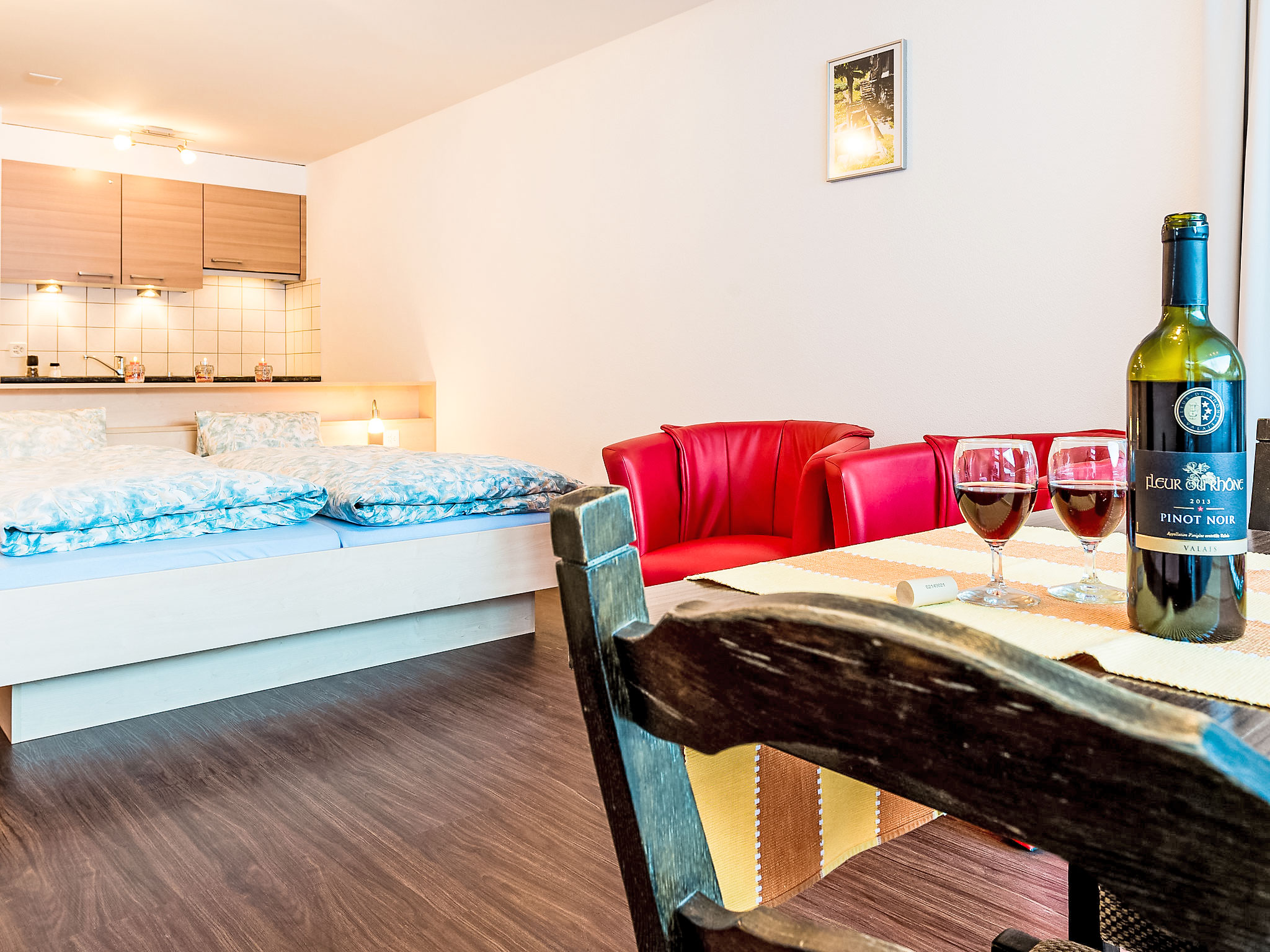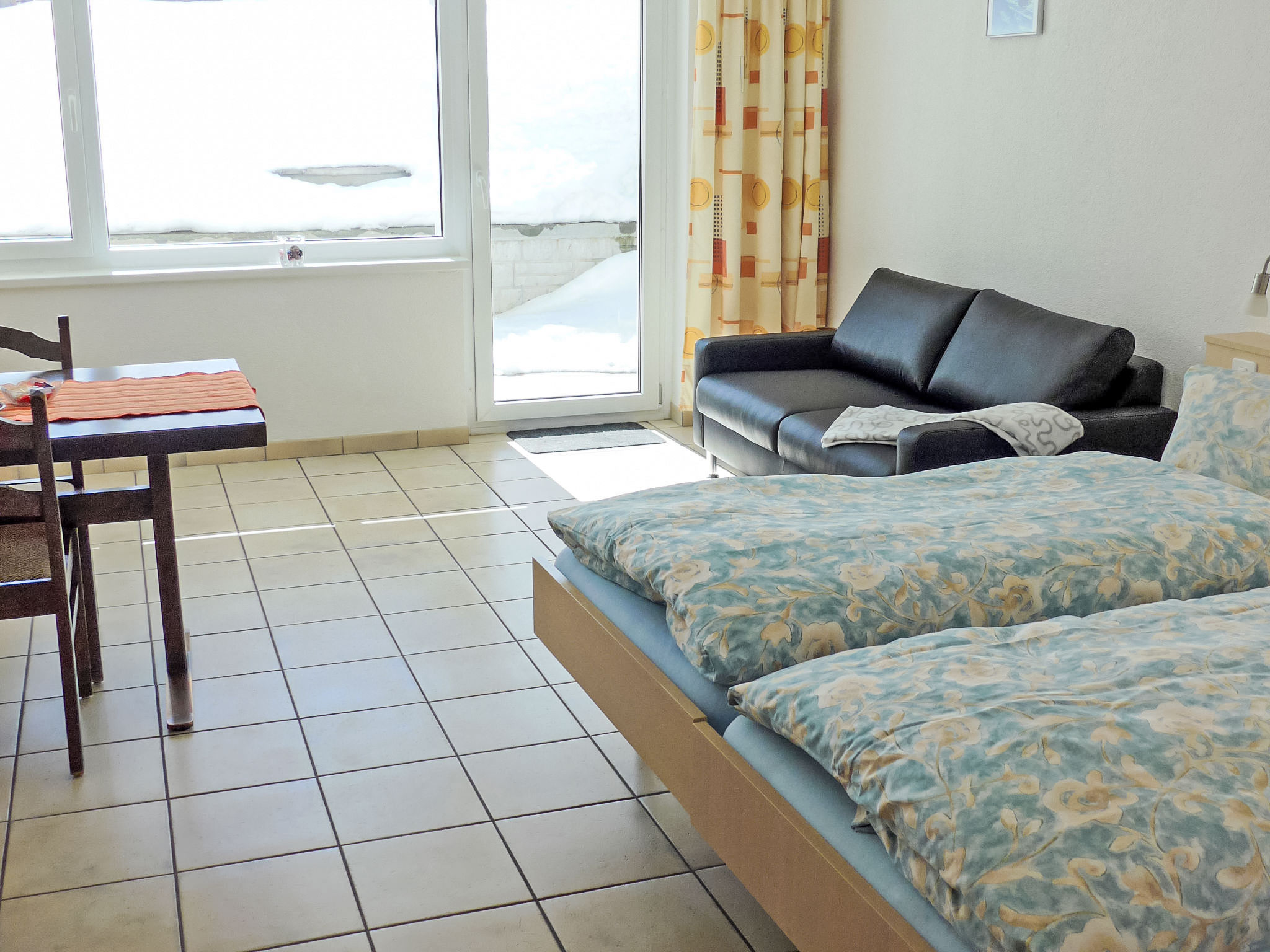 1-Zimmer-Wohnung 30 m2. Renoviert im Jahre 2015, schön und gemütlich eingerichtet: Wohn-/Esszimmer mit 2 Betten (90 cm, Länge 190 cm), Sat-TV und Radio. Offene Küche (Backofen, Geschirrspüler, 4 Glaskeramikherd Platten, elektrische Kaffeemaschine, Kapseln für die Kaffeemaschine (Nespresso) extra, Fondue Set (Käse)) mit Dusche/WC. Dusche/WC. Bodenheizung. Balkon oder Terrasse, Südlage. Terrassenmöbel. Sehr schöne Sicht auf die Berge. Zur Verfügung: Haartrockner. Internet (Wireless LAN, gratis). Parkplatz (1 Auto). Bitte beachten: Nichtraucher-Unterkunft. Maximal 1 Haustier/Hund erlaubt. Innenfotos sind Wohnungsbeispiele.